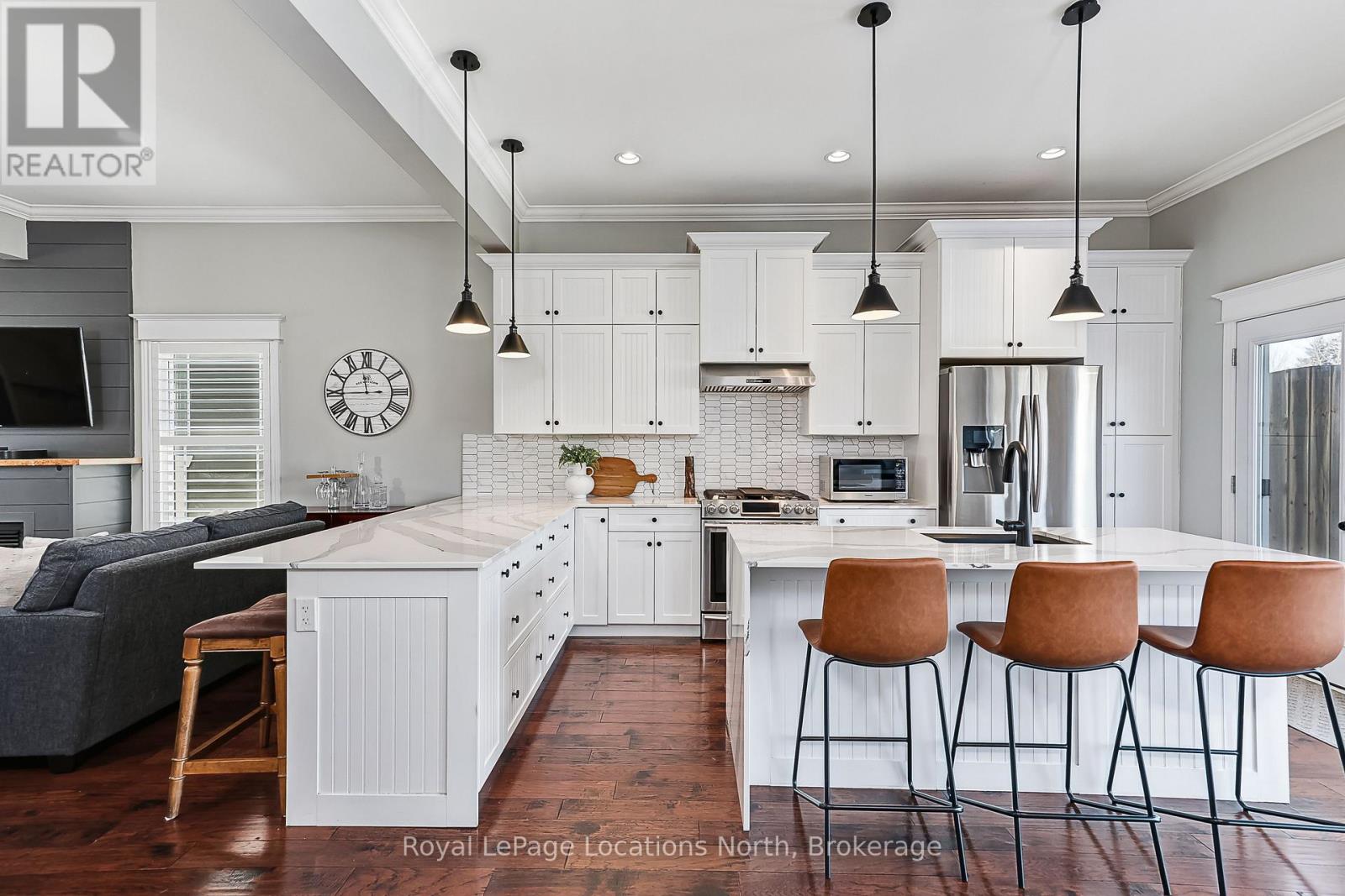 Over 2,900 square feet! This 4 bedroom (2+2), 2.5 bath home is situated on a 49X 149 ft premium lot backing onto Town owned Environmentally Protected land providing privacy. The exterior has just been re-painted in 2025 and inside your new home, you will love the 10 foot ceilings on the main floor, crown moulding, gas fireplace, tiled entry, engineered flooring on main, open concept for entertaining, California shutters, sunshade blinds and lots of natural light throughout. The modern kitchen features granite counters, tiled backsplash, stainless steel appliances with gas stove, eat-in island and a walk-out to your 2-tiered deck with gas line for BBQ and overlooking your beautifully maintained backyard with privacy behind. The large main floor primary bedroom offers a walk-in closet and updated 4pc ensuite with granite counters, backsplash, double sink, heated floors and separate soaker tub. The finished lower level features hardwood flooring, natural light throughout, a walk-up to the backyard, spacious rec room, 3pc bath and 2 large bedrooms. Extra bonus items include your paved driveway with enough room for 4 vehicles, garage with inside entry and side-door access. A great location close to both elementary and high schools! Recent renovations include: shingles (2022), ensuite (2024), powder room tile (2024), kitchen counters & backsplash (2024), washer/dryer (2024) basement painted (2024), exterior painted (2025), interior railings (2026), in-ground sprinklers (2025). This home is move-in ready and ready for you. Above grade square footage - 1,615 / Below grade square footage -1,360. (id:64974)