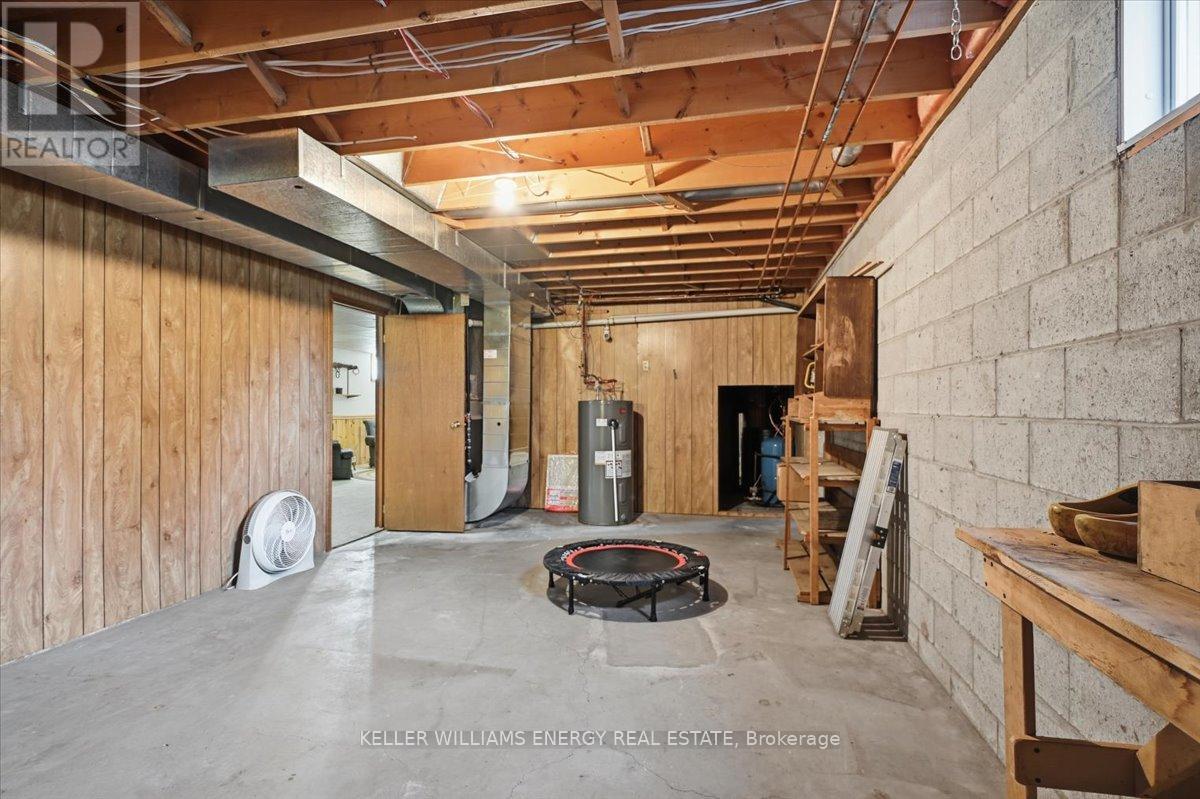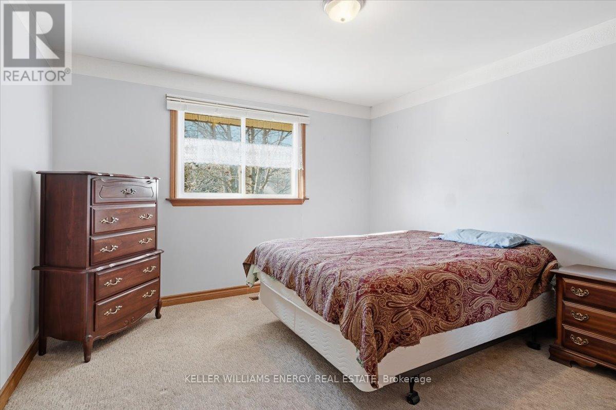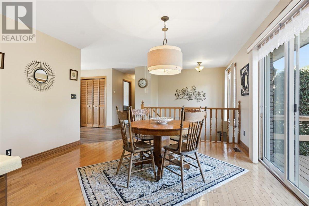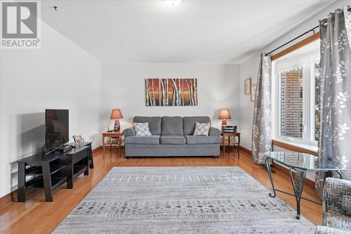 Welcome to easy, comfortable living in this charming ranch-style brick bungalow, perfectly set on a mature corner lot! Enjoy true main floor living at its best, featuring a bright and inviting living room with a beautiful bay window overlooking the front yard. The spacious kitchen is a standout, offering an abundance of cupboard space, a stylish backsplash, a chef's island, and plenty of counter space for cooking and entertaining. The dining room walks out to a deck, making indoor-outdoor living a breeze. The main level also includes three good sized bedrooms, a full bathroom with a walk-in shower and a convenient 2-piece powder room. Downstairs, you'll find even more room to spread out with two large rec rooms, one highlighted by a cozy gas fireplace and brick feature wall. This level also provides a large fourth bedroom, a dedicated utility room, and a substantial storage room to keep your home organized and clutter-free. Stepping outside, the backyard is a private oasis framed by mature trees and lush hedging for ultimate privacy. The outdoor space is equipped with a large deck and two garden sheds for all your tools and hobbies. Parking is never an issue here, as the property features an attached garage and a generous driveway with plenty of room for multiple vehicles. Ideally located just off the 115, this home offers incredible commuter access to both the 401 and 407, keeping you connected to everything you need while enjoying the peace of a established neighborhood. (id:64974)
