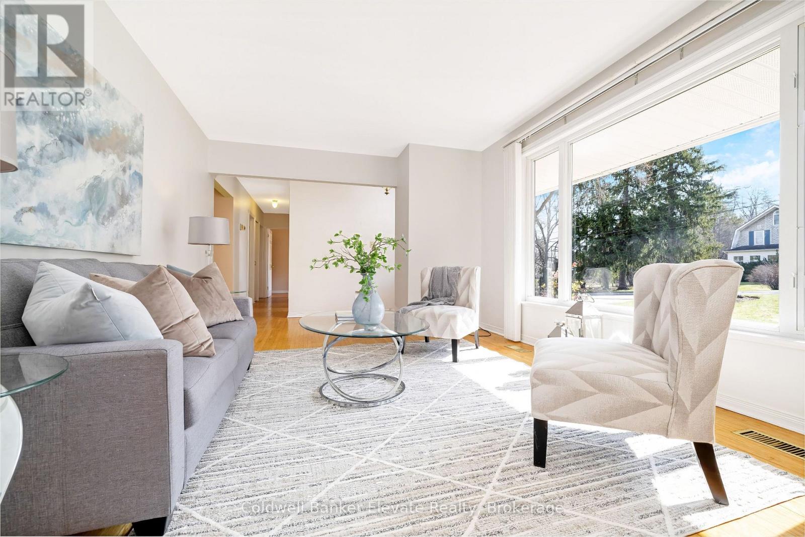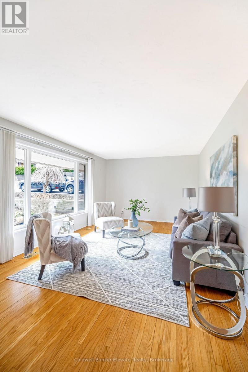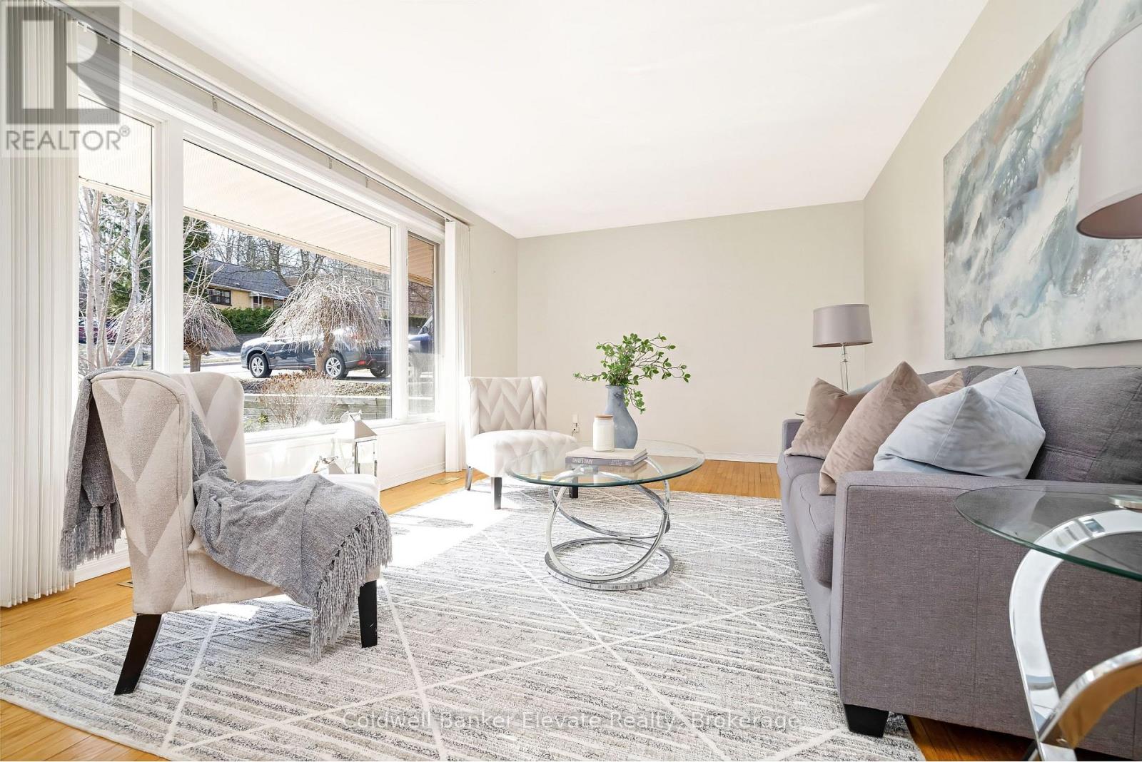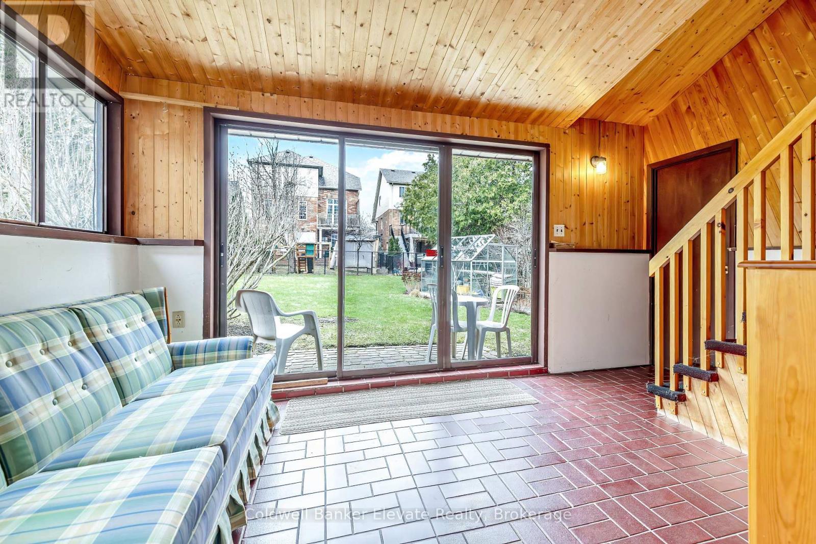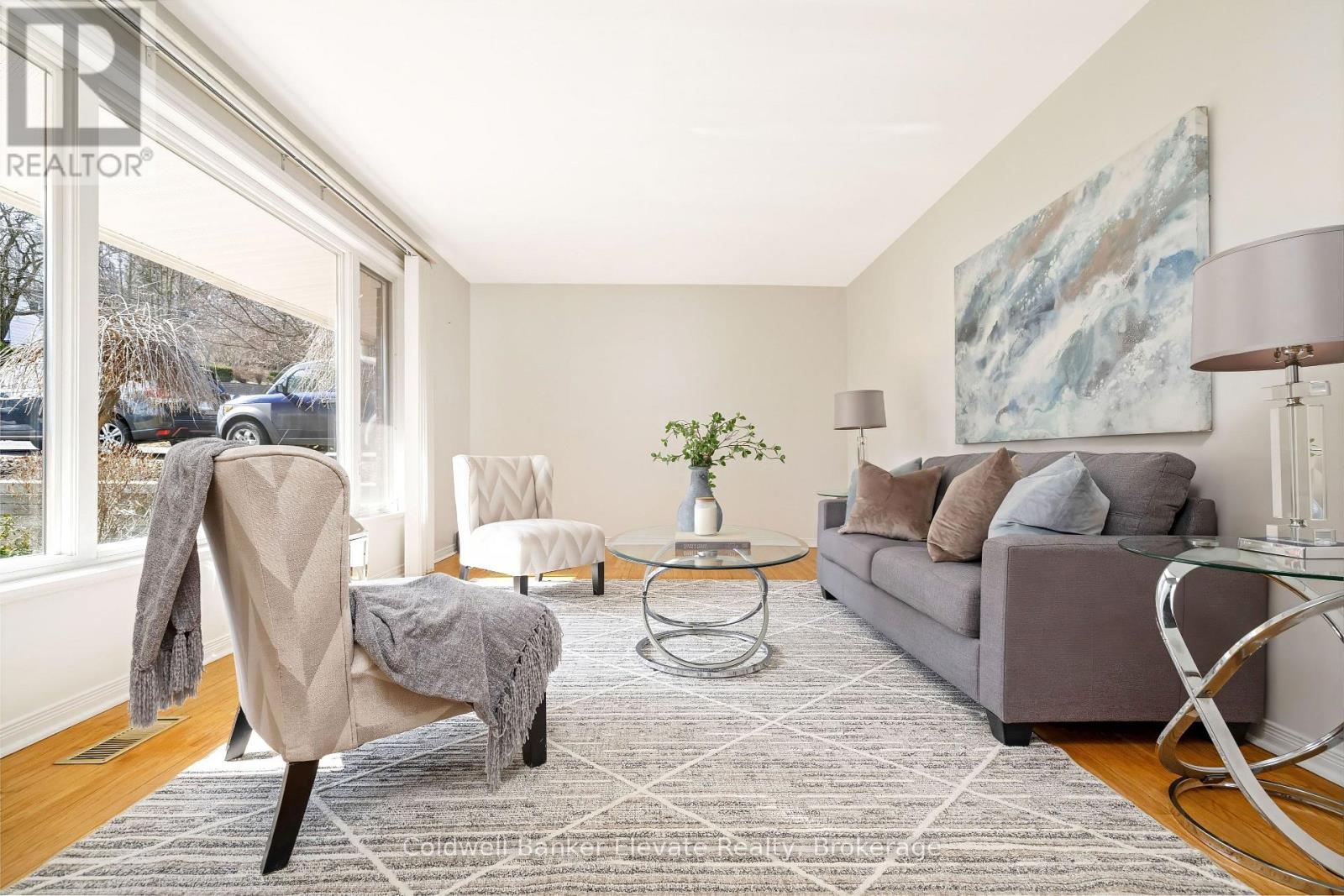 Welcome to this charming and well cared for bungalow offering a functional layout, warm finishes, and a beautifully landscaped backyard retreat. The main level features hardwood flooring throughout the living, dining, and all three bedrooms, creating a seamless and inviting flow that feels both comfortable and cohesive. A bright living room with a large picture window overlooks the front yard, filling the space with natural light, while the dining area offers a peaceful view of the backyard, making it ideal for both everyday meals and hosting family and friends. The eat in kitchen provides great functionality with ample cabinetry, laminate counters, and a convenient side door walk out to the yard for easy access. All three bedrooms are well sized and include closets and hardwood flooring, offering flexibility for families, guests, or a home office setup, with a full 3 piece family bathroom nearby. The lower level offers a mix of finished and unfinished space, adding flexibility to suit a variety of needs. Enjoy a finished rec room with exposed wood beams, a gas fireplace with brick surround, and above grade windows that bring in natural light. A finished 3 piece bathroom and laundry area add everyday convenience, while the unfinished workshop and additional storage space provide room for hobbies or future customization. Step into the bright 3 season sunroom with cedar wood ceilings and large windows, offering a beautiful transition to the outdoors and a space to enjoy year round in every season. The backyard is a true highlight, featuring a wood deck, interlock patio, greenhouse, mature trees, and established gardens, all within a fully fenced setting, ideal for relaxing, gardening, or entertaining. A double wide driveway with parking for four, plus a carport with tandem parking, provides ample space for vehicles and added everyday convenience. A wonderful opportunity to enjoy comfortable living both inside and out in a peaceful setting. (id:64974)