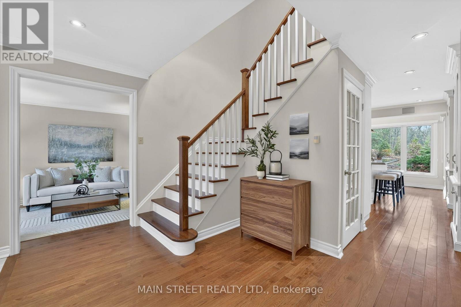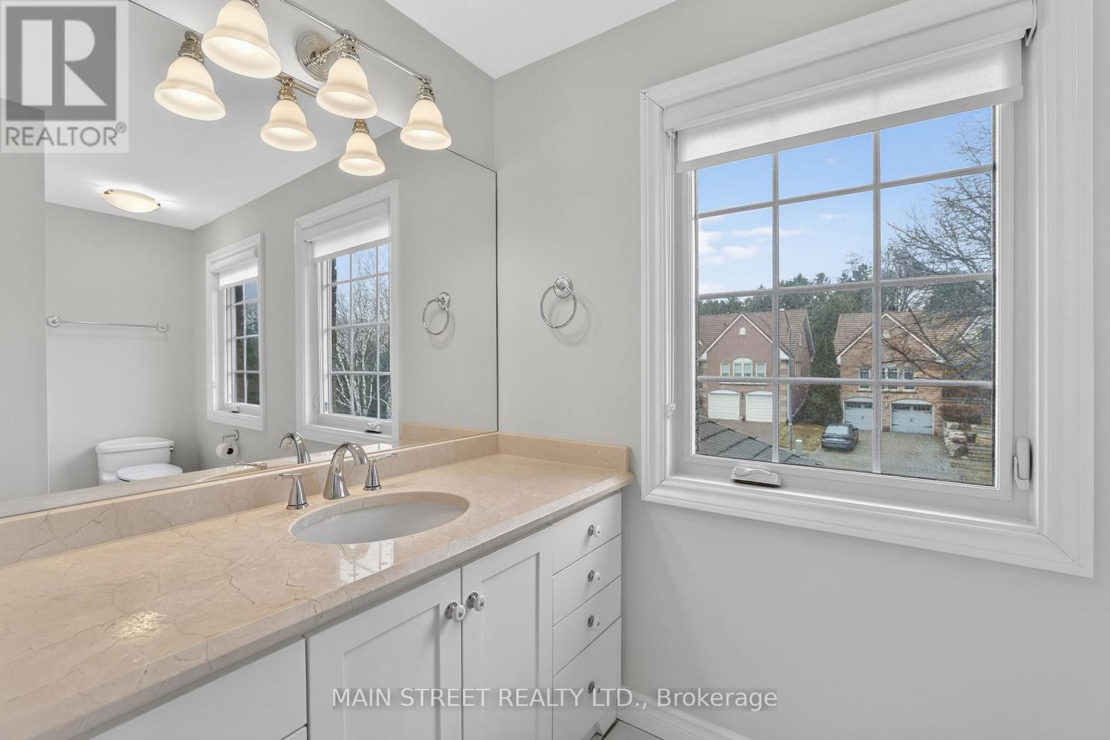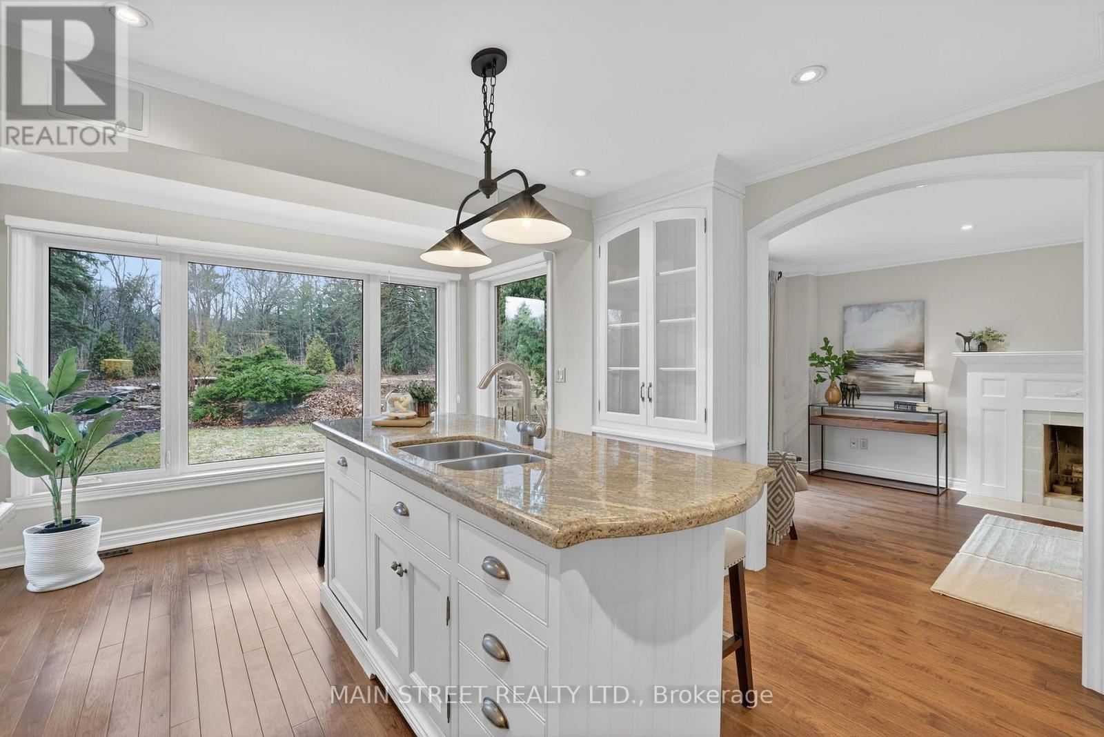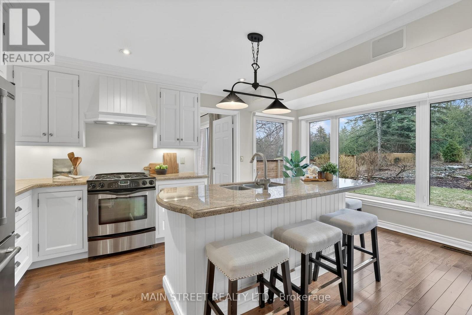 Here's your opportunity to own a move-in ready home in one of Aurora's most desirable neighbourhoods. This fully updated approx. 2,300 sq ft brick home is nestled on a private, child-safe cul-de-sac and sits on a premium 55 ft lot backing on to green space/walking trails. Thoughtfully designed, this inviting home features a custom newly refinished (Dec. 2025) Bloomsbury Kitchen complete with centre island, granite counters, integrated dishwasher, stainless steel appliances, under-cabinet lighting, and custom organizers. Updates incl; hardwood flooring, freshly painted throughout (2026), smooth ceilings, pot lights, crown mouldings, vinyl windows & window coverings. The main level offers formal living & dining rooms, along with a warm family room featuring a wood-burning fireplace and a walkout to the private backyard. The spacious primary suite is a true retreat, showcasing a walk-in closet and a luxurious spa-inspired ensuite with heated floors. Generously sized second and third bedrooms offer ample storage with double and walk-in closets. Enjoy the convenience of a main floor laundry room featuring custom built-in storage and a separate side-door entrance. The professionally finished basement is ideal for entertaining , offering a large rec room with custom built-ins, a gas fireplace, bar area, office space, gym area, a 3-pc bathroom & storage. Exterior highlights incl; a covered front porch, upgraded garage doors, large private driveway, a premium highly-durable Marley Tile Roof & newly updated (2023/24) stone walkways/patio and decks. The south facing backyard is a true oasis, surrounded by mature trees & refreshed landscaping that blends seamlessly into the natural green-space beyond. Ideally located close to top-rated private/public/Catholic/French schools, parks, golf courses, all amenities, public transit, GO stations, and convenient access to Highways 400 & 404. (id:64974)