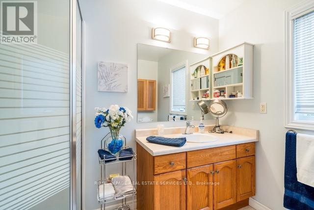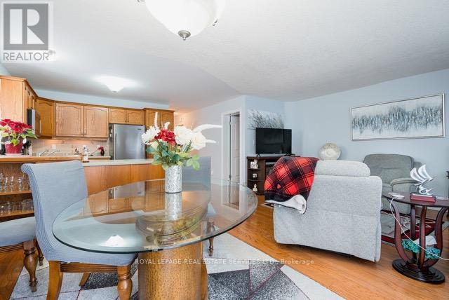 Sold by Original Owner. Original model home in Park Place, beautifully maintained & showingtrue pride of ownership. Bright, open layout with vaulted ceilings, eat-in dining area, & openconcept living space approximately 2 ft larger than other models. The kitchen features upgradedcabinetry, dble sink, large pantry, ample counter space, & hardwood flooring throughout themain living area. Offering 2 bdrms & 2 baths, including a primary bdrm w/ a walk-in shower.Main-floor laundry w/ access to an oversized single-car garage. Walk out to a private,landscaped deck. Additional storage available in a dry concrete crawlspace accessed through theprimary bdrm closet. Includes stainless steel appliances (fridge, stove, dishwasher, microwaveapprox. five years old; washer approx. three years). Residents enjoy access to a communitycentre with indoor pool, sauna, fitness facilities, library, and social activities. Minutes toGeorgian Bay and its scenic shores and sunsets. Exceptional community to retire. Land Lease $800/Month. Monthly Taxes; Site $39.12 + 122.59. Total Monthly $961.71 (id:64974)