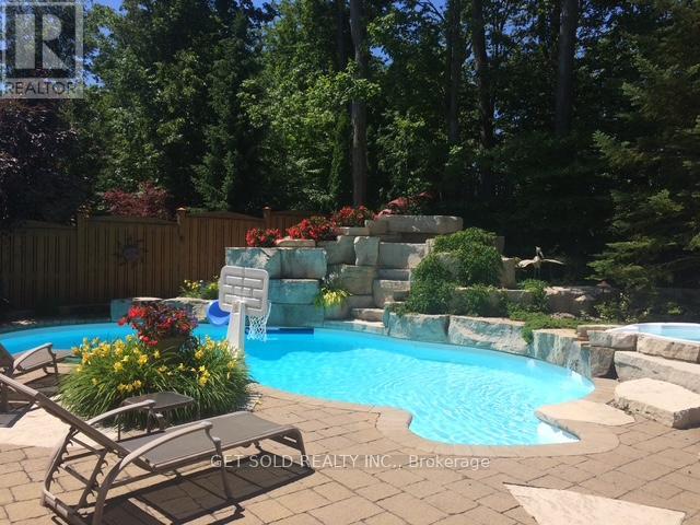 Welcome to 65 Preservation Place. This 4,442 Sq. Ft Executive Home Sits On A 69x180 ft Lot Located In The Prestigious Williamsburg Community And Built By The Luxury Homebuilder, DeNoble Homes. The Home Features Over $500,000 Worth Of landscaping Including Inground Pool With Water Features And Slide, Hottub, Outdoor Kitchen, Gazebo And Forested Rear. Step Inside The Home To A Sprawling Atrium That Is So Inviting You Feel Like You Are At Home The Moment You Walk In. Large Living And Dining Room Welcomes Your Family With A 2-Way Floor To Ceiling Fireplace Centering The Rooms. Large Office For The Stay At Home Business Person. Chefs Kitchen With Stone Backsplash Feature, S/S Appliances Including Double Wolf Stove, Servery featuring Bar And Large Walk-in Pantry. The Two-Storey Family Room Is A Showpiece With Floor To Ceiling Built-Ins And Large Windows To View Your Resort Style Pool And Landscaping Outside. Upstairs Boasts A Massive Primary Bedroom With Sitting Area, Juliet Balcony Overlooking Family Room, Smooth Ceilings, Pot Lites And A 5 Piece Bath. A Second Primary Is Featured In This Home with A 4 pc Bath. Bedrooms 3&4 Share A Jack And Jill And Offer W/I Closets. The Professionally Finished Basement Provides For An Extra 1800 sq. ft Of Living Space And Includes Wet Bar, Living Room With Stone Fireplace, B/I Speakers, 2 More Bedrooms, Exercise Room And Games Room. The Perfect Home For A Large Family. This Home Offers A 3 Car Garage With High Ceilings. It Is rare To Find Homes For Sale On This Quiet Cul de Sac And This Property Is One Of The Largest And Most Luxurious. No Need To Escape In The Summer, When Your Vacation Is In Your Own Backyard. Steps To Thermea Spa, Big Box Stores, Transit And Hwy 407. (id:64974)