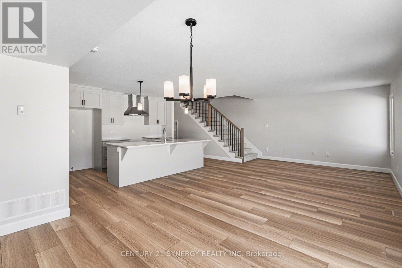OPEN HOUSE HOSTED @ 83 VILLENEUVE ~ SUN. MAR. 22ND 11AM-1PM. Beautiful modern property built by trusted local builder. Gorgeous semi detached 2 Storey with approximately 1761sq/ft of living space, 3 beds & 3 baths and a massive double car garage to provide plenty of room for your vehicles and country toys. The main floor has an open concept layout with quartz counters in your spacious kitchen, a large 9ft island with breakfast bar, ample cabinets & a large kitchen walk-in pantry. Luxury vinyl floors throughout the entry way, living room, dining room, kitchen, bathroom & hallway. Plush carpeting leads you upstairs into the bedrooms. Primary bedroom offers a spacious walk-in closet & a 3pc ensuite bath. 2nd/3rdbedrooms are also spacious with ample closet space in each. Full bathroom & Laundry room on second floor. No Appliances or AC included. Site plan, Floorplan, Feat. & Specs/upgrades attached! (id:64974)