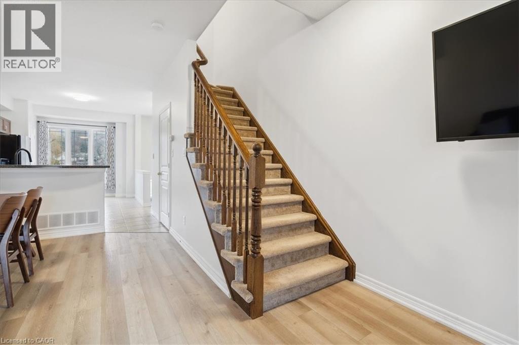 Welcome to 65 Willow Lane, a beautifully maintained 2-bedroom, 2-bathroom townhome featuring 1,392 sq. ft. of comfortable living space in the heart of Grimsby. Enjoy breathtaking views of the escarpment from the kitchen and even Lake Ontario from the primary bedroom. Open-concept main floor featuring premium vinyl flooring, updated lighting, freshly painted throughout and a bright kitchen with tons of natural lighting. Upstairs, you’ll find two bedrooms, a full bathroom, and convenient laundry. The fully finished walk-out basement adds a powder room, garage access, and a private, fully fenced backyard perfect for entertaining. Three-car parking, a large balcony, and easy access to highways, schools, trails, and shopping. This is a home you won’t want to miss. (id:64974)