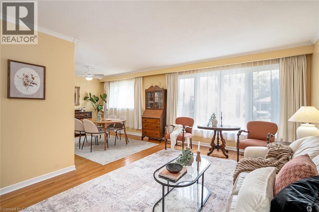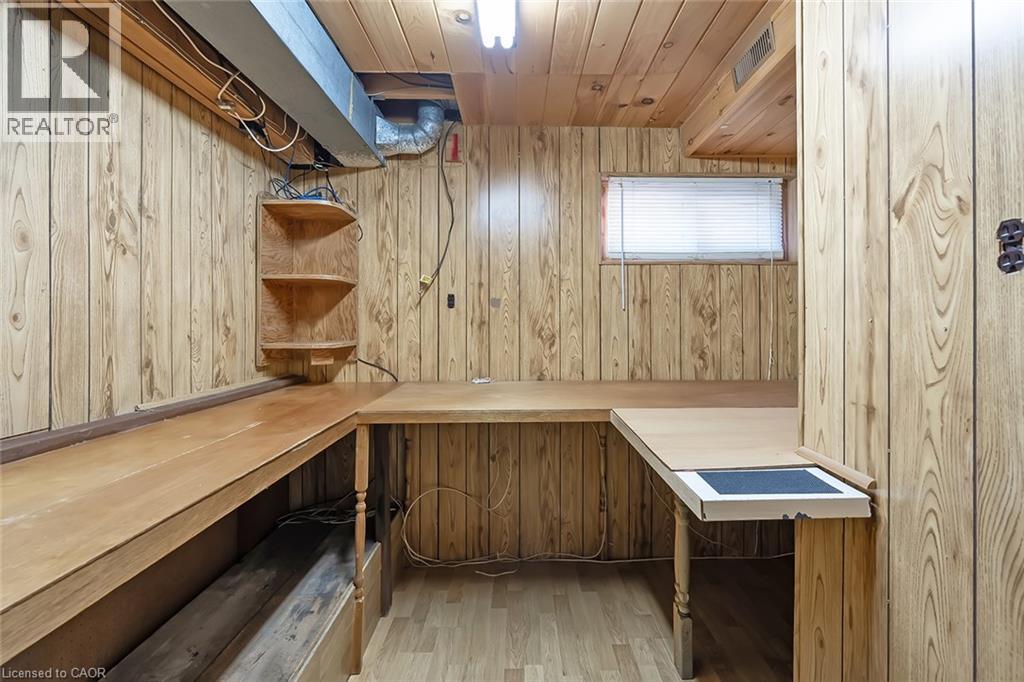 Welcome to this family-friendly neighbourhood located within walking distance to schools, parks, shopping and the GO train. This beautiful 3 level back split sits on a private 50-foot x 110-foot lot in southeast Burlington! This 3+1 bedroom home boasts 1.5 baths and is approximately 1500 square feet plus a lower level. This home is carpet-free throughout and offers plenty of potential. The main level boasts a large entry area / family room and spacious living / dining room combination. The eat-in kitchen has wood cabinetry and plenty of natural light. The upper level has hardwood flooring throughout, 3 bedrooms and a 4-piece bathroom. The lower level features a den/rec room, 4th bedroom, 2-piece bath, workshop, separate laundry room and a large crawl space. The exterior of the home features a 3-car driveway and a private rear yard with a large wood deck! (id:64974)