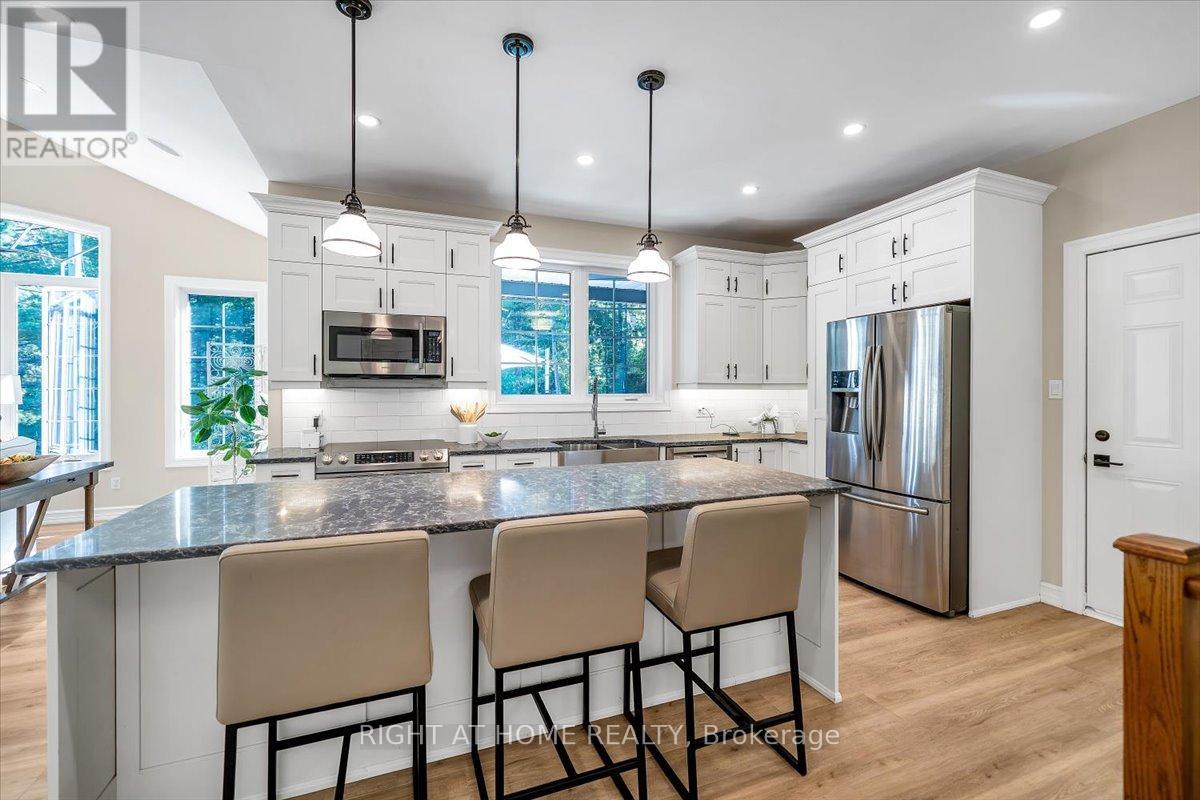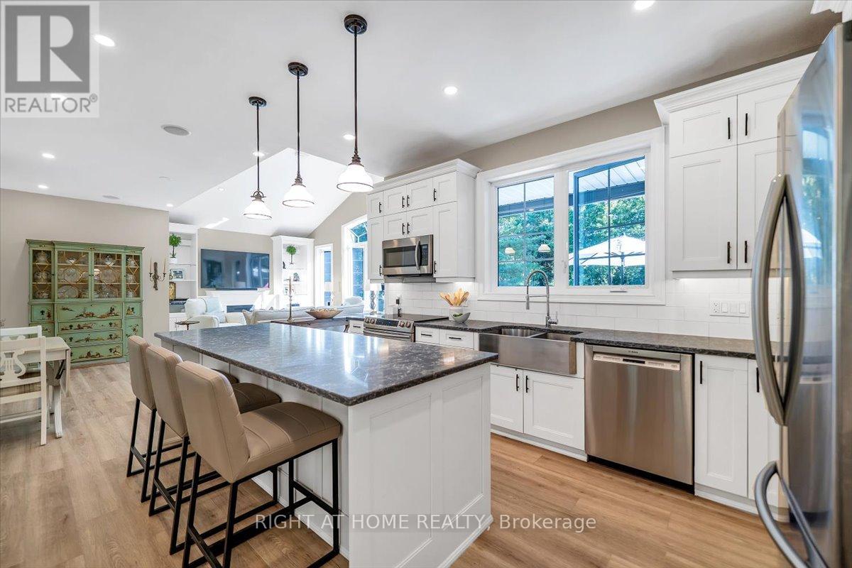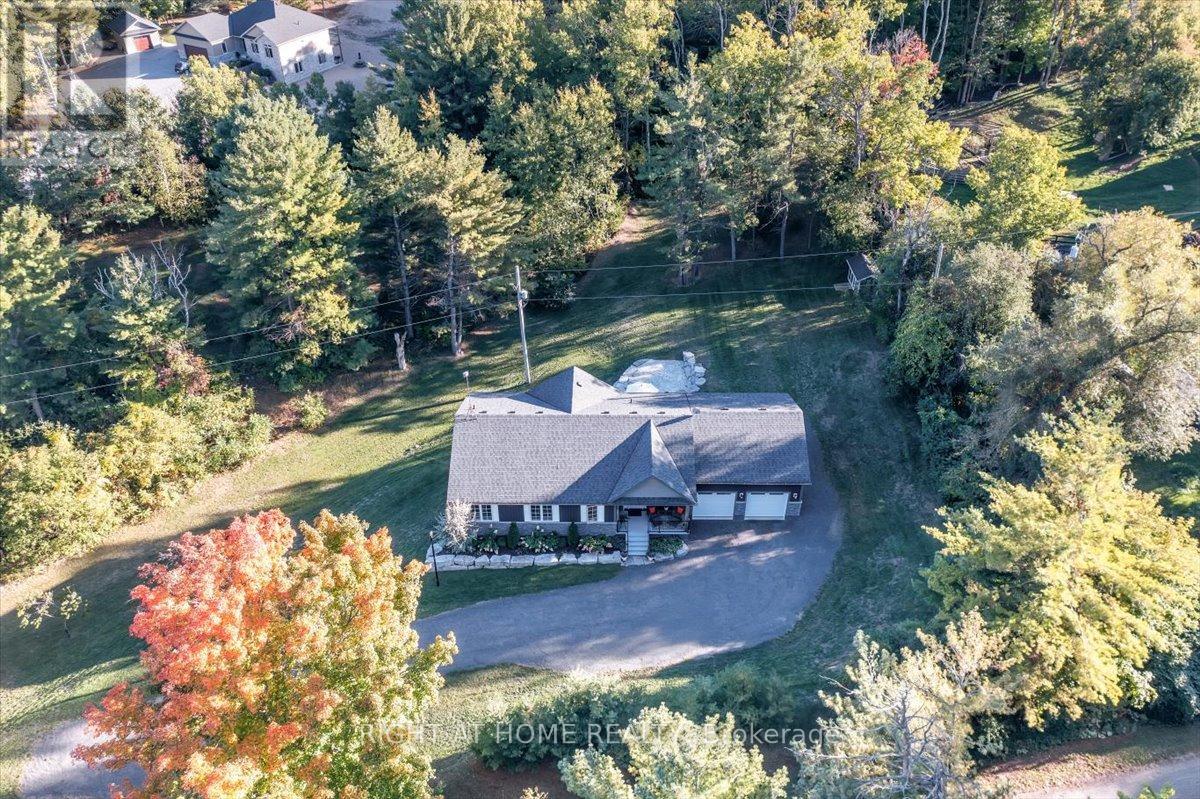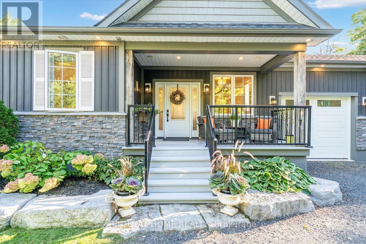 Welcome to this stunning, updated detached bungalow offering nearly 3,500 sq ft of finished living space on a quiet country lot just under 1 acre. With 5 bedrooms (3 up, 2 down) and a bright, open-concept layout, this home is ideal for families, hobbyists, or multi-generational living. Step inside to a spacious foyer and an airy living room with cathedral ceilings, expansive windows, and a w/o to a raised backyard patio overlooking the sunken terrace below. The chefs kitchen is an entertainers dream, featuring stone countertops, a large island, stainless steel appliances, and an undermount farmhouse style sink below a picture window overlooking the backyard. Enjoy indoor-outdoor living with a covered front porch, two-level patio, and direct access to a heated double garage with high ceilings plus a rear garage door for convenient backyard access. The primary suite offers a peaceful retreat with large windows, a walk-in closet, and a 4-piece ensuite featuring a glass shower and heated floors. Two additional upstairs bedrooms offer generous space, large windows, and lighted closets. The fully finished lower level includes a spacious rec room with built-in shelving, 2 bedrooms with above grade windows, a 3-piece bathroom, a walk out to a stone patio and a wet bar set up perfectly for an in-law suite or extended family. The home features a fully installed backup generator for peace of mind, and a built-in sound system for effortless entertaining. Just a 3-minute drive to the lakeside village of Bewdley, you're never far from essentials- whether its a quick grocery run or a last-minute ingredient. Enjoy dining and access to Rice Lake for boating in summer and ice fishing in winter. Minutes to Ganaraska Forest's 11,000+ acres of trails and only 20 minutes to Hwy 407, Hwy 401, Peterborough, and Port Hope this home is perfectly situated for commuters, nature lovers, and anyone seeking peace and space without sacrificing convenience. Move in and enjoy- nothing left to do! (id:64974)