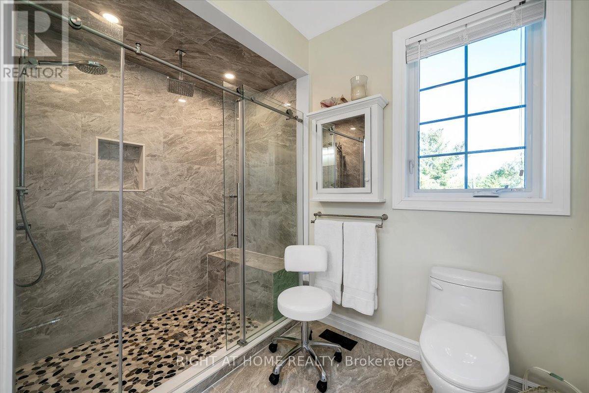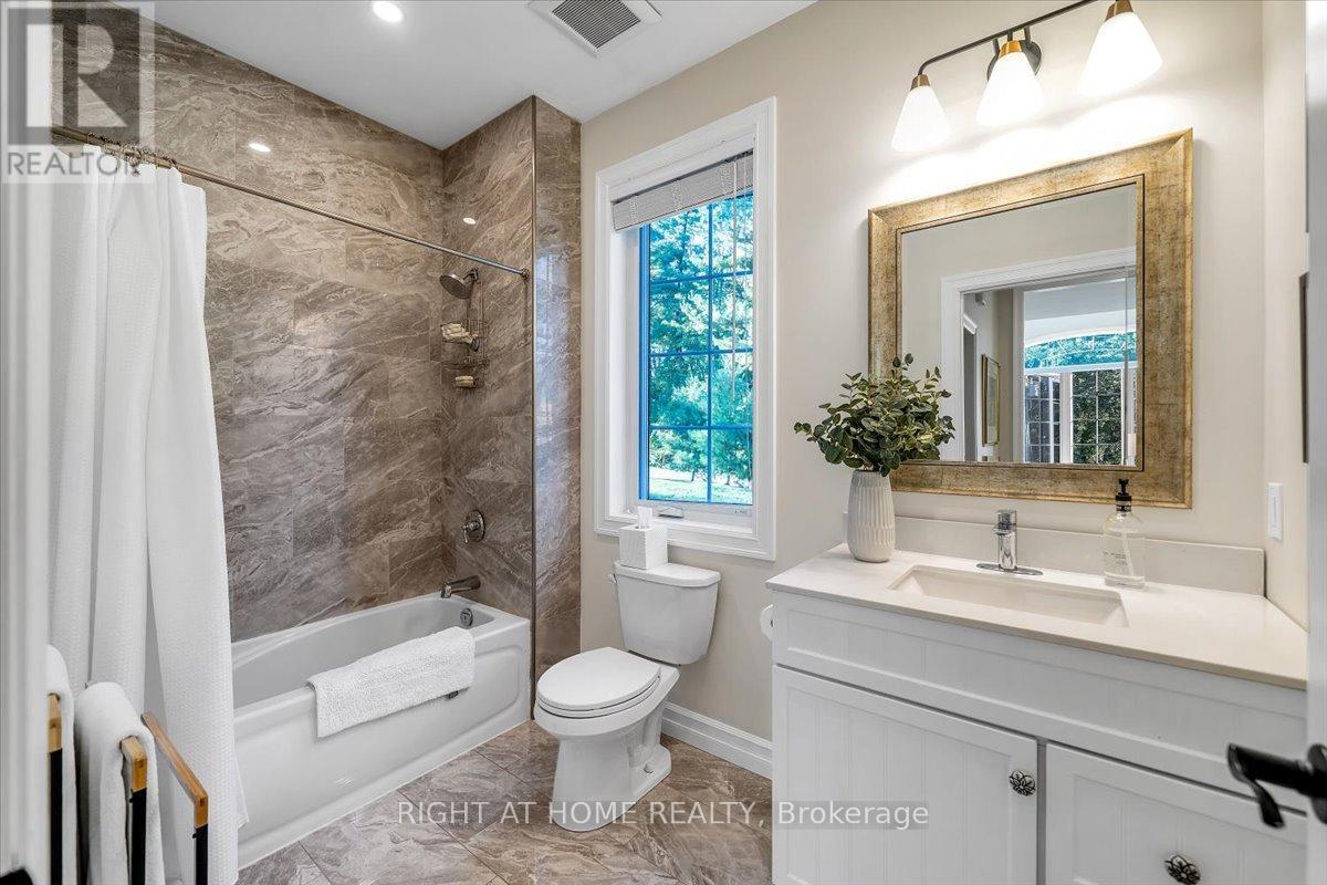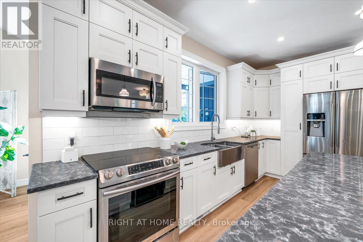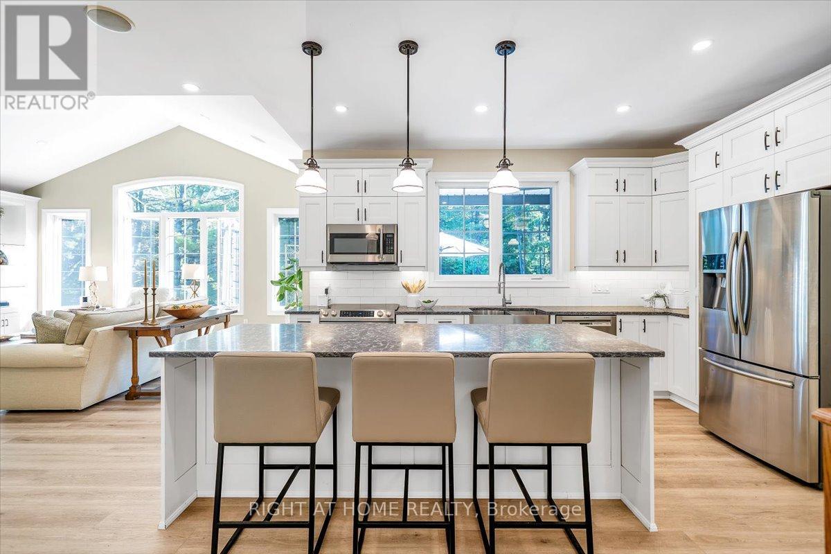 Welcome to this stunning, updated detached bungalow offering nearly 3,500 sq ft of finished living space on a quiet country lot just under 1 acre. With 5 bedrooms (3 up, 2 down) and a bright, open-concept layout, this home is ideal for families, hobbyists, or multi-generational living. Step inside to a spacious foyer and an airy living room with cathedral ceilings, expansive windows, and a w/o to a raised backyard patio overlooking the sunken terrace below. The chefs kitchen is an entertainers dream, featuring stone countertops, a large island, stainless steel appliances, and an undermount farmhouse style sink below a picture window overlooking the backyard. Enjoy indoor-outdoor living with a covered front porch, two-level patio, and direct access to a heated double garage with high ceilings plus a rear garage door for convenient backyard access. The primary suite offers a peaceful retreat with large windows, a walk-in closet, and a 4-piece ensuite featuring a glass shower and heated floors. Two additional upstairs bedrooms offer generous space, large windows, and lighted closets. The fully finished lower level includes a spacious rec room with built-in shelving, 2 bedrooms with above grade windows, a 3-piece bathroom, a walk out to a stone patio and a wet bar set up perfectly for an in-law suite or extended family. The home features a fully installed backup generator for peace of mind, and a built-in sound system for effortless entertaining. Just a 3-minute drive to the lakeside village of Bewdley, you're never far from essentials- whether its a quick grocery run or a last-minute ingredient. Enjoy dining and access to Rice Lake for boating in summer and ice fishing in winter. Minutes to Ganaraska Forest's 11,000+ acres of trails and only 20 minutes to Hwy 407, Hwy 401, Peterborough, and Port Hope this home is perfectly situated for commuters, nature lovers, and anyone seeking peace and space without sacrificing convenience. Move in and enjoy- nothing left to do! (id:64974)