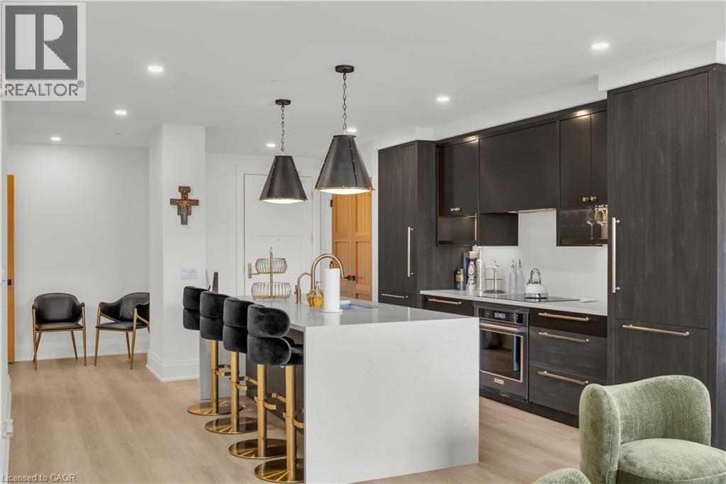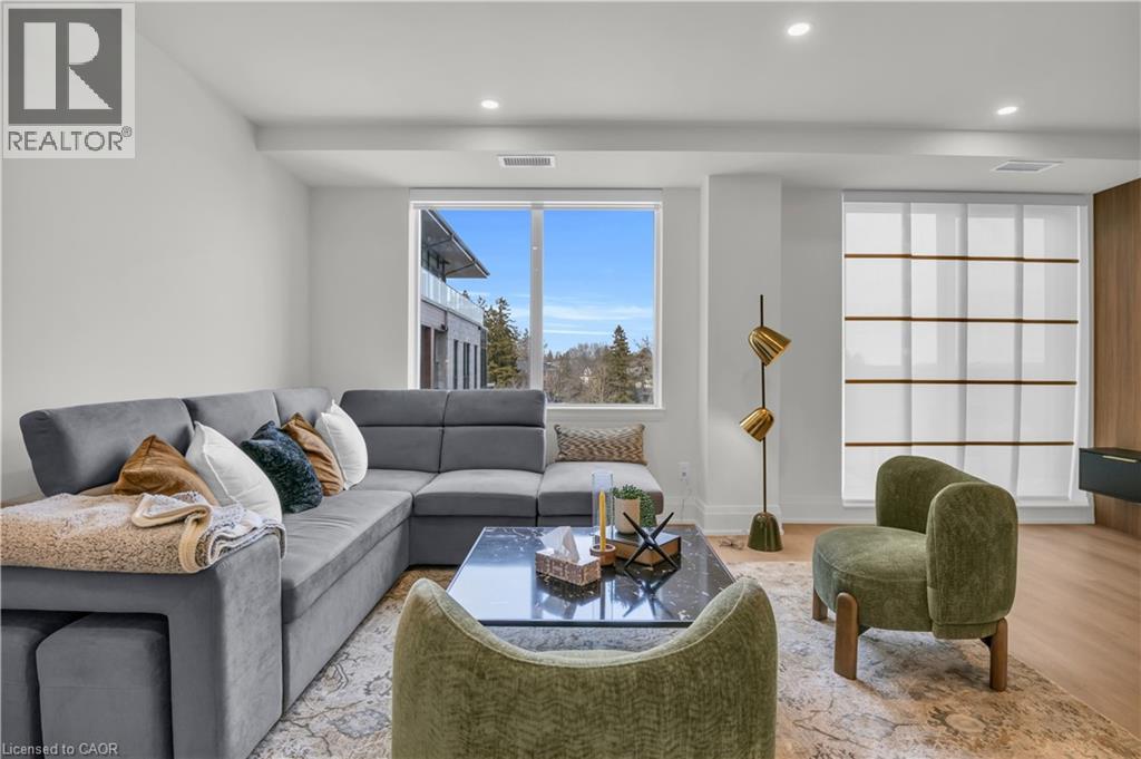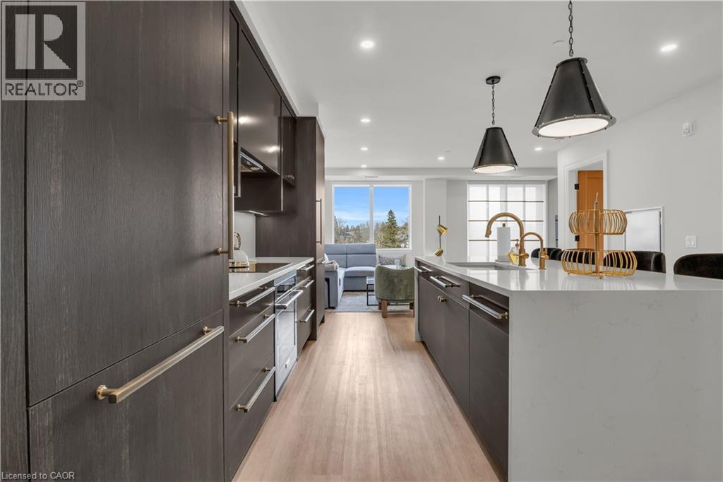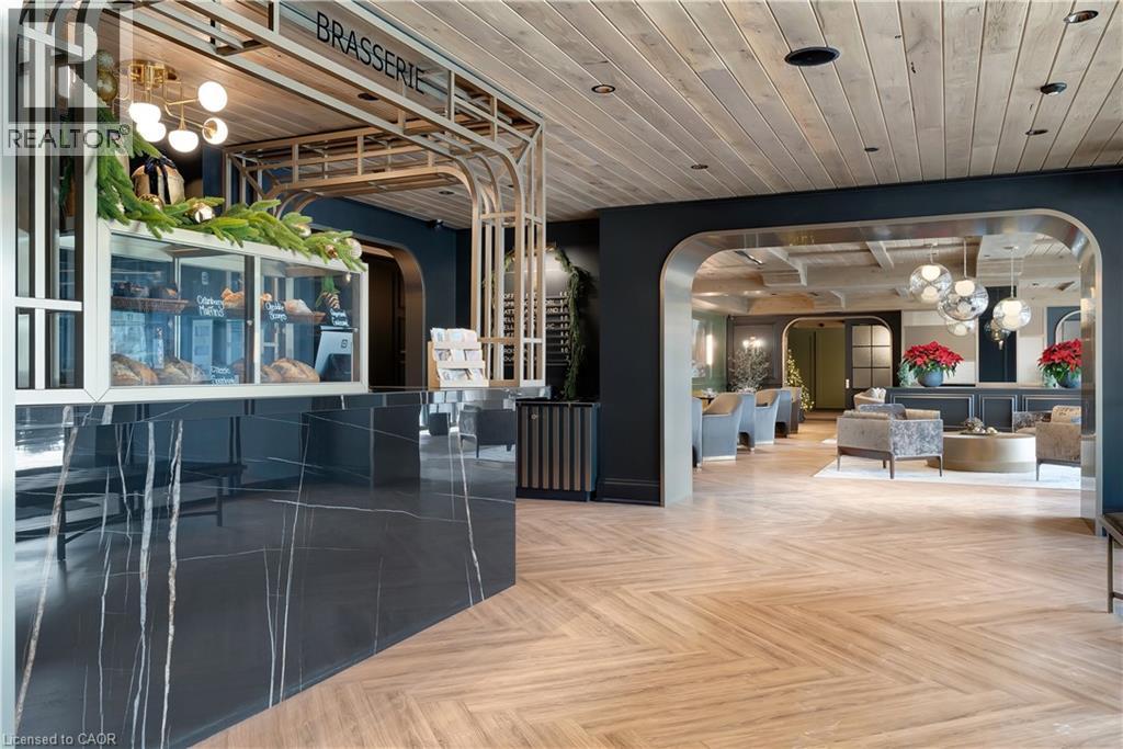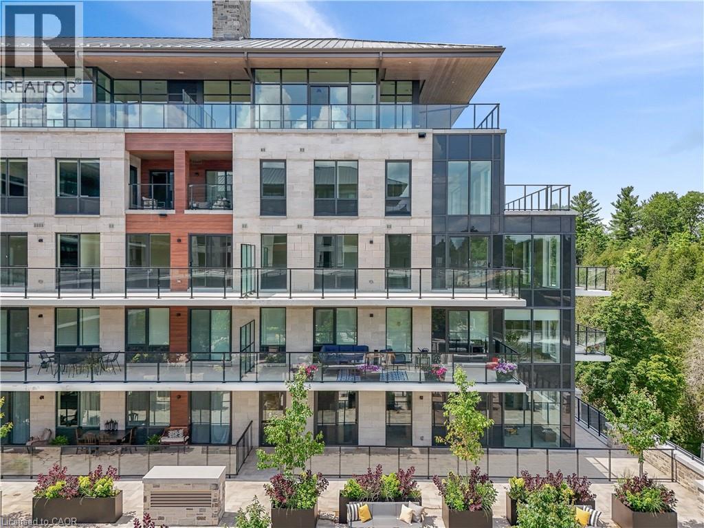 Set within the prestigious Elora Mill Residences and overlooking the Elora Gorge, this fully furnished suite offers an elevated living experience in a truly exceptional setting. Outfitted with high-end furnishings and complemented by custom millwork built-ins, the space is both sophisticated and thoughtfully designed. The open-concept layout is framed by expansive floor-to-ceiling windows, filling the suite with natural light and capturing serene views of the surrounding landscape. The kitchen is appointed with quality cabinetry, stone countertops, and a generous island—perfect for both everyday living and entertaining. The living area extends seamlessly to a private balcony, offering a peaceful outdoor setting. Automated blinds throughout enhance both comfort and convenience. The bedroom is well-proportioned and connects to a beautifully finished ensuite featuring a tiled glass shower. In-suite laundry is ideally located just off the bedroom, adding to the suite’s effortless functionality. Residents enjoy access to an exceptional collection of amenities, including concierge service, fitness centre, yoga studio, outdoor pool, landscaped courtyard overlooking the river, coffee bar, bike storage, and a dog wash station. Ideally located just steps from Elora’s renowned restaurants, cafés, boutiques, and scenic trails—and a short drive to Guelph—this is a rare lease opportunity within one of the region’s most sought-after communities. (id:64974)