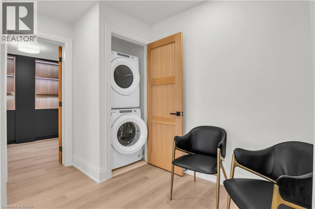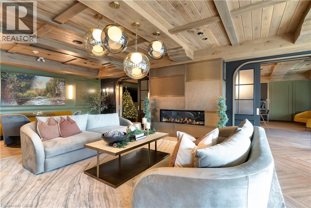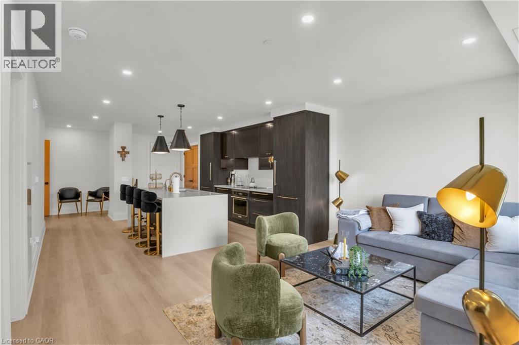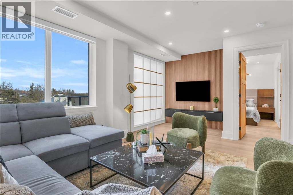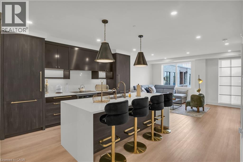 Set within the prestigious Elora Mill Residences and overlooking the Elora Gorge, this fully furnished suite offers an elevated living experience in a truly exceptional setting. Outfitted with high-end furnishings and complemented by custom millwork built-ins, the space is both sophisticated and thoughtfully designed. The open-concept layout is framed by expansive floor-to-ceiling windows, filling the suite with natural light and capturing serene views of the surrounding landscape. The kitchen is appointed with quality cabinetry, stone countertops, and a generous island—perfect for both everyday living and entertaining. The living area extends seamlessly to a private balcony, offering a peaceful outdoor setting. Automated blinds throughout enhance both comfort and convenience. The bedroom is well-proportioned and connects to a beautifully finished ensuite featuring a tiled glass shower. In-suite laundry is ideally located just off the bedroom, adding to the suite’s effortless functionality. Residents enjoy access to an exceptional collection of amenities, including concierge service, fitness centre, yoga studio, outdoor pool, landscaped courtyard overlooking the river, coffee bar, bike storage, and a dog wash station. Ideally located just steps from Elora’s renowned restaurants, cafés, boutiques, and scenic trails—and a short drive to Guelph—this is a rare lease opportunity within one of the region’s most sought-after communities. (id:64974)