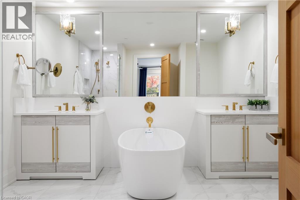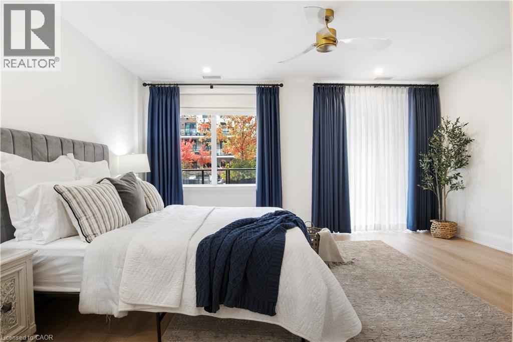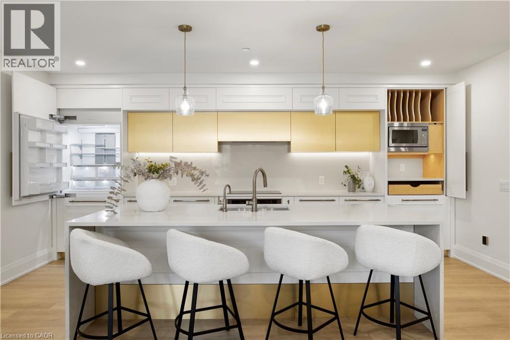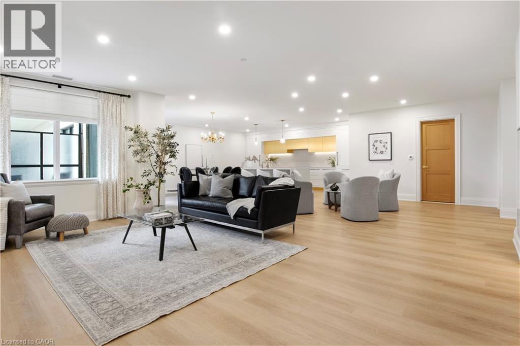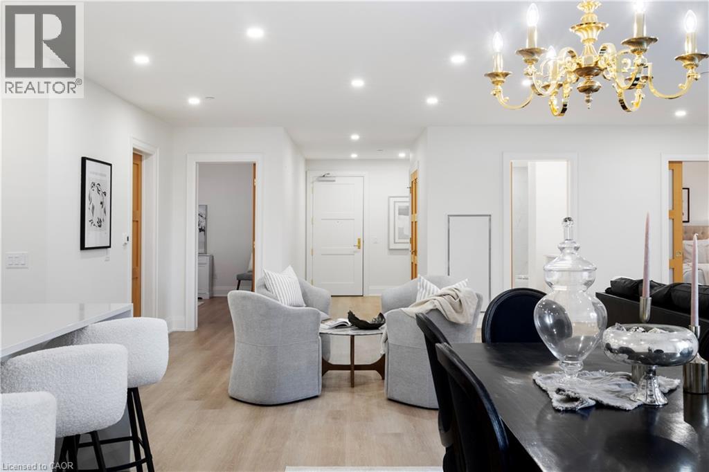 This Luxury suite was designed for those looking to downsize without compromise. 2,098 Sqft of thoughtfully designed living space, this stunning first-floor residence combines the ease of Condo Living with the space and comfort of a Detached Home. This open concept layout has incredible flexibility, allowing you to tailor the space to suit your needs. The expansive dining area comfortably accommodates a full sized dining table, perfect for hosting dinner parties or cherished family gatherings, with room to bring your heirloom set. The living room is ideal for entertaining or relaxing with multiple seating areas and direct access to a sprawling 247 sqft Terrace, perfect for outdoor dining or enjoying your morning coffee. The designer kitchen, complete with an oversized island, with seamless integration into the living and dining areas. Tucked away the primary suite is a true retreat, accessed by a separate hallway and features a spa-inspired ensuite bath and generous walk-in closets. A second spacious bedroom, ideal for family or guests with a large closet & the 3rd bonus room provides added versatility, easily used as a home office, media room or even a 3rd bedroom for visitors. The full-size laundry room offers additional storage and convenience. Located on the ground floor, this suite offers direct views of the Terrace and across the river to the Elora Mill. Perfect for pet owners or those who prefer to avoid elevators. Start your mornings with a short stroll to the resident lounge to enjoy coffee and fresh pastries from the Elora Mill. This suite includes one underground parking space, a locker, and offers access to resort-style amenities: Fitness centre, Yoga studio, Lounge and Lobby Coffee Bar, Outdoor Terrace, and a Pool with Spectacular River Views!! Experience refined living in one of Ontario's most charming and walkable communities. Just steps away from award winning restaurants, artisan shops, cafes and the natural beauty of Elora. (id:64974)