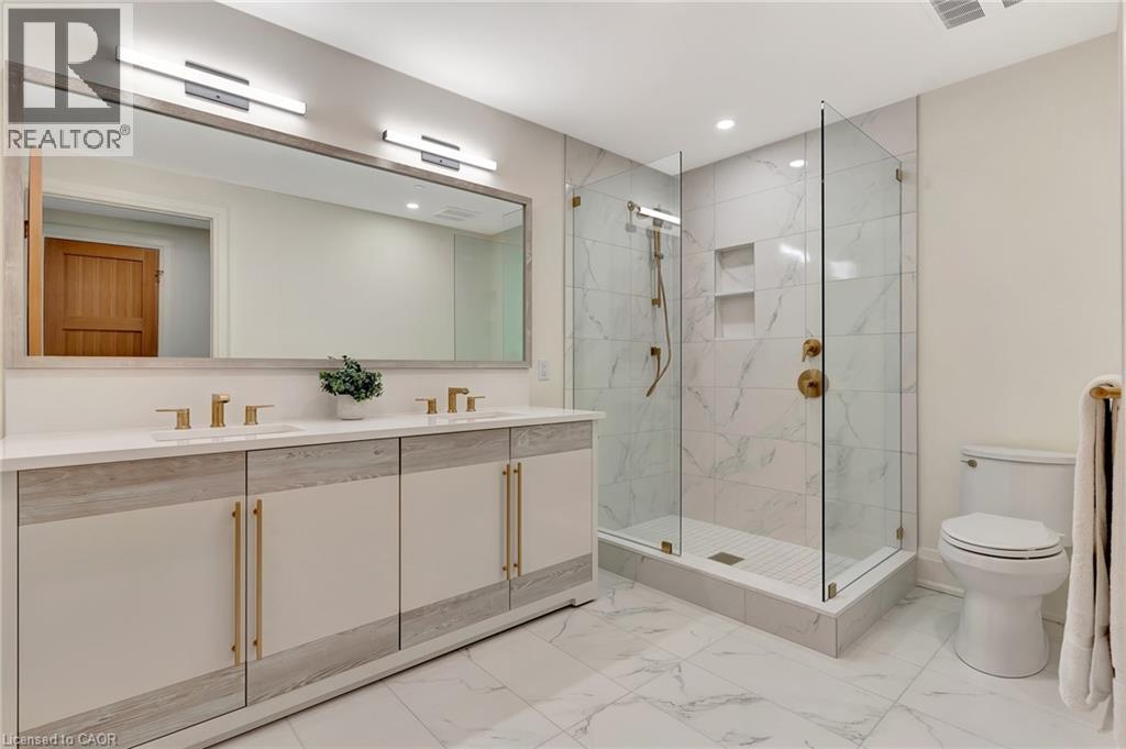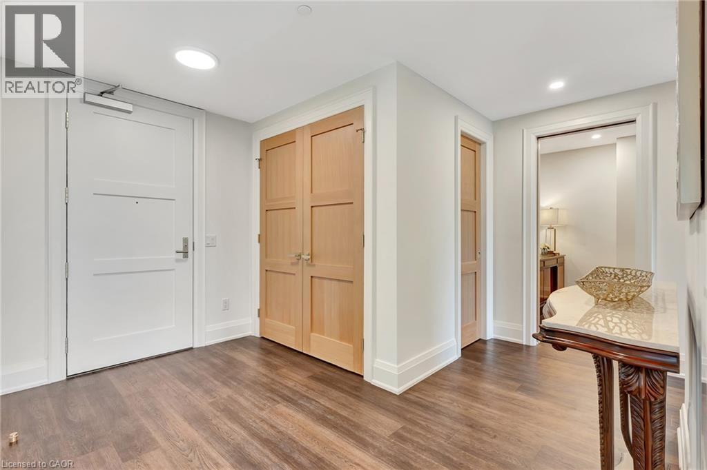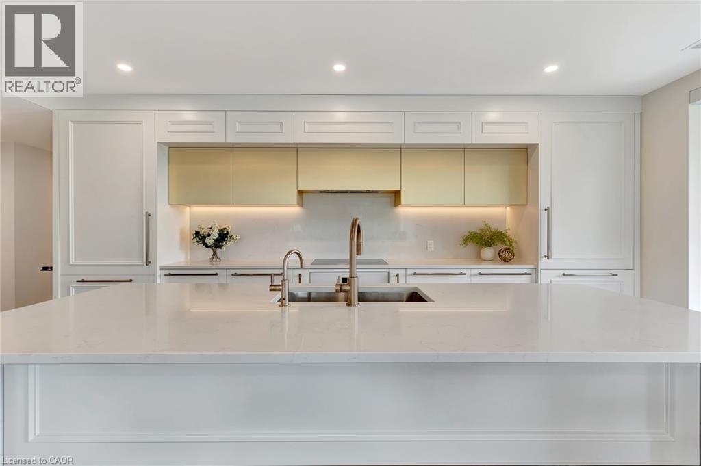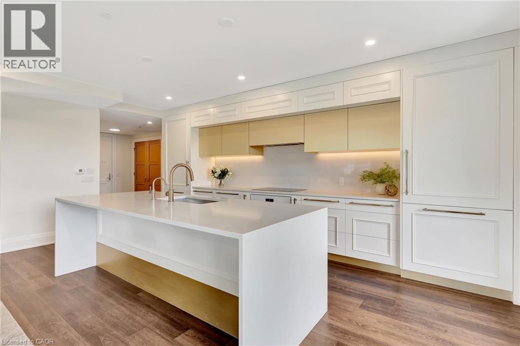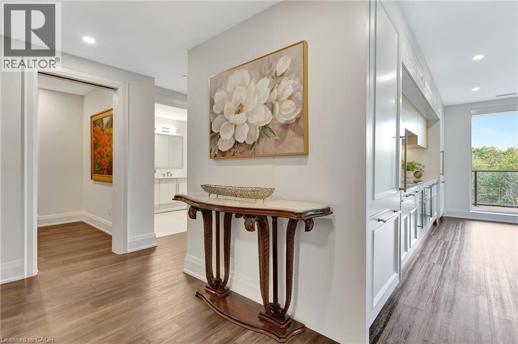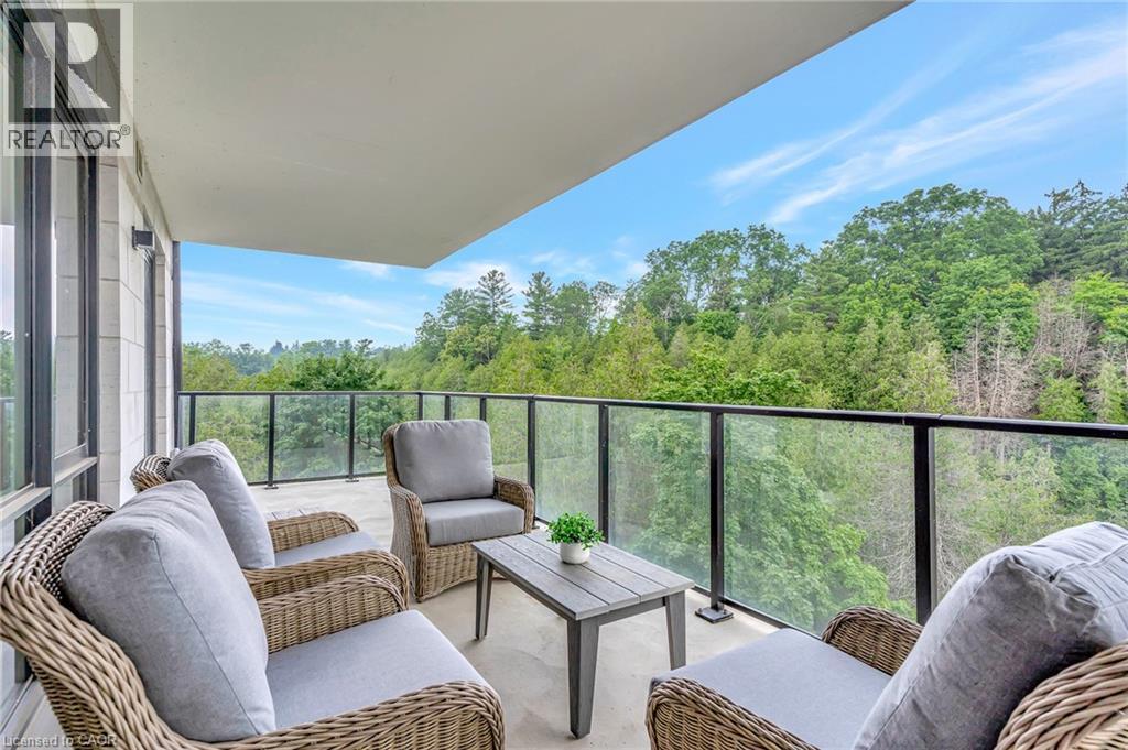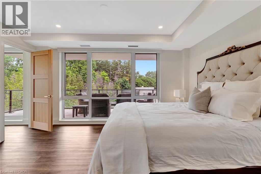 This luxurious 1,979 sq ft, 2-bedroom plus den corner suite is in the most desired location in the building. An additional 500 sq ft of outdoor living space and wrap-around windows give spectacular views in every season.. stunning water views of the Grand River, Gorgeous Elora Mill and the Scenic Tranquil views of the Elora Gorge. The main living area features a kitchen with floor-to-ceiling custom cabinetry, Upgraded Miele appliances, a walk-in pantry, a large island with a waterfall countertop, and seating for four. The spacious dining room provides ample room for a large dining table perfect for hosting dinner parties or family dinners. The bright living room is open and easily accommodates larger furniture making this suite ideal for downsizers. The impressive primary suite boasts river views, two walk-in closets, and a five-piece ensuite bath with a double vanity, a gorgeous soaker tub with chandelier and a separate shower. This ideal layout also has a second wing with an additional bedroom and bathroom for guests, providing privacy. A spacious den with a door offers a versatile bonus room, perfect for a home office, guest room, or home theater. The Luxury Elora Mill Residences offer resort-style living, complete with a concierge, lobby coffee bar, resident lounge, private dining/party room, gym, yoga studio, outdoor terrace with fire pits, and an incredible outdoor pool with spectacular river views. Just steps from Elora's charming downtown, you'll find top restaurants, shops, and cafes to explore, as well as quick access to the trails along the Elora Gorge in this amazing walkable community. Automated blinds throughout the suite, two underground parking spots and a locker complete this ideal luxury home, offering low-maintenance, resort-style living. (id:64974)