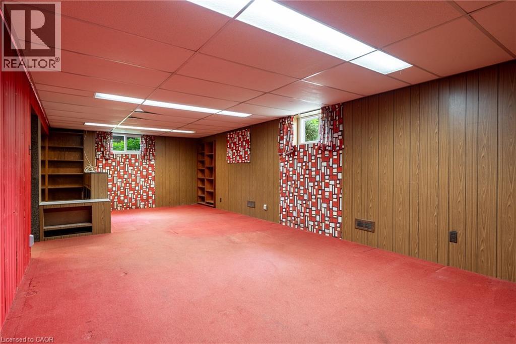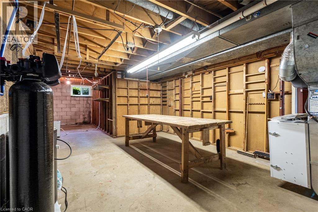 Nestled in the heart of Ancaster, this charming bungalow is located in the quiet sought-after Mohawk Meadows neighbourhood, offering a peaceful lifestyle with exceptional convenience. Enjoy quick highway access and a short drive to the Meadowlands shopping area—perfectly balancing suburban tranquility with everyday amenities and generous lot sizes. The main floor features warm original wood flooring and a cozy wood-burning fireplace in the living room, creating a welcoming space to relax or entertain. A separate dining room offers a walk-out to the rear deck, while the kitchen and partially updated bathroom retain classic character and present an excellent opportunity for future updates to enhance long-term value. The basement provides ample additional living space and flexibility, currently configured as a large recreation room and workshop complete with tool rack space and a sturdy woodworking bench. With a side entrance and direct access to the garage, the lower level offers strong potential for an in-law suite or multi-generational living arrangement. Notable system upgrades include a gas furnace with heat pump cooling, a tankless water heater, and a water treatment system with water softener—all owned. Attic insulation was upgraded to R50 approximately 2–3 years ago, contributing to improved energy efficiency and comfort. (id:64974)