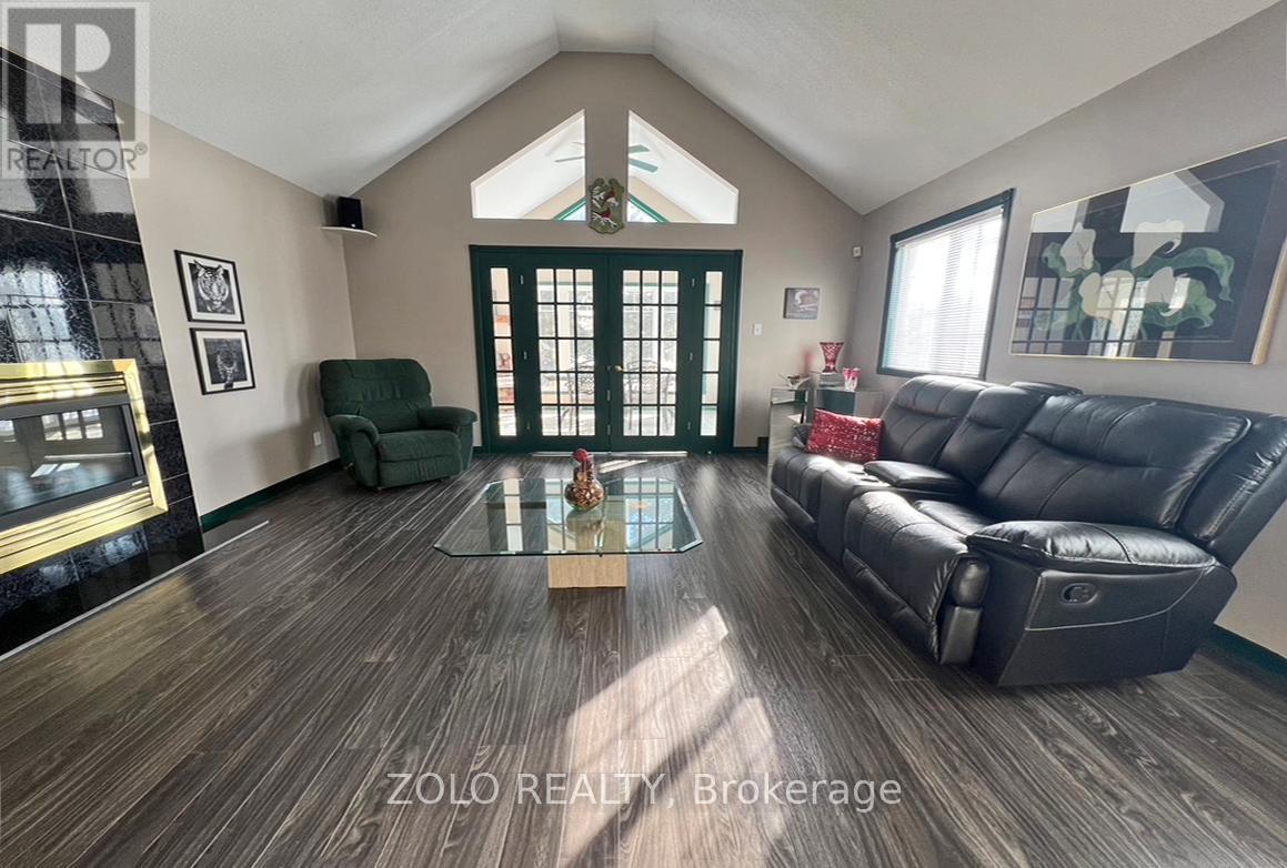Exceptional property for multi-generational living or growing family in the sought after Bayview Estates neighbourhood, just East of Cornwall. Welcome to this massive high-ranch bungalow offering approximately 6,500 sq. ft. of finished living space, featuring 4+1 bedrms & 3+1 bathrms, set on a 3/4 private-acre lot. Conveniently located less than 1 hour 15 min. to Montreal & Ottawa. Walk to parks, wooded areas, Golf and Country Club, scenic bike paths, tennis/pickleball courts & Saint Lawrence River. Parking for 6 cars in driveway. Step inside to a spacious foyer featuring a massive walk-in coat closet and direct access to the oversized two-car garage. The main level offers elegant formal living and dining rooms, along with a large family room showcasing a cathedral ceiling and cozy fireplace. Unwind in the inviting solarium, convenient access to an expansive deck and above-ground heated saltwater pool - perfect for summer entertaining. The bright, oversized kitchen features tons of counter top and cupboard space, granite counters, a gas stove/oven, a huge pantry, an eat-in area & a french door accessing the deck & swimming pool area. Main-floor laundry. The private primary bedrm offers an ensuite bathrm, walkin closet & sauna. Main floor is complemented by three additional well-sized bedrms, & main bathrm. The fully finished lower level provides, a large game room, a massive recreation room, a recently renovated office or gaming space, an additional bedroom, and a brand-new 4 pc bathroom (2025-2026). This level could easily function as an in-law suite, a teenager's retreat, or even be configured as a one-bedroom apartment. Features & Upgrades Include: Renovated kitchen (2022), Two furnaces (one replaced in 2026) ,Two air conditioning unit, Gas generator, 400-amp electrical panel, Two gas fireplaces, Water treatment with UV light and reverse osmosis system. A must see to appreciate the space this home has to offer. (id:64974)
