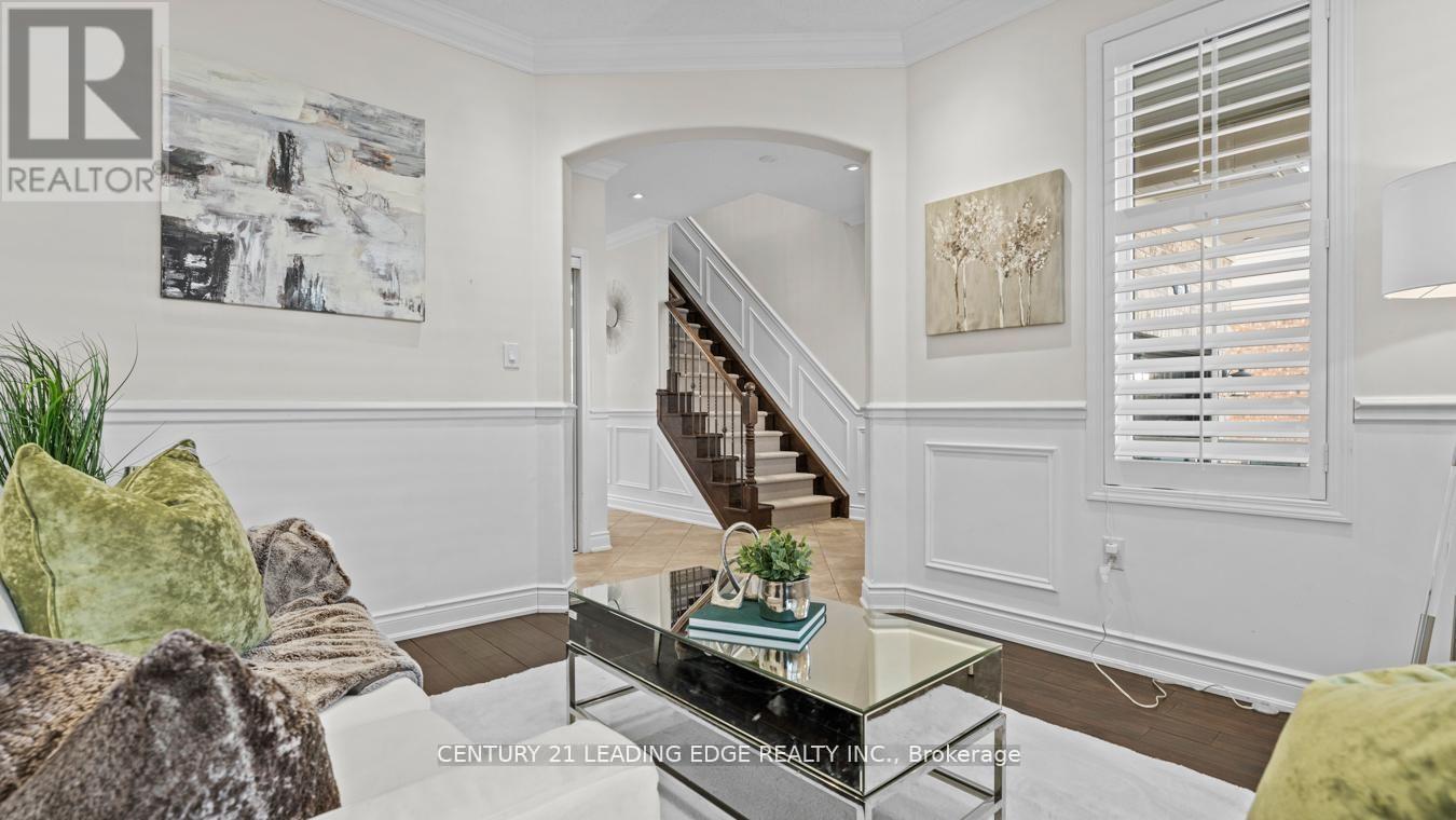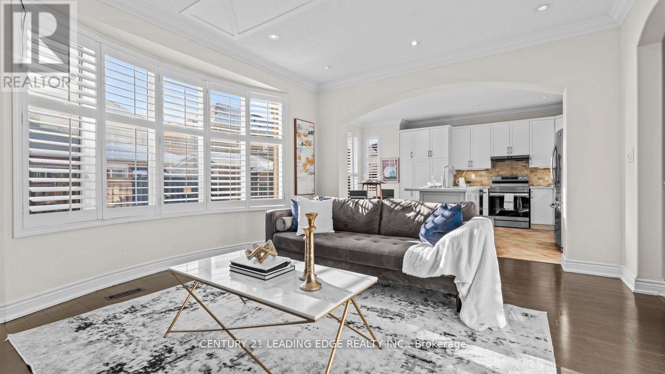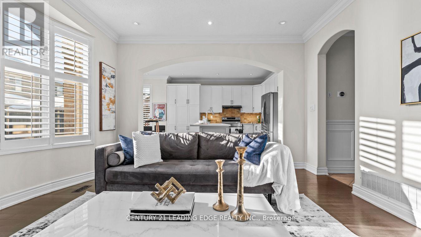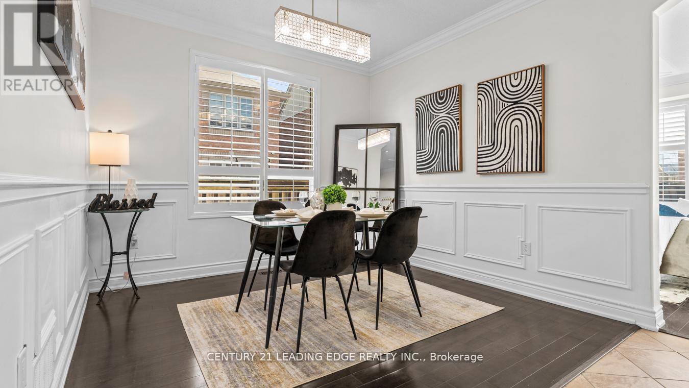Welcome to this stunning detached two-storey home by Mattamy Homes, a highly respected builder known for quality craftsmanship. This elegant residence offers 9 ft ceilings, over 3,200 sq. ft. of finished living space and is thoughtfully designed for modern family living. The main level impresses with rich hardwood flooring, neutral paint palette, pot lights, crown moulding, and wainscoting throughout, along with California shutters that add timeless charm. The spacious layout features a large living room plus a separate above-grade family room, highlighted by a stylish feature wall. The chef-inspired kitchen boasts quartz countertops, stainless steel appliances, custom backsplash, ample pantry space, built-in storage, an island and a separate breakfast area. Upstairs you'll find four generously sized bedrooms, upper-level laundry and multiple walk-in closets. The primary retreat offers a luxurious five-piece spa-like ensuite. The finished legal basement includes a legal separate entrance, den, bathroom and excellent in-law or income potential. Additional highlights include a fully fenced yard, extended driveway for extra parking and a beautiful oversized front porch; perfect for enjoying warm spring evenings and summer nights. Over 300k of upgrades! Nest thermostat, smart door lock & central vacuum. The basement is furnished! The perks are never ending. Situated as an end home on the street (feels like a corner), this property offers added privacy and curb appeal. Ideally located close to schools, parks, wooded trails, and all essential amenities. Newer A/C, furnace, and roof add peace of mind. A rare opportunity in today's market! Come see it for yourself and fall in love! (id:64974)