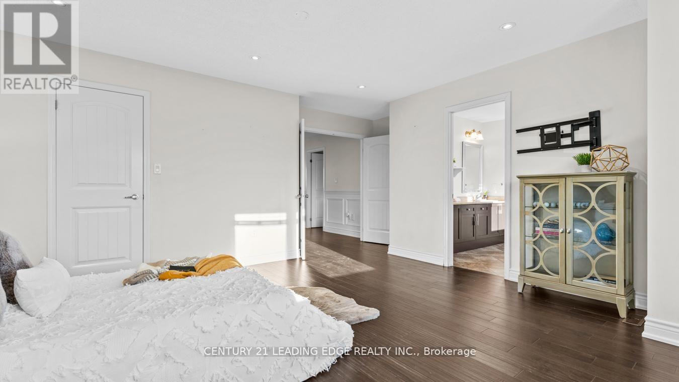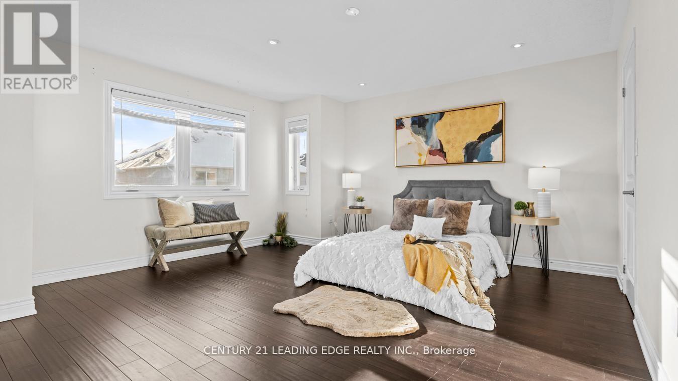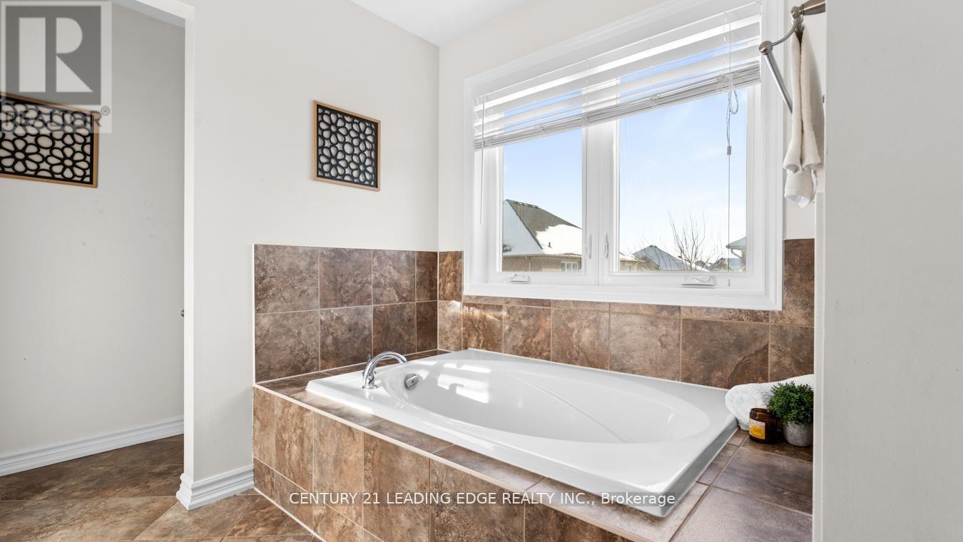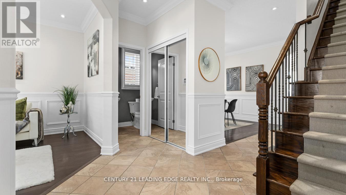 Welcome to this stunning detached two-storey home by Mattamy Homes, a highly respected builder known for quality craftsmanship. This elegant residence offers 9 ft ceilings, over 3,200 sq. ft. of finished living space and is thoughtfully designed for modern family living. The main level impresses with rich hardwood flooring, neutral paint palette, pot lights, crown moulding, and wainscoting throughout, along with California shutters that add timeless charm. The spacious layout features a large living room plus a separate above-grade family room, highlighted by a stylish feature wall. The chef-inspired kitchen boasts quartz countertops, stainless steel appliances, custom backsplash, ample pantry space, built-in storage, an island and a separate breakfast area. Upstairs you'll find four generously sized bedrooms, upper-level laundry and multiple walk-in closets. The primary retreat offers a luxurious five-piece spa-like ensuite. The finished legal basement includes a legal separate entrance, den, bathroom and excellent in-law or income potential. Additional highlights include a fully fenced yard, extended driveway for extra parking and a beautiful oversized front porch; perfect for enjoying warm spring evenings and summer nights. Over 300k of upgrades! Nest thermostat, smart door lock & central vacuum. The basement is furnished! The perks are never ending. Situated as an end home on the street (feels like a corner), this property offers added privacy and curb appeal. Ideally located close to schools, parks, wooded trails, and all essential amenities. Newer A/C, furnace, and roof add peace of mind. A rare opportunity in today's market! Come see it for yourself and fall in love! (id:64974)