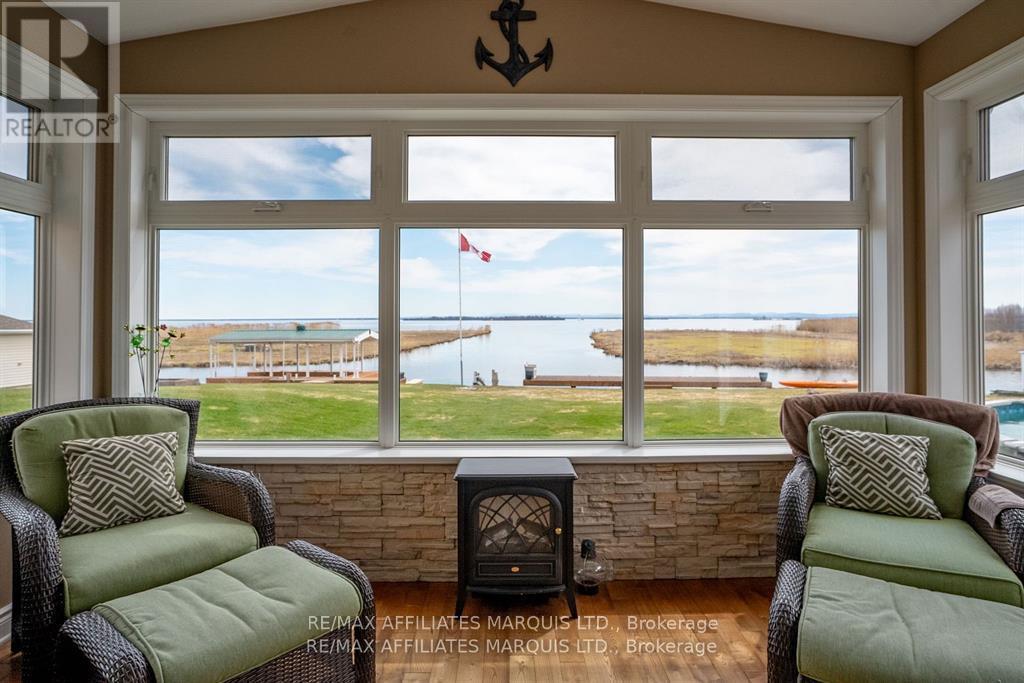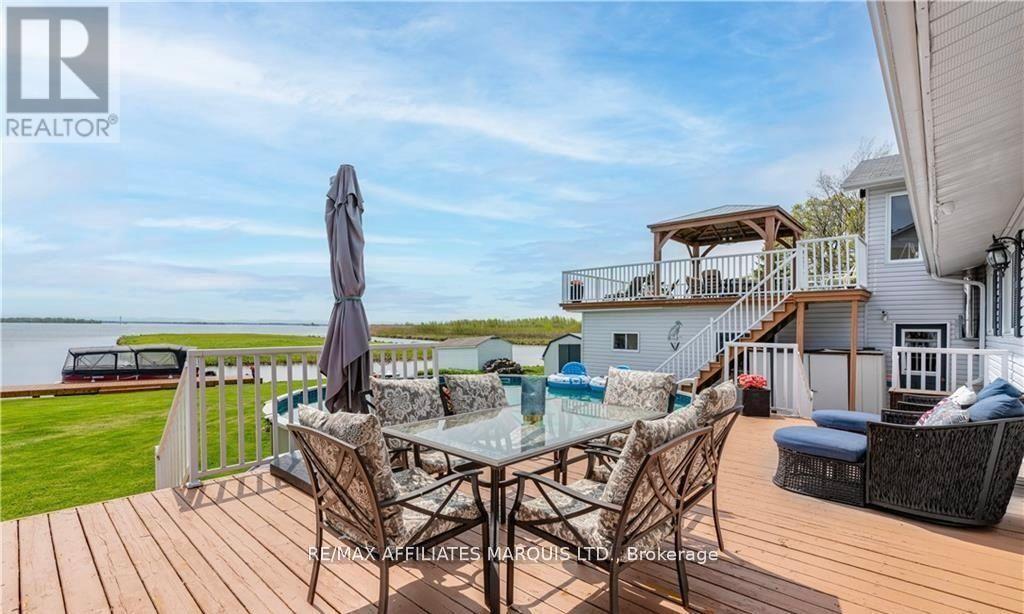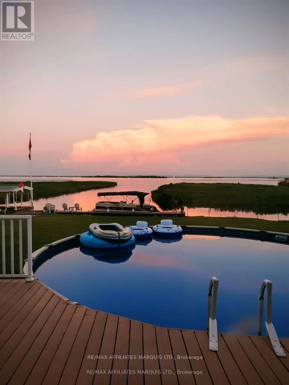 Tree Haven itself, is like a reserve of its own.. its very protected, there's wildlife, only local traffic and I can say first hand that its extremely peaceful and secluded from the noise of Cty Rd 2. Its a small neighborhood of approx 30 homes and its like its own little community. When you sit out, all you hear is birds chirping, while watching Herons, Cranes, Mallards and Geese as they perch on the little island infront of the house and then of course you get to see the ships pass by in the Chanel of the St Lawrence River. Its a fishermans dream location and only a 5-10 mins boat ride to the famous Leblancs Bay. Welcome to your very own waterfront retreat where every morning begins with breathtaking sunrises and uninterrupted views of the majestic Adirondack Mountains. This meticulously maintained 3-bedroom home is a rare gem, designed to capture the beauty of its surroundings from nearly every angle. The main floor features a spacious, well-appointed kitchen perfect for gatherings, a formal living room for cozy evenings, and a stunning 4 season sunroom where walls of windows frame the river like a piece of art. Vaulted ceilings and natural light enhance the airy, inviting atmosphere throughout. The master suite is privately perched on its own upper level, offering a tranquil escape complete with a luxurious ensuite featuring a freestanding tub and direct access to a massive second-storey balcony, an idyllic setting to sip your morning coffee while soaking in the views. Practical features include main floor laundry, an attached garage, and a versatile bonus room at the rear, ideal for a games room, man cave, or seamlessly integrated outdoor entertaining space. The above-ground pool invites summer fun, and the pile-driven dock makes waterfront living a breeze. With no basement to worry about, this home is low-maintenance and worry-free, truly the perfect blend of comfort, style and serenity. (id:64974)
