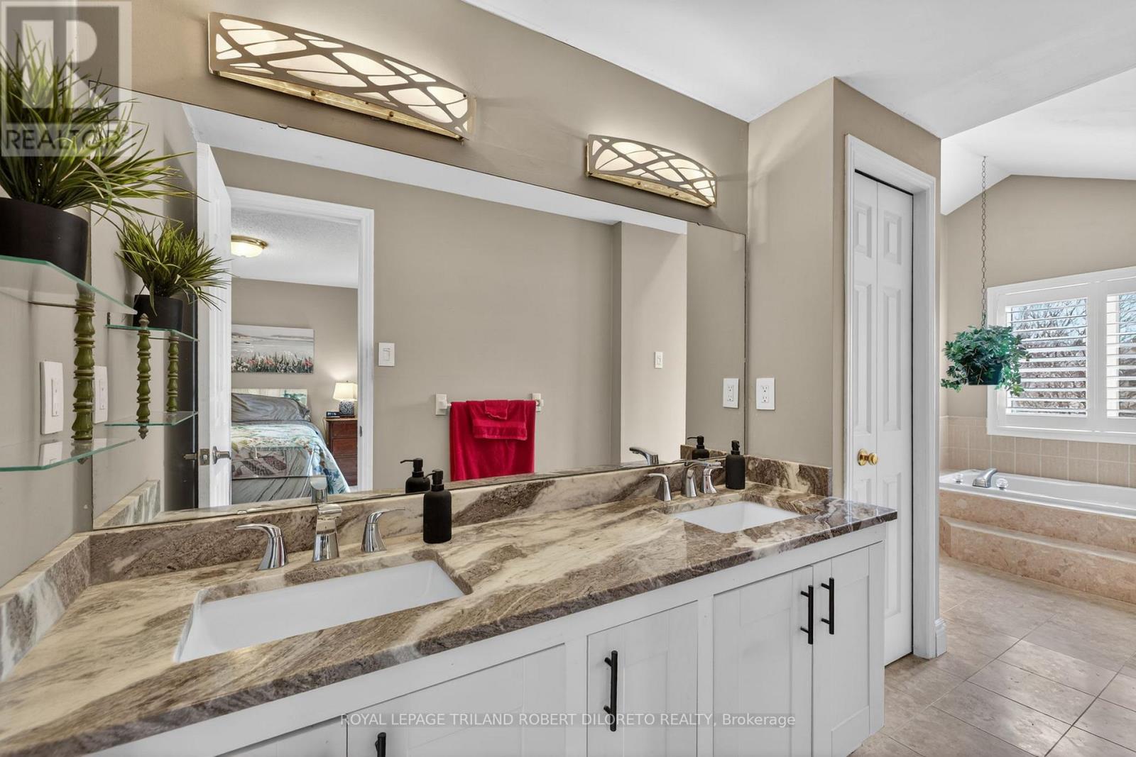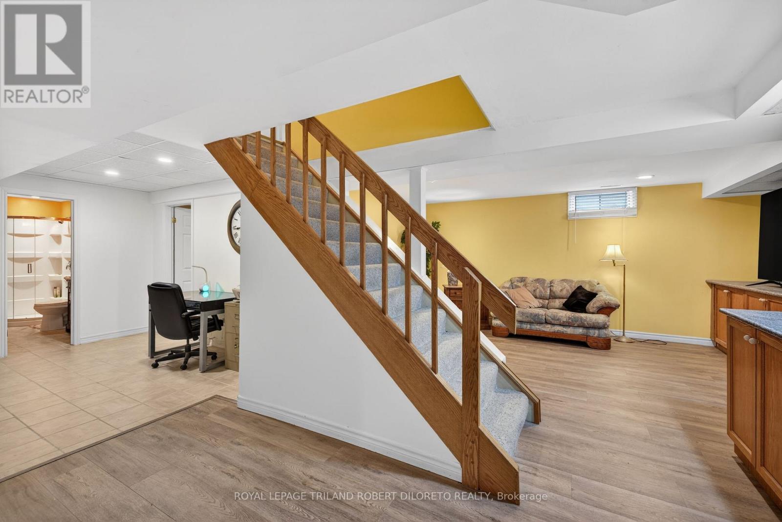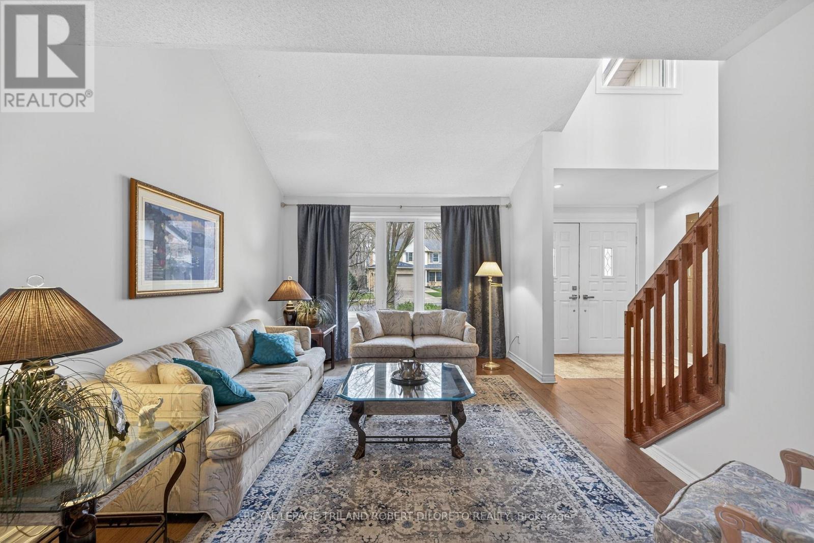 Location! Location! Situated on a quiet tree-lined street in desirable "Hazeldon North" community, is this very spacious & immaculate 3 bedroom, 3.5 bath 2-storey home with finished lower level and double car garage. This beautiful home is first time on the market and in an area where very few homes come up for sale as it is walking distance to schools, Springbank Park + all conveniences in both Oakridge and Byron. Features: large multi-car driveway and attractive curb appeal; spacious welcoming foyer open to upper level; all neutral decor with ample windows; carpet free main level w/updated flooring; formal living and dining rooms; main floor step-down family room w/gas fireplace; main floor laundry & 2pc powder room; the 2nd floor boasts 3 huge bedrooms and 2 baths which include large primary bedroom w/5pc ensuite; need more space?--then the finished & carpet free lower level affords plenty of versatile finished living space to utilize as needed. The private and treed rear yard with stone patio is the perfect size for those who would rather spend more time relaxing or away at the cottage rather than doing yard maintenance. Added features: Furnace & AC (approx. 2019), metal roof (approx. 2016). This is a super opportunity so do not miss out. Please view multi-media. (id:64974)