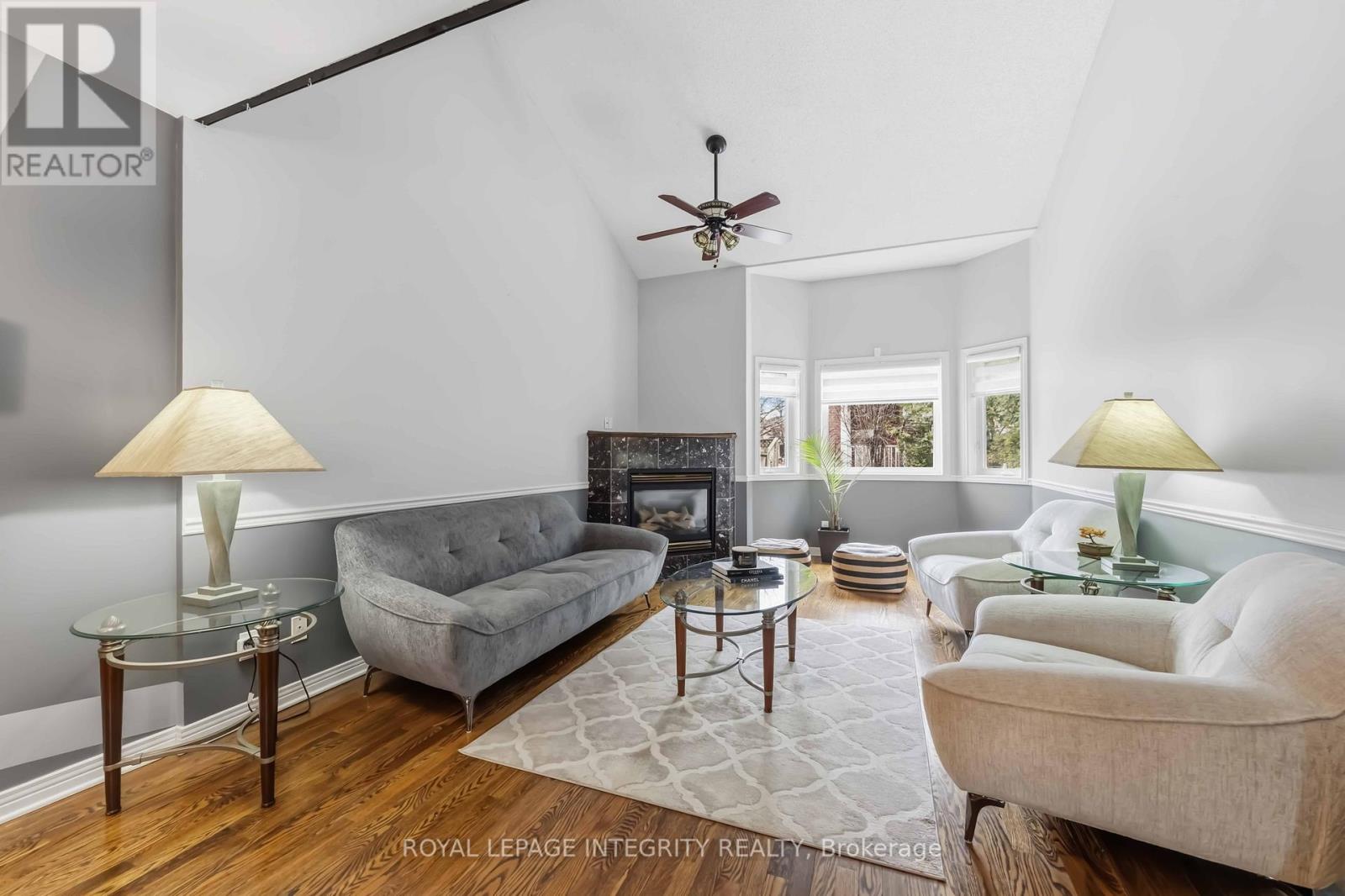 Welcome to 66 Eagleview St in the heart of Kanata's Emerald Meadows! This 2-bedroom + loft, 3-bathroom townhome features a finished lower level and plenty of living space. The inviting tiled foyer includes a double closet, powder room, and inside access to the garage. Bright living room boasts vaulted ceilings, a cozy gas fireplace, bay window overlooking the backyard, and hardwood flooring throughout the main level. The kitchen features refreshed cabinetry, ample storage, tile backsplash, newer sink and faucet, and generous counter space. The eat-in kitchen opens to the backyard through patio doors-perfect for entertaining. Upstairs, the primary bedroom includes a walk-in closet and full ensuite, while the second bedroom has a double closet. A versatile loft with oak railing overlooks the living room and includes a removable privacy screen-ideal for a home office or study. Full main bathroom and linen storage complete the level. Finished lower level offers extra living space for a rec area, plus a laundry/utility room with plenty of storage. Prime location close to schools, shopping, and transit! (id:64974)