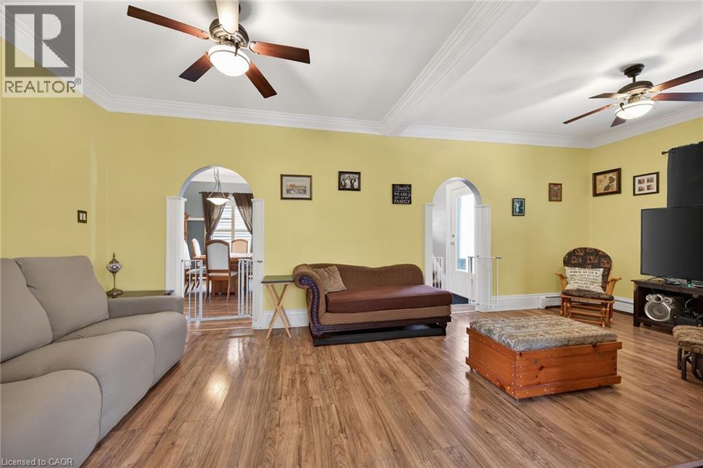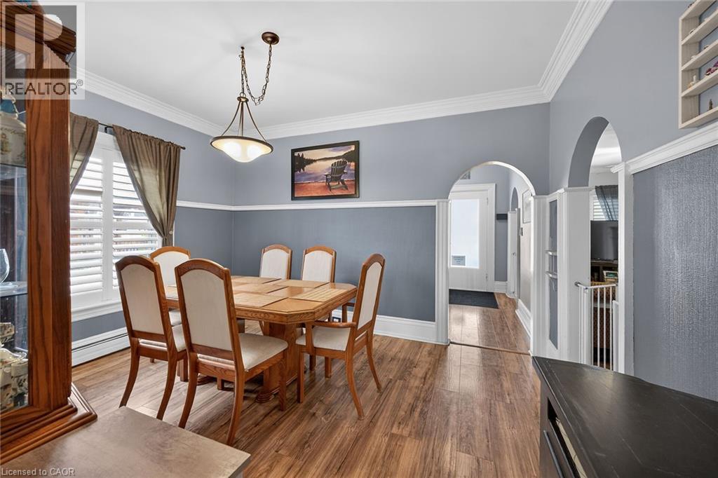 Beautifully presented, Tastefully updated Circa 1908 all brick 2.5 storey home situated on desired 66’ x 132’ lot. Offering Stately curb appeal with wrap around front covered porch, inviting walkway, ample parking, brick exterior, lush landscaping, & sought after detached garage. The flowing interior layout features charm & character throughout highlighted by period specific trim, doors, & railings, eat in kitchen, formal dining area, main floor primary bedroom, large living room, welcoming foyer, 2 pc bathroom, & sought after MF laundry. The 2nd level includes 2 spacious bedrooms & primary 4 pc bathroom. The upper level offers 4th bedroom loft area with numerous potential uses. Conveniently located close to amenities, shopping, schools, parks, splash pad, pool, & downtown shops. Relaxing commute to Hamilton, Ancaster, 403, & QEW. Ideal home for first time Buyers, family, Investment, or those looking for the perfect inlaw suite. Pride of ownership is evident throughout Experience and Enjoy Hagersville Living (id:64974)