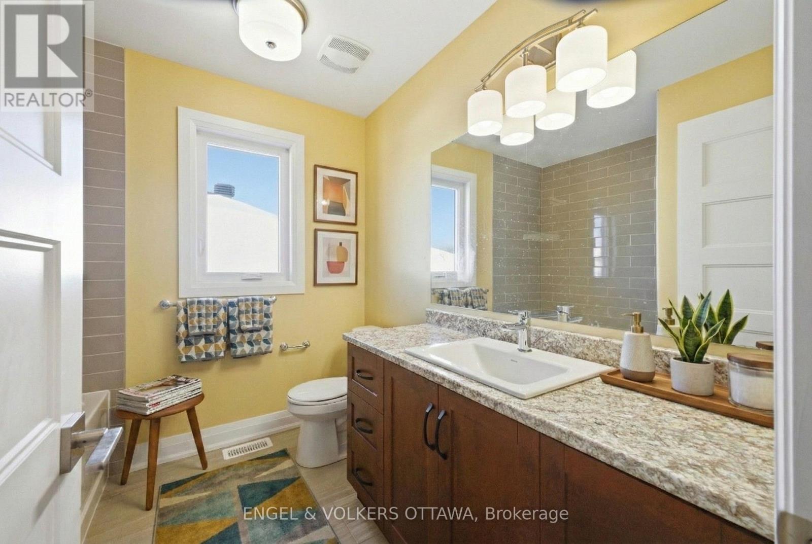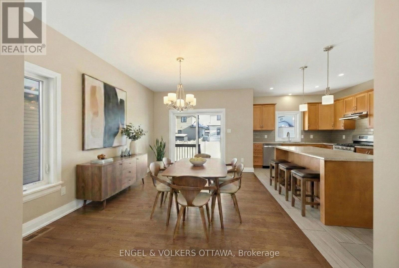 Nestled in the heart of Casselman, this detached home offers a functional layout with bright interiors and a generous backyard. The main level features a spacious open-concept layout where the living and dining areas are unified by rich-toned hardwood flooring and large windows. A front-facing picture window and the sliding patio doors off the dining room fill the space with natural light. The kitchen is thoughtfully finished with warm wood cabinetry, stone countertops, a classic subway tile backsplash, and a central island with pendant lighting. Upstairs, the primary bedroom is complete with a walk-in closet and a 4-piece ensuite featuring a deep soaker tub, glass shower, and vanity with a stone countertop. Two additional bedrooms offer flexible living arrangements for children, guests, or a home office, each finished in soft carpeting and filled with natural light. The lower level presents a spacious, partially finished basement, offering ample opportunity to customize the space to suit your lifestyle - whether that be a home gym, recreation room, or workshop. Outside, a backyard with generous lawn space and sleek black railings leading from the home offers a private and versatile outdoor space. Set in a quiet residential pocket of Casselman, this home is moments from parks, schools, local shops, and Highway 417 for a quick commute to Ottawa. With a strong sense of community and all the essentials nearby, this home is an ideal place to put down roots and enjoy the best of small-town living. The property is currently vacant, and the photos have been virtually staged. (id:64974)