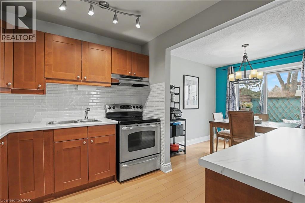 Introducing this charming 3 bed, 1.5 bath townhome in south Aldershot. Features include a bright kitchen with stainless steel appliances, a new backsplash, and updated countertops. A convenient passthrough window connects the kitchen to the cozy living room, creating an open and inviting flow, while the dining area offers a walkout to a private patio; perfect for relaxing or hosting friends. Upstairs you’ll find three generously sized, carpet-free bedrooms along with a well-appointed four-piece main bath. The finished basement adds even more living space with a large recreation room making it ideal for movie nights, a home office, or a play area—while the laundry room offers ample storage to keep everything organized. As a condo townhouse, this home delivers the ease of maintenance-free living, giving you more time to enjoy everything the surrounding area has to offer. Conveniently located close to downtown, the hospital, public transit, arts centre, parks and playgrounds, Mapleview Mall, and a wide range of shopping and dining options. Plus, you’re just minutes from the beach and have quick access to major highways for an easy commute. Attractively priced and packed with value, this is an incredible opportunity you won’t want to miss. Book your private showing today! (id:64974)