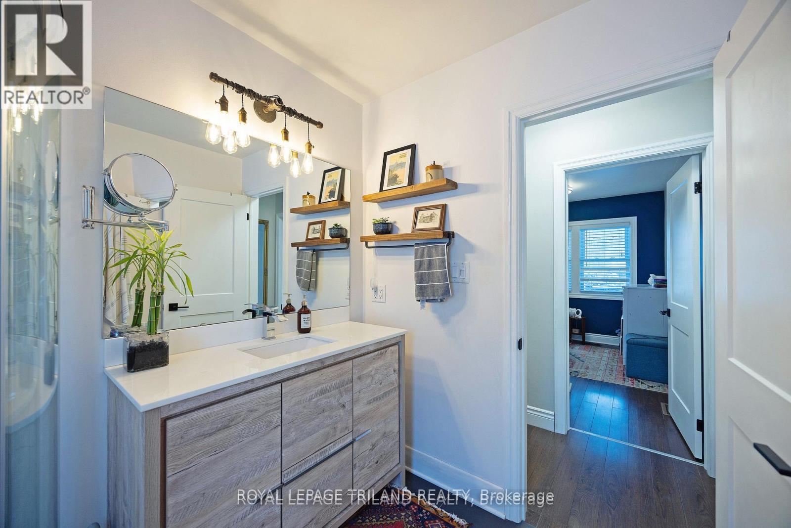Oversized Lot on Quiet Cul-de-Sac with Backyard Access. A rare find in south London, this 55 x 214 ft lot offers exceptional space, privacy, and flexibility on a quiet, tree-lined cul-de-sac where homes seldom come available. The fully fenced backyard is the true standout. Deep, wide, and surrounded by mature trees, it offers rare rear access and the kind of usable space that's increasingly hard to find-ideal for a future workshop or expansion. Whether you're looking to grow into the property or simply enjoy the space, the potential here is clear. The home offers 3+1 bedrooms, 2 full bathrooms and a finished, insulated basement. Comfortable and well maintained, with recent updates including a renovated upstairs bathroom (2020), professional built-in cabinetry in the primary bedroom (2020), and new kitchen appliances (2024-2025). A large covered front porch overlooks the cul-de-sac, adding to the home's quiet, established setting. Located just minutes from Victoria Hospital, Westminster Ponds, and Highway 401, this is a unique opportunity to secure space, location, and long-term upside in a sought-after south London neighbourhood. Now offered at a compelling new price. (id:64974)