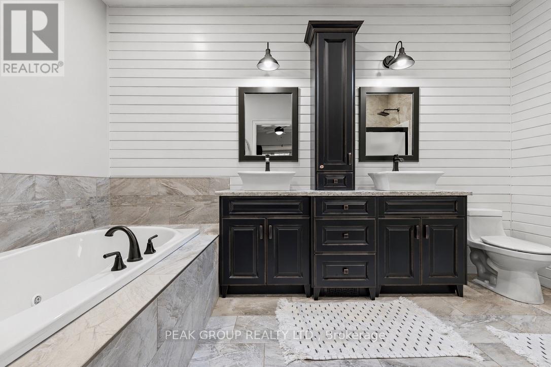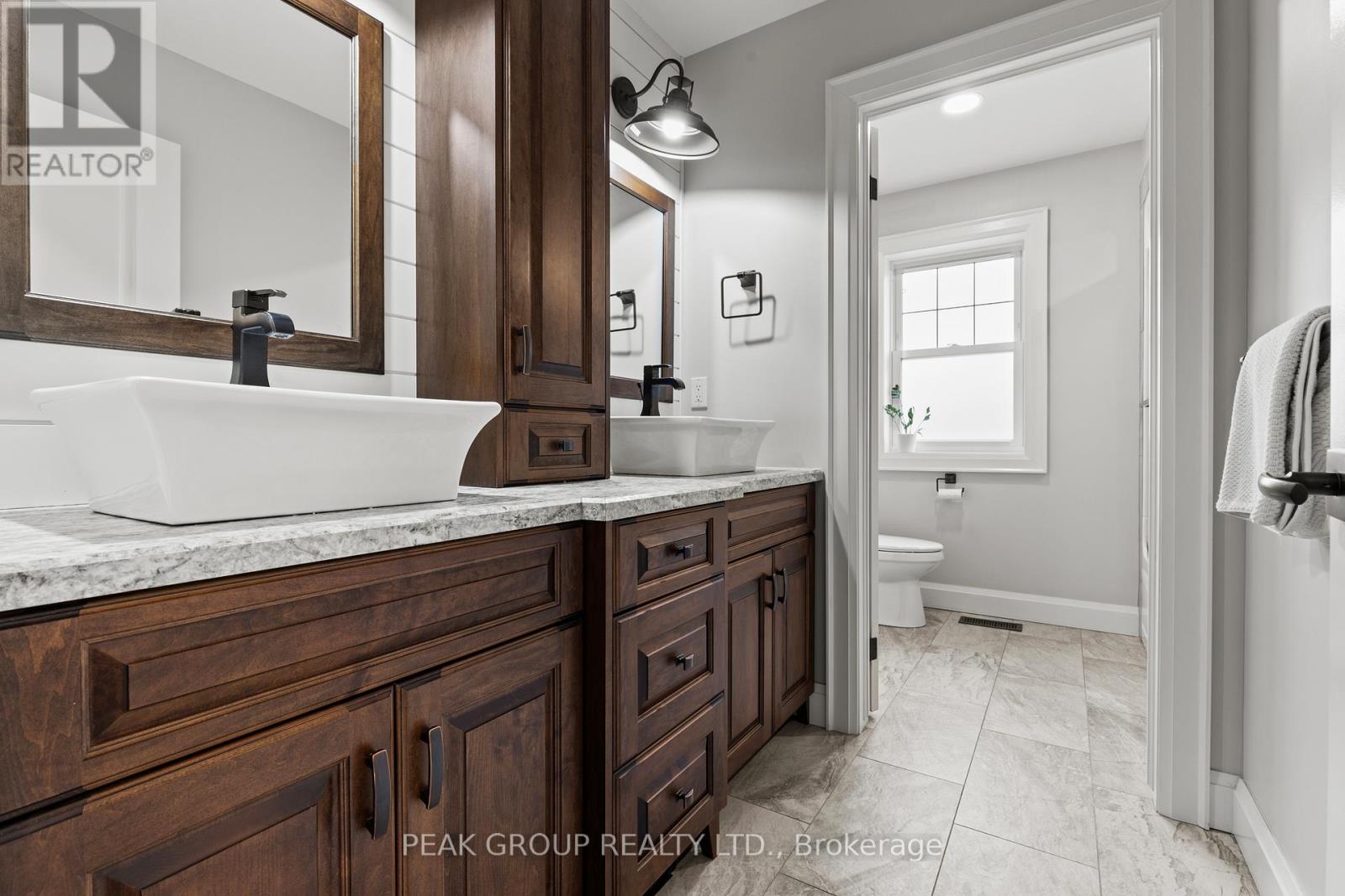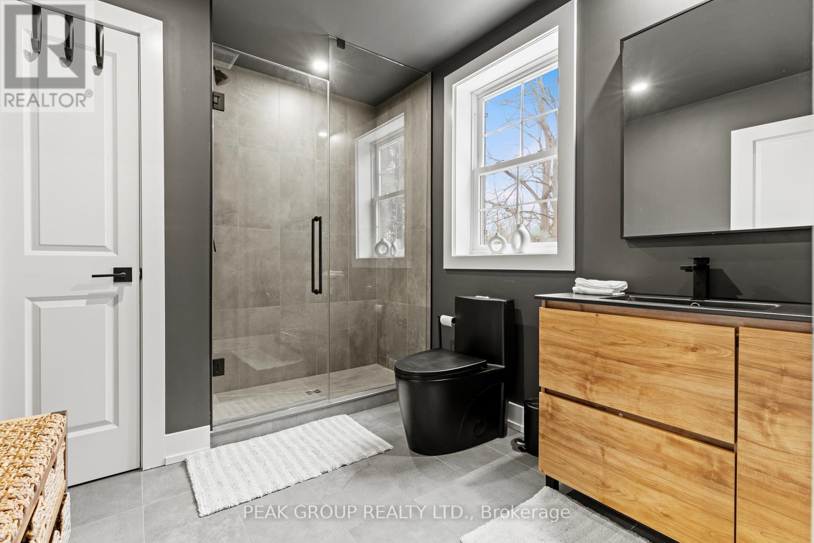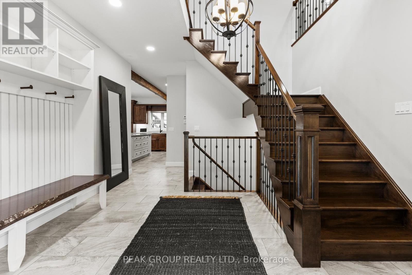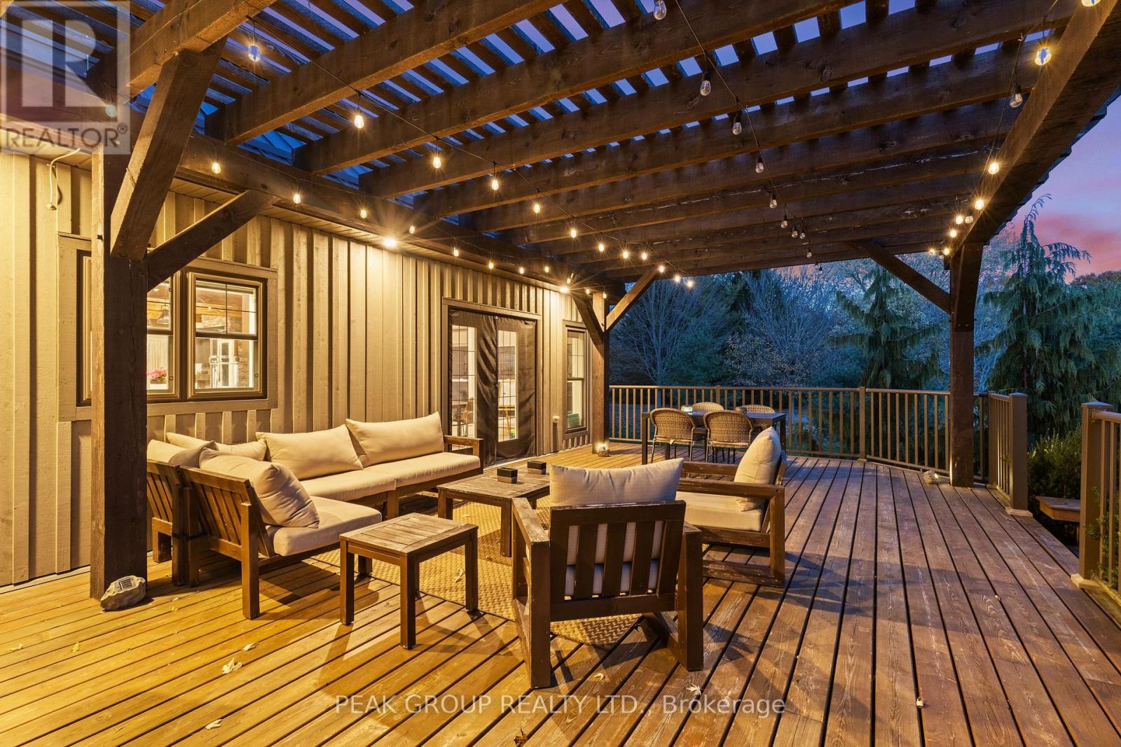 Welcome to luxury living in the heart of Pelham where privacy, charm, and lifestyle come together on a beautifully manicured property. From the moment you arrive, you're greeted by mature trees, expansive u-shaped driveway, and a stunning home featuring a wraparound porch-perfect for enjoying peaceful mornings and scenic surroundings. Step inside to a bright, open-concept main floor highlighted by soaring cathedral ceilings, exposed wood beams, and oversized windows that flood the space with natural light. The thoughtfully designed kitchen features a large island and generous dining area ideal for hosting, all seamlessly connected to a warm and inviting living room with a gas fireplace. Walk out from the kitchen to a covered deck built for entertaining, complete with a hot tub and views of the expansive backyard-your own private outdoor retreat. The main level also offers exceptional functionality, including a spacious mudroom with laundry, ample storage, separate backyard access, and entry to the attached 3-car garage. A guest bathroom and a main floor primary suite with a luxurious 5-piece ensuite provides convenient, main-level living. Upstairs, a loft-style office overlooks the staircase and leads to three additional bedrooms and a well-appointed 4-piece bathroom-perfect for growing families or guests. The fully finished basement extends your living space with a large open-concept recreation room, an additional bedroom, abundant storage, separate entrance to the garage, and a spacious wraparound cold cellar. A standout feature of this property is the beautifully finished accessory dwelling unit , currently set up as a premium home gym. Complete with a glass-tiled shower, loft space with glass railings, heating and cooling split system, and a garage door for seamless indoor-outdoor living. This versatile space offers endless possibilities. Whether used as a gym, future pool house, workshop, studio, or for the car enthusiast, this is a rare and valuable addition. (id:64974)