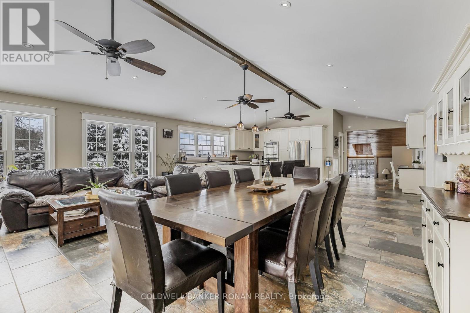This stunning 6-bedroom, 6-bathroom bungalow on 10 acres just north of King offers luxurious living with the convenience of nearby amenities. The property is a rare find, featuring a barn with paddocks for animals, a spacious 35x60 ft shop, a 40x60 ft coverall, and an expansive gravel yard space. Inside, the beautifully designed home boasts a grand open-concept kitchen and family room, perfect for entertaining. Four of the five main-floor bedrooms include private en suites, while the primary suite offers a large ensuite, walk-in closet, and in-room laundry. The partially finished basement features heated floors, a bedroom and bathroom, a large gym area, and a reinforced concrete/rebar room designed for secure storage. Step outside to a fully landscaped backyard oasis, complete with an inground pool and hot tub, creating the perfect retreat. Extras: Hot Water Tank (Owned), Septic Tank Pumped (October 2024), In-Floor Heating In Basement. (id:64974)