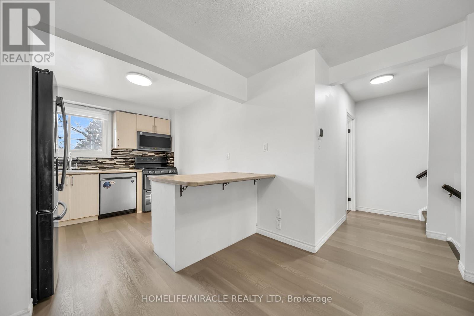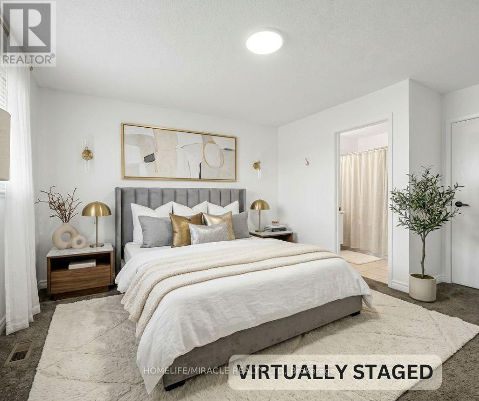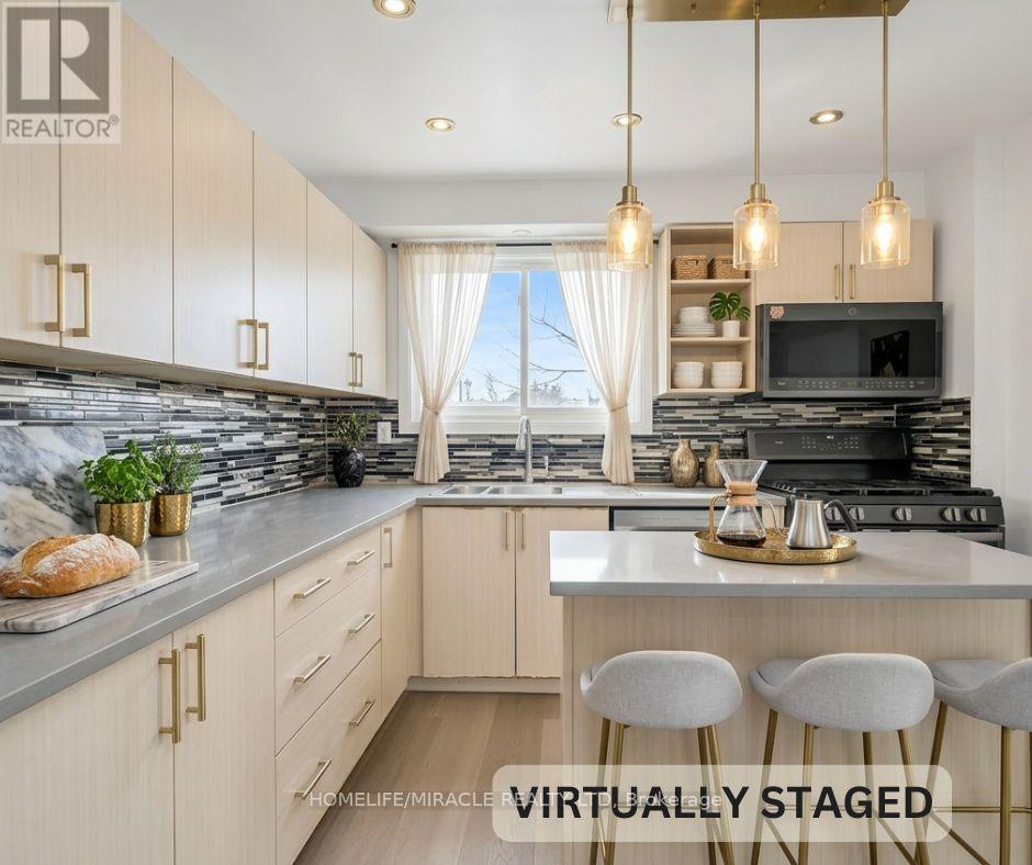 Beautiful Open-Concept End-Unit Townhouse - A Must See! This bright and spacious 1,615 sq. ft home comes with tons of great features. Offering 3+1 generously sized bedrooms, freshly painted, a garage and private driveway. The primary bedroom includes an extra-large closet and a Jack and Jill full 4pc bathroom. The recently remodeled open-concept eat-in kitchen overlooks the sun-filled living room with soaring cathedral ceilings, creating an ideal space for both everyday living and entertaining. Open to above ceiling brings more natural light. The kitchen is equipped with S/S appliances and ample storage. A versatile dining, home office area or it can be used as a 4th bedroom is conveniently located off the kitchen. Sliding doors lead to a private backyard deck-perfect for outdoor relaxation. Direct access from the home to the garage adds everyday convenience. Ideally located within walking distance to all amenities, shopping, transit, highway access and New Costco. Wayne Gresky Parkway Trail, Jaycee Sports Park and Much Much More. The location can not be better than this!! (id:64974)