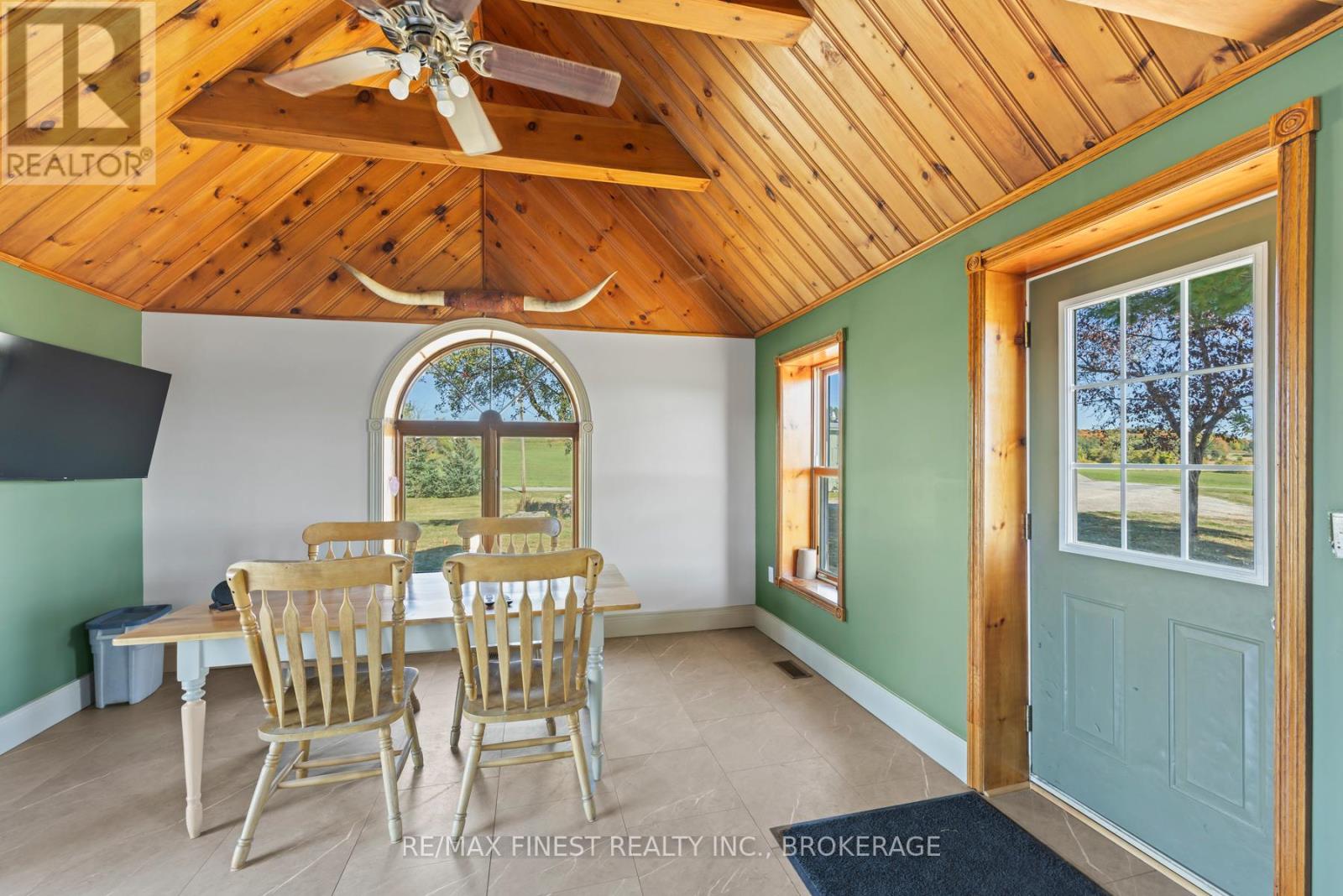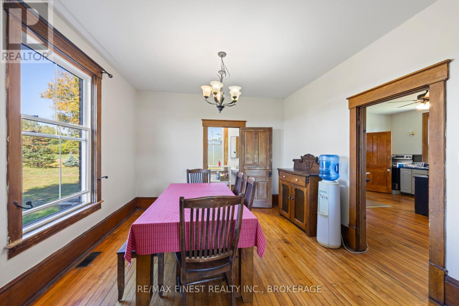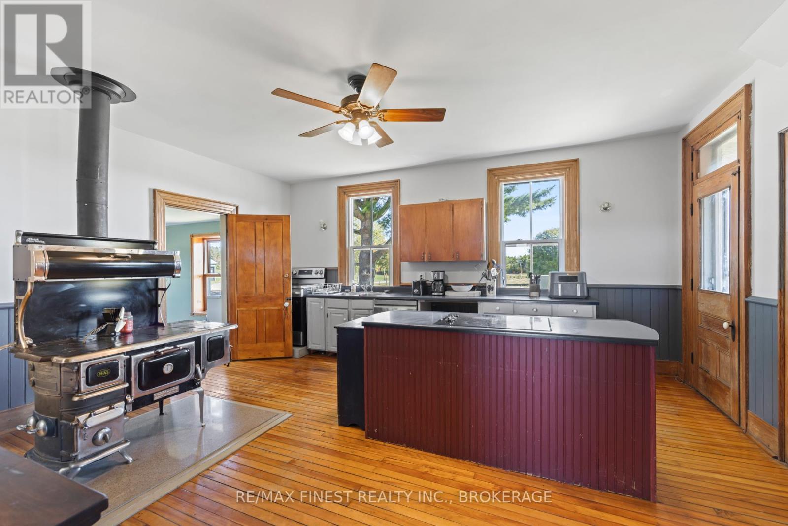 Picturesquely set on over 4 acres and only 15 minutes from Kingston, this timeless 2-storey brick home perfectly blends elegance with country charm. Step inside to find a true country kitchen, with abundant pantry space, modern appliances, and an Elmira cook stove, exuding functionality and inviting vibes. Warm hardwood floors flowing through much of the main level, featuring a spacious living room, a sunroom complete with vaulted ceilings, a convenient laundry room with storage, and a full 3-piece bath. Upstairs, hardwood continues into four cozy bedrooms and a 4-piece bath. A spacious attic provides endless potential whether you envision astudio, playroom, or home gym, your dream space awaits. The unfinished basement offers even more room for your future projects. Updates include extensive spray foam throughout the home.Outside, the wrap-around porch is the perfect spot for morning coffee, overlooking the sweeping green landscape. Outbuildings grace the property, ready for your personal touch to complete the country lifestyle. (id:64974)
