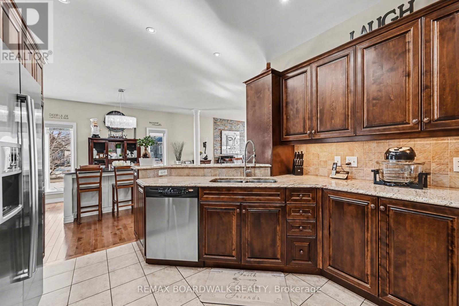 Immaculate Bungalow on a Corner Lot in the Heart of Casselman! Welcome to this beautifully maintained and move-in-ready bungalow offering style, comfort, and exceptional living space. Perfectly situated on a desirable corner lot in a quiet Casselman neighbourhood, this stunning home delivers impressive curb appeal with its elegant stone façade and double garage. Step inside to a bright and inviting foyer that opens into a sun-filled main floor designed for both comfort and entertaining. The spacious living and dining areas feature rich hardwood floors, large windows, and a warm, welcoming atmosphere. The open-concept layout flows seamlessly into the well-appointed kitchen showcasing beautiful cabinetry, granite countertops, and ample workspace for everyday living and hosting. The main level offers two generous bedrooms, including a spacious primary retreat complete with a luxurious ensuite featuring a relaxing soaker tub. A convenient powder room adds extra functionality for guests. The fully finished lower level expands your living space dramatically, offering a large family/recreation room perfect for movie nights, entertaining, or relaxing. This level also features an additional bedroom and full bathroom, providing excellent flexibility for guests, teenagers, or a home office. Step outside to enjoy the private fenced backyard, complete with a large deck and gazebo area-an ideal setting for summer gatherings, BBQs, or simply relaxing outdoors. This immaculate property combines elegant finishes, thoughtful design, and incredible living space, making it a perfect place to call home. A rare opportunity you won't want to miss! (id:64974)