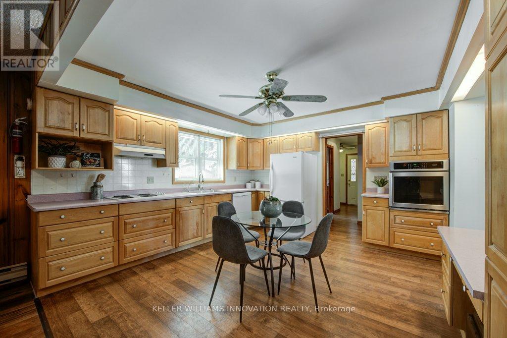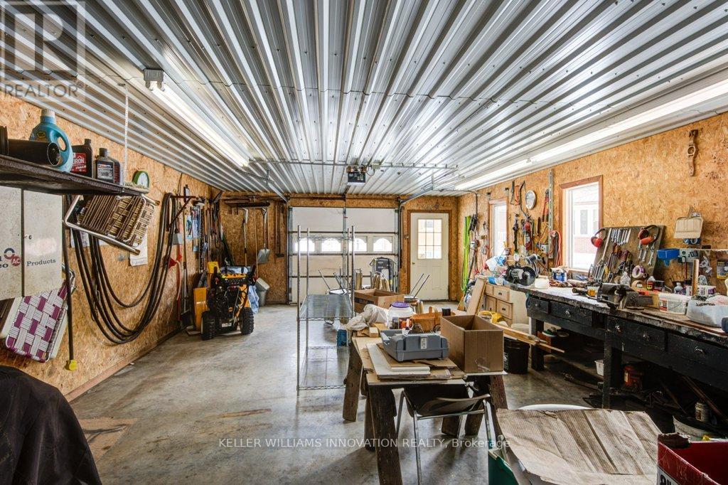 Looking for a BIG workshop? How about 2? Are you a tradesman, mechanic, landscaper? Need lots of storage for tools, equipment or vehicles? You've gotta see these 2 detached buildings located on this property. The first building measures 32 ft x 80 ft and has a heated wash bay for 2 vehicles, including compressor and power washer. Plus an additional interior heated garage located inside the big building which hold another 2-4 vehicles. The exterior asphalt parking pad holds 25+ cars. The second detached garage measures 35 ft x 18 ft, insulated with electricity. Stores another 2 vehicles. Finally, another double car garage is attached to the main house! This property has not been offered for sale in over 40 years and is now looking for it's new caretaker. This charming bungalow layout has 3 bedrooms, 2 bathrooms and 2941 sq ft of finished of living space! Enter the front foyer and find a bright living room/dining room open space with a beautiful bay window looking onto the covered front porch to the front yard. The open concept kitchen has ample maple cupboard space and a built-in desk. The family room has a lovely stone wall with built-in fireplace and sliding doors leading to the sunroom. The octagonal sunroom gives the feeling of cottage life and enjoying the outdoors from the comfort of your home! With sliding glass doors leading onto the back patio, this all season space is perfect for BBQ season, any season! Also found on the main floor are 3 spacious bedrooms and 2 bathrooms, one 3 piece and the other a 4 piece with double sinks! The laundry room is also conveniently located on the main floor. No carrying laundry to the basement! Head downstairs to the partially finished basement. Perfect for a home gym, craft room or home office. The basement area ready for your own decorating touch! Located in the small community of Brodhagen, this bungalow has the small town feel with easy and convenient access to the larger towns nearby! (id:64974)