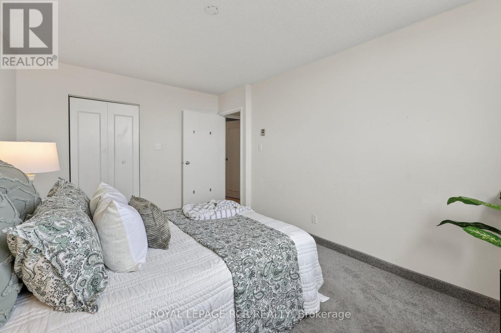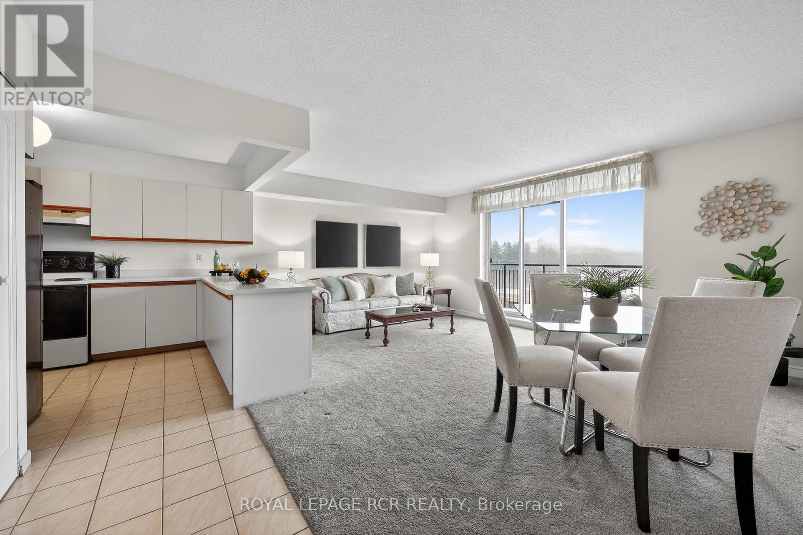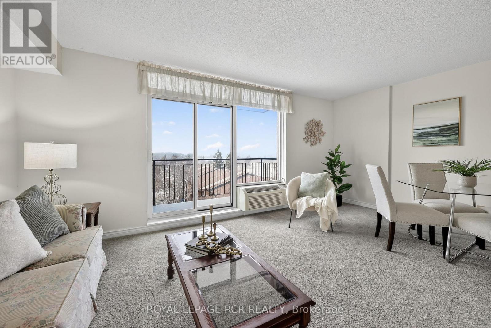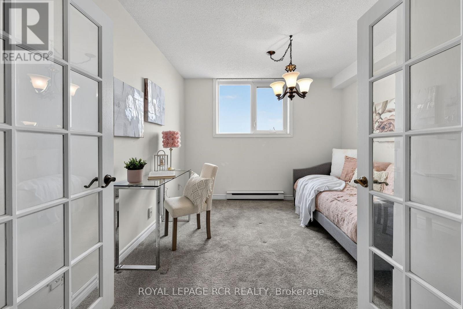 This inviting 2-bedroom condo offers a bright, open-concept layout and beautiful north-facing views of Island Lake from the sixth-floor balcony. As an end unit with no neighbours on one side, you'll appreciate the added privacy and quiet. The kitchen features generous counter space and ample cabinetry, overlooking the spacious living room-complete with broadloom flooring and a walkout to your private balcony, perfect for enjoying the fresh air and scenic views. The spacious primary bedroom includes broadloom, a large walk-in closet, and convenient semi-ensuite access to the 4-piece bathroom offers a vanity with a large sink, and plenty of shelving and storage. The second bedroom, currently used as a dining room, is versatile and features French doors, and a large window that fills the space with natural light. Built in shelving in hall can be reconverted to the bedroom closet. You'll also appreciate the in-suite laundry area with additional storage space, plus a handy pantry/linen closet. For added convenience, the locker (No. 67) is located on the same level-just steps down the hall. Ideally situated close to downtown, shops, restaurants, theatre, parks, and everyday amenities. Condo fees include Rogers Internet & Cable contract. Extra visitor parking is available onsite. (id:64974)