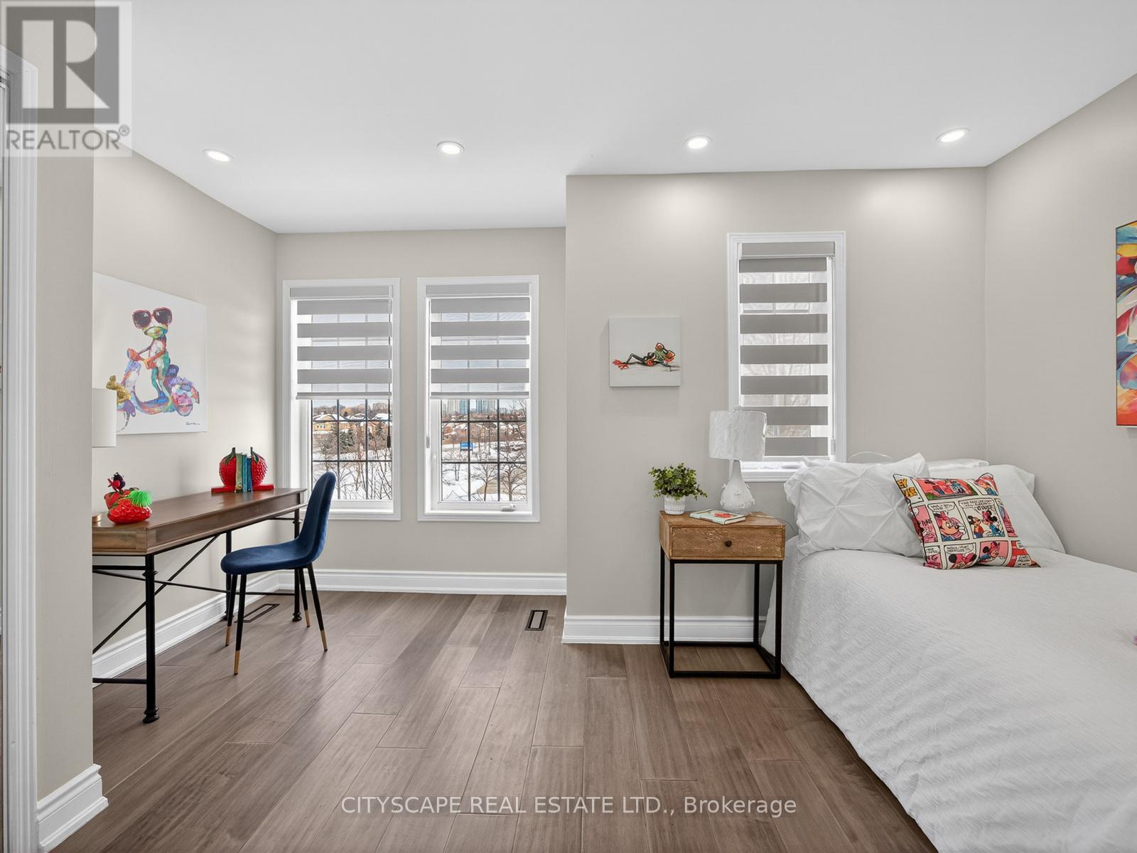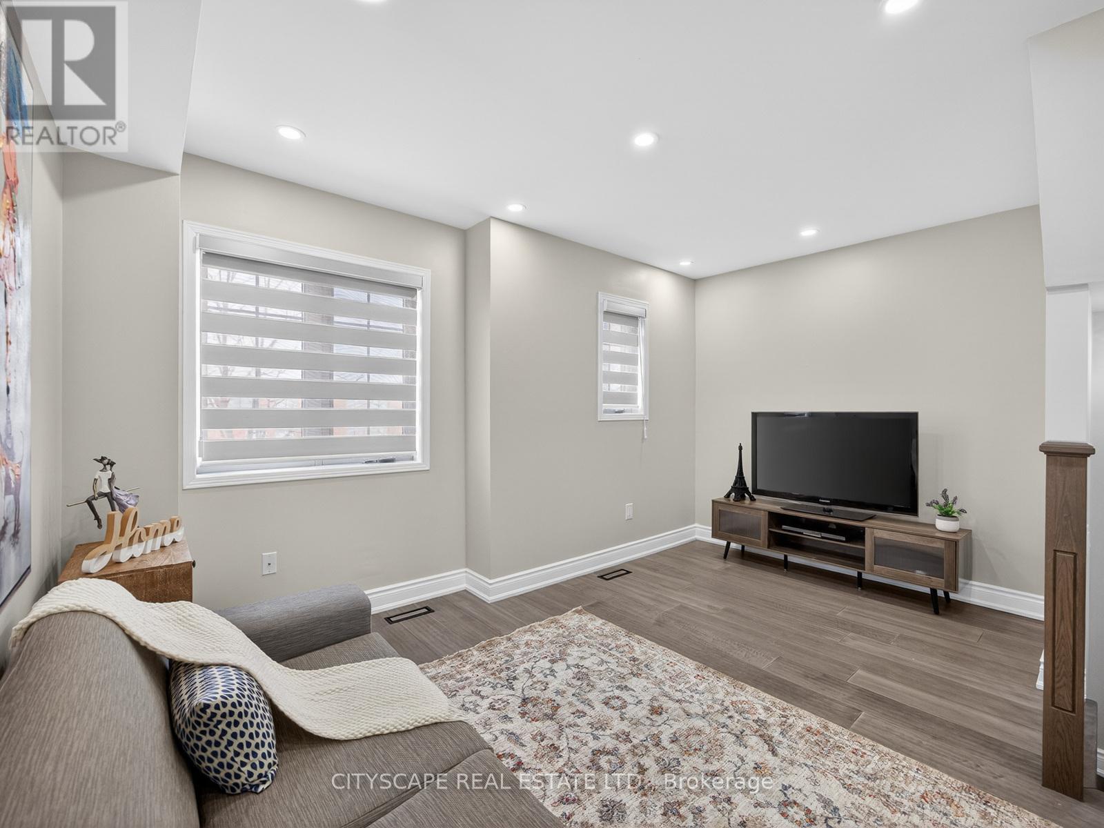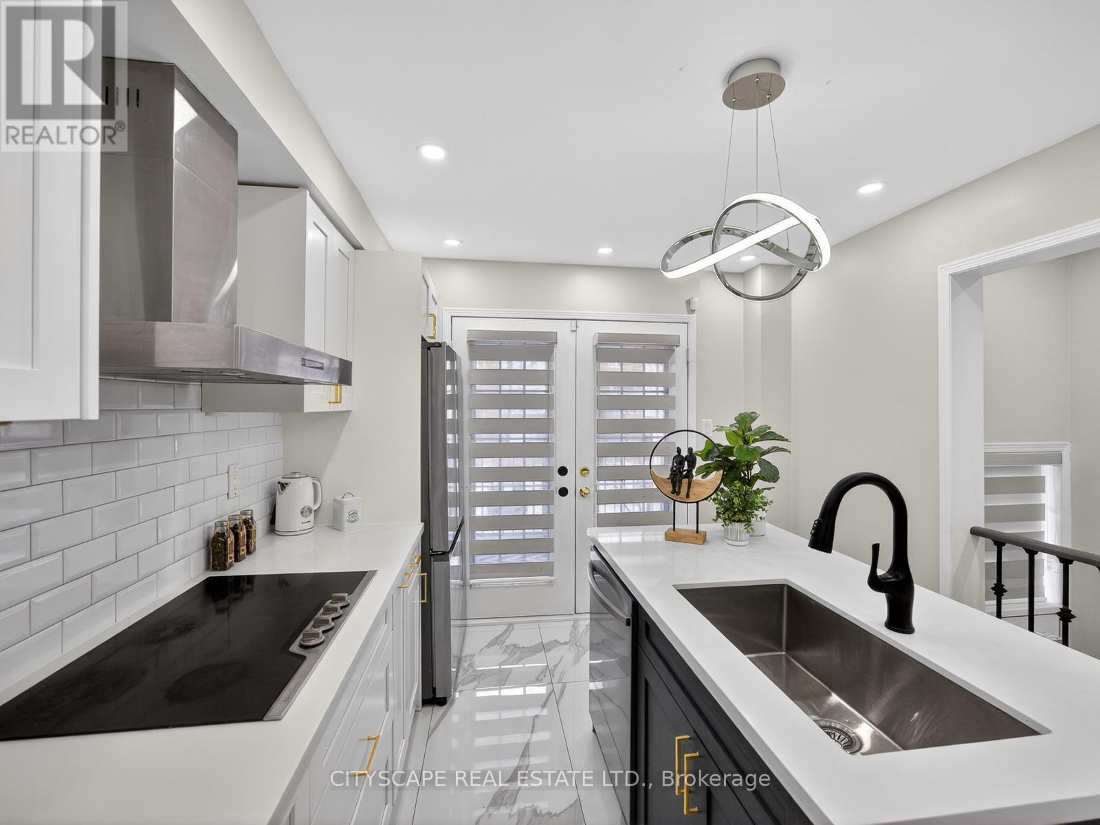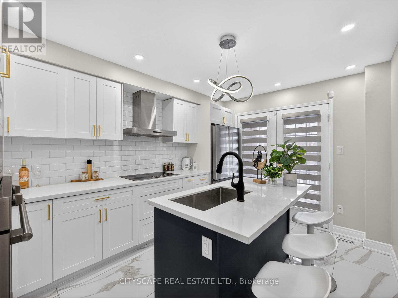 Beautiful RENOVATED townhome, top to bottom! Stunning Kitchen, timeless white, with built-in appliances, large kitchen island and walk-out to a charming balcony. All bathrooms renovated! All flooring updated! Upgraded railings! New designer electrical light fixtures, LED potlights, smooth ceilings and even mini-blinds are automatic/motorized! Great layout, big rooms! This townhome comes with 3 levels, all above grade. 2 large bedrooms on the top level. Huge primary bedroom typically seen in the largest of townhomes. Second bedroom can fit 2 single beds comfortably. Third bedroom is on the ground level, with a walk-out and large window. Alternatively lower level room can function as a Family room, or your Home Office. Right next door to big park, school, splashpad, new dog park, Healthy Planet Shopping plaza. At the other end of the complex is: Home Depot, Shoppers DM, Superstore! EZ transit - just 1 bus to subway. Easy access to QEW & 403. Stunning home! Absolutely stunning, renovated, ready to move in home. (id:64974)