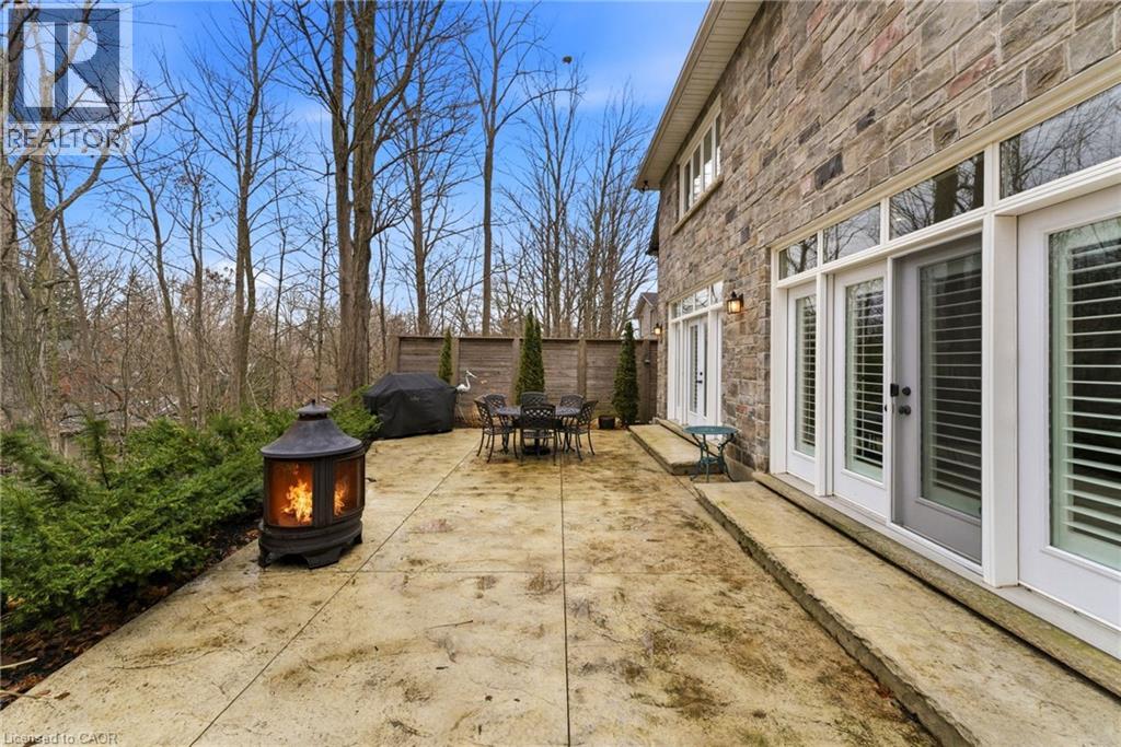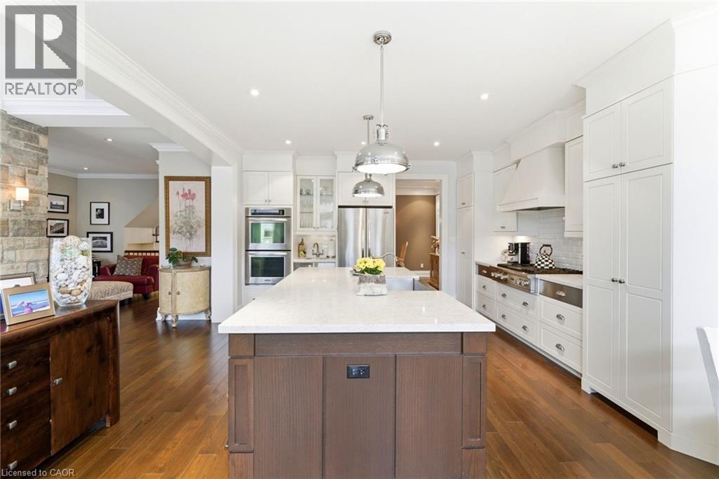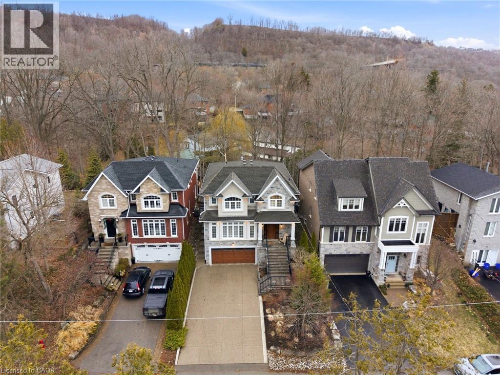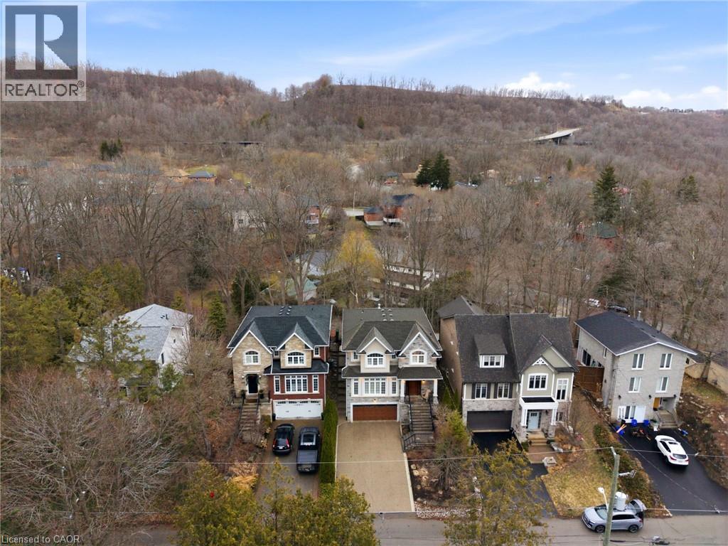 Tucked away on a quiet street in prestigious Olde Dundas, this solid stone Neven-built home sits on a rare ravine lot overlooking Sydenham Creek and protected conservation lands. It provides a level of privacy that’s hard to find, paired with timeless design and quality craftsmanship throughout. Inside, you’ll find 10-foot coffered ceilings, rich hardwood floors, and custom millwork that create a warm yet elevated feel. Large windows bring in natural light and frame peaceful forest views, making the main living and dining areas perfect for both everyday living and entertaining. The kitchen is truly the heart of the home, featuring a gas Viking range with built-in ovens, plenty of workspace, and a layout that just makes sense for anyone who loves to cook and gather. Upstairs, there are two spacious primary suites, each with its own spa-like ensuite and walk-in closet. Whether it’s for guests, extended family, or your own private retreat, the flexibility here is a standout feature. A built-in dumbwaiter adds convenience between levels, while thoughtful details like the heated double garage and concrete driveway, walkway, and patio speak to the quality of the home. The fully finished lower level provides even more space with a bedroom, full bath, recreation area, and separate entrance, ideal for in-laws, guests, or future suite potential. Surrounded by nature and just a short walk to trails, Dundas Driving Park, top-rated schools, and the shops and cafés of downtown Dundas, this is a home that provides both privacy and walkability in one of the area’s most sought-after locations. (id:64974)
