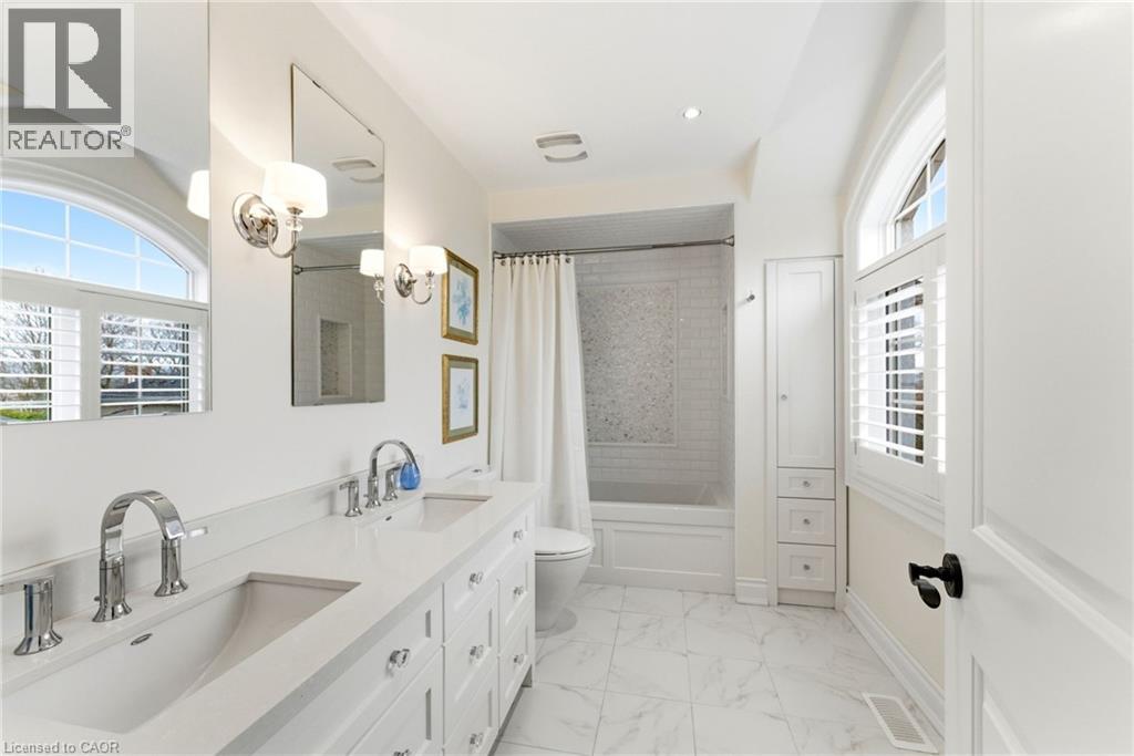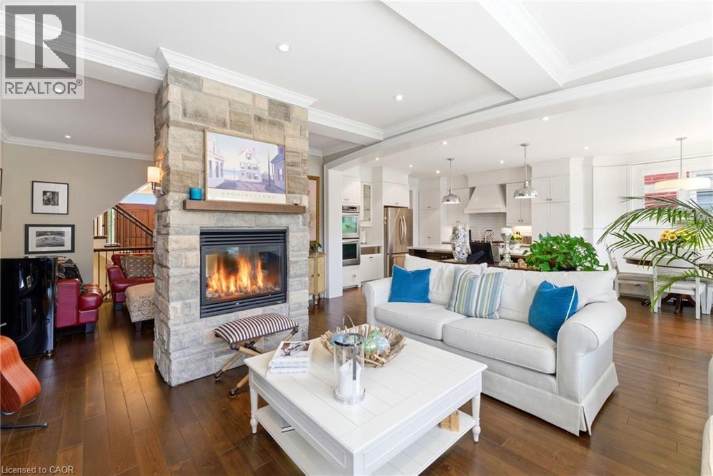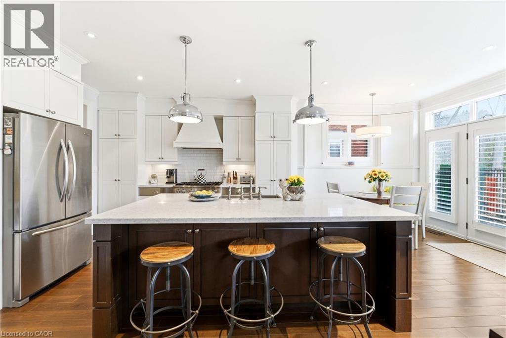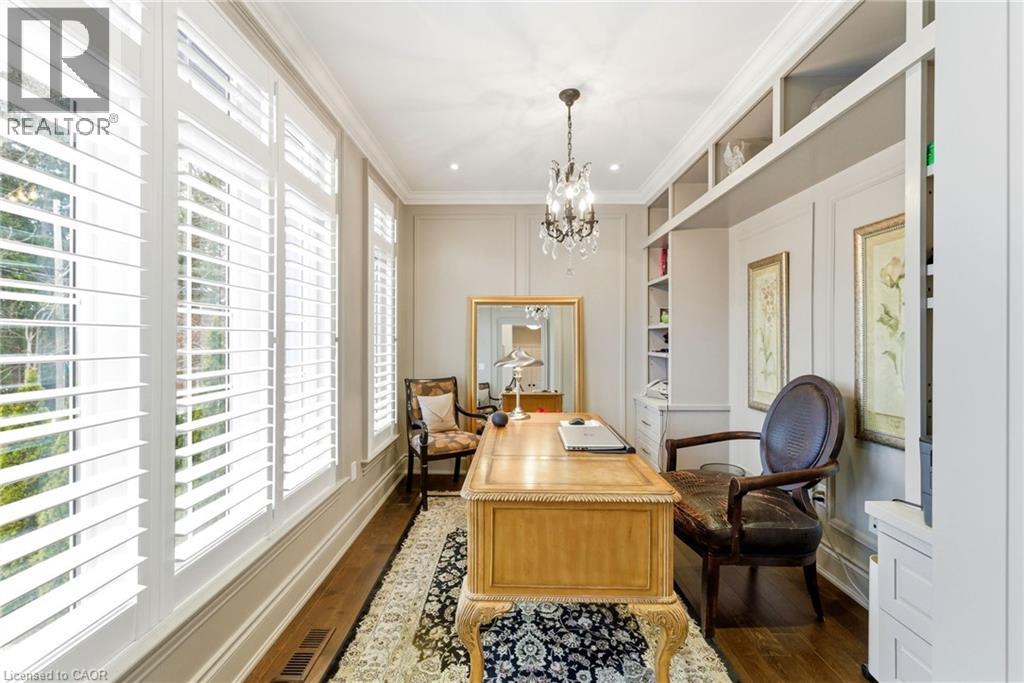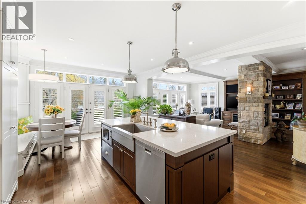 Tucked away on a quiet street in prestigious Olde Dundas, this solid stone Neven-built home sits on a rare ravine lot overlooking Sydenham Creek and protected conservation lands. It provides a level of privacy that’s hard to find, paired with timeless design and quality craftsmanship throughout. Inside, you’ll find 10-foot coffered ceilings, rich hardwood floors, and custom millwork that create a warm yet elevated feel. Large windows bring in natural light and frame peaceful forest views, making the main living and dining areas perfect for both everyday living and entertaining. The kitchen is truly the heart of the home, featuring a gas Viking range with built-in ovens, plenty of workspace, and a layout that just makes sense for anyone who loves to cook and gather. Upstairs, there are two spacious primary suites, each with its own spa-like ensuite and walk-in closet. Whether it’s for guests, extended family, or your own private retreat, the flexibility here is a standout feature. A built-in dumbwaiter adds convenience between levels, while thoughtful details like the heated double garage and concrete driveway, walkway, and patio speak to the quality of the home. The fully finished lower level provides even more space with a bedroom, full bath, recreation area, and separate entrance, ideal for in-laws, guests, or future suite potential. Surrounded by nature and just a short walk to trails, Dundas Driving Park, top-rated schools, and the shops and cafés of downtown Dundas, this is a home that provides both privacy and walkability in one of the area’s most sought-after locations. (id:64974)