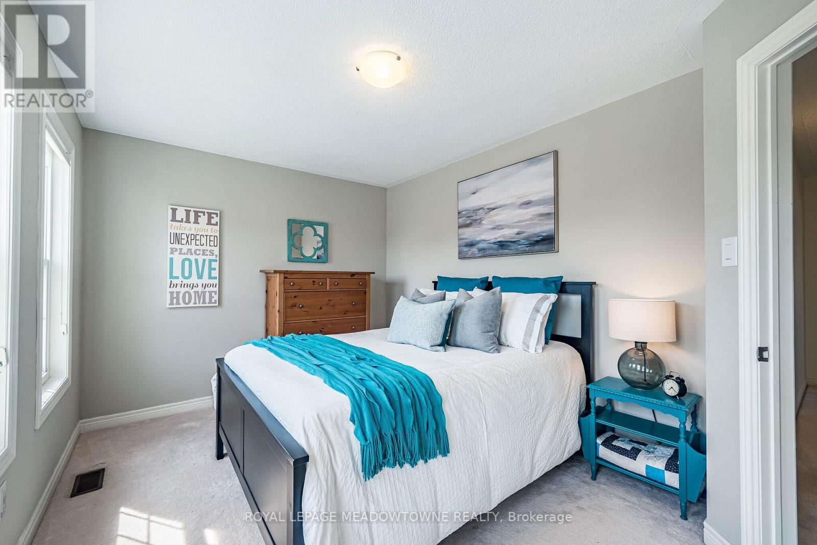 Location, Location, Location! Welcome to this exceptional home in the heart of Caledon East, perfectly situated within walking distance to the Caledon East Community Centre. Offering the ideal blend of space, modern finishes, and an unbeatable family-friendly setting, this 4-bedroom, 3-bathroom home is designed for growing families. From the moment you arrive, the home impresses with its beautiful curb appeal, featuring an interlocking walkway and patio that lead to a charming covered front porch-perfect for your morning coffee. Step inside through the double door entry to a spacious foyer with convenient garage access. Hardwood flooring flows throughout, leading into a formal dining room ideal for hosting. The modern eat-in kitchen is both stylish and functional, complete with stainless steel appliances, granite countertops, and a layout that overlooks the backyard while seamlessly connecting to the cozy family room with fireplace-perfect for keeping an eye on the kids while preparing meals. Upstairs, a hardwood staircase leads to four generously sized bedrooms, a convenient upper-level laundry room, and an impressive primary retreat featuring a walk-in closet and spa-inspired ensuite. The recently finished basement adds incredible living space, offering a large recreation room with a custom wet bar, a dedicated workout area, and ample storage-perfect for entertaining and everyday living. Step outside and enjoy summer in your spacious backyard, complete with an interlock patio and raised garden-ideal for hosting family and friends. Located in one of Caledon East's most sought-after neighbourhoods, this home is surrounded by top-rated schools. Enjoy walking access to scenic trails, parks, conservation areas, local shops, and outstanding community amenities including a library, pool, arenas, sports fields, and splash pads. A rare opportunity to own a move-in ready home in a vibrant, family-oriented community at an incredible price point. (id:64974)