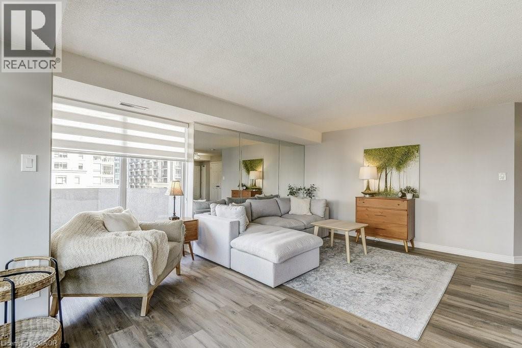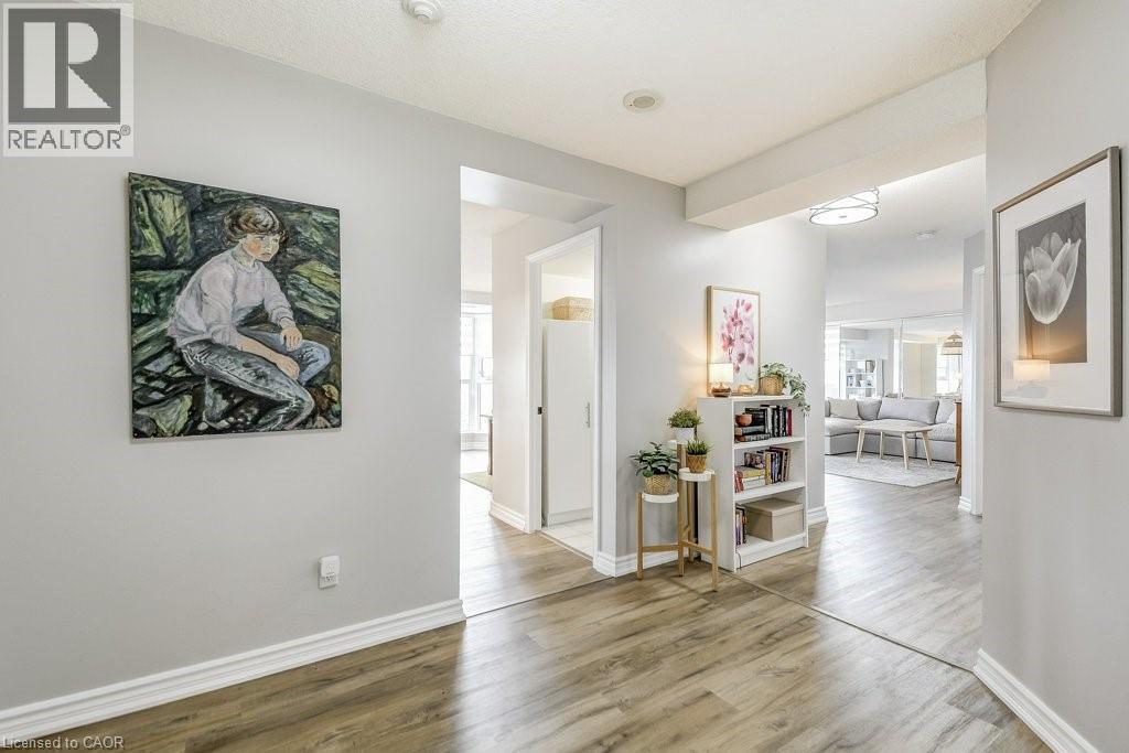Luxury living meets modern style in this beautifully updated 2-bedroom, 2-bath suite at Bentley Place in the heart of the Durand neighbourhood. This expansive 1500+ sqft corner unit offers a bright, open-concept layout filled with natural light and city views through newly installed windows (2025). The modern white kitchen is a standout feature, showcasing gorgeous Statuario quartz countertops, stainless steel appliances and plenty of cabinetry for the aspiring chef. The spacious dining and living areas have amazing appeal whether it be for entertaining or relaxing. Two large enclosed balconies extend the living space — one off the living room (open and closed) and one private to the primary bedroom — offering an option to enjoy the skyline views year-round, rain or shine. The primary suite includes a spa-inspired 5-piece ensuite with a jetted tub and a generous walk-in closet with closet organizers. The second bedroom is equally spacious, also featuring a walk-in closet and custom storage solutions. Thoughtfully updated throughout with modern flooring, fresh paint and fashionable zebra blinds, every detail reflects care and contemporary taste. Residents of Bentley Place enjoy exclusive amenities including an exercise room, media room and underground parking. Highly walkable location! This wonderful spot will appeal to you if you enjoy walking, cycling or utilize public transit. Convenient proximity to McMaster Hospital/University. Surrounded by the arts, culture, recreation of downtown Hamilton. You will be within walking distance to James Street North, Hess Village, the Farmer’s Market, First Ontario Concert Hall, the Art Gallery of Hamilton, Locke Street, parks, a wide variety of cuisine, fine dining, shopping, West Harbour GO and scenic escarpment trails. One of the building’s larger units, this move-in-ready suite delivers the sophistication, space, and lifestyle you’ve been waiting for. (id:64974)