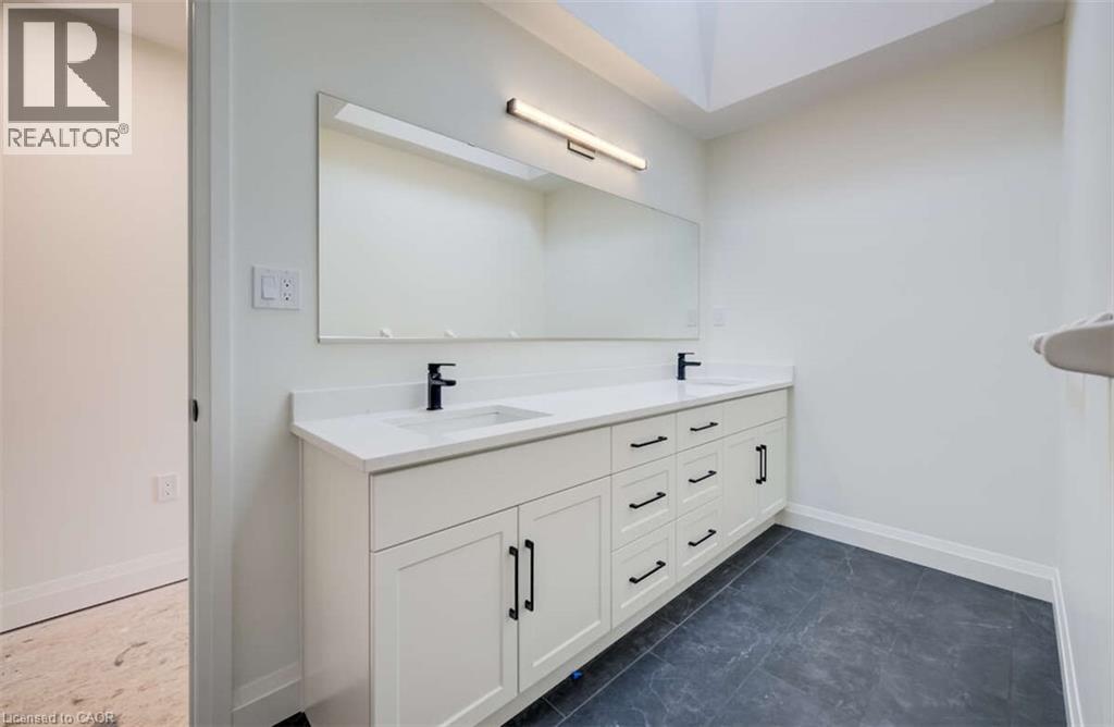 For more info on this property, please click the Brochure button. Located at 67 Crosswinds Drive in Kitchener, ON, this open-concept two-story home is 2646 finished square feet with an attached double garage and a paved driveway, withing walking distance of a neighborhood park. The main floor, with a 9-foot-high ceiling, consists of a great room, kitchen, dinette, welcoming foyer and a powder room. The great room includes a modern linear gas fireplace, pot lights and a large window with a view of the backyard. The kitchen, brightly lit by pot lights, contains upgraded white cabinetry with upper under-cabinet lighting, premium quartz countertops and a generous island that includes a breakfast bar. The dinette features a pendant light fixture and a sliding patio door with access to the rear yard. Hardwood flooring covers the main level, except for tile flooring in the powder room and entrance from the garage. An oak staircase to the second floor is brightened by a skylight in the landing area. The upper level includes four bedrooms, a main bathroom with two basins and a skylight, as well as a conveniently located laundry room. The master bedroom has a coffered ceiling, a generous walk-in closet and a luxurious ensuite with a free-standing soaker tub, tile shower with glass surround and door and a separate toilet room. Additional items included are air conditioning, five appliances, chimney-style range hood and drawer microwave in the kitchen. This new home is move-in ready, except for second level flooring which the purchaser may select from the builder’s samples. (id:64974)