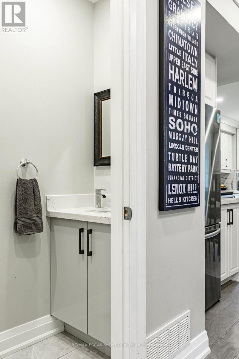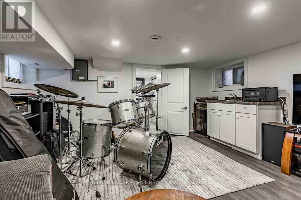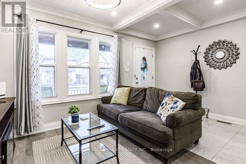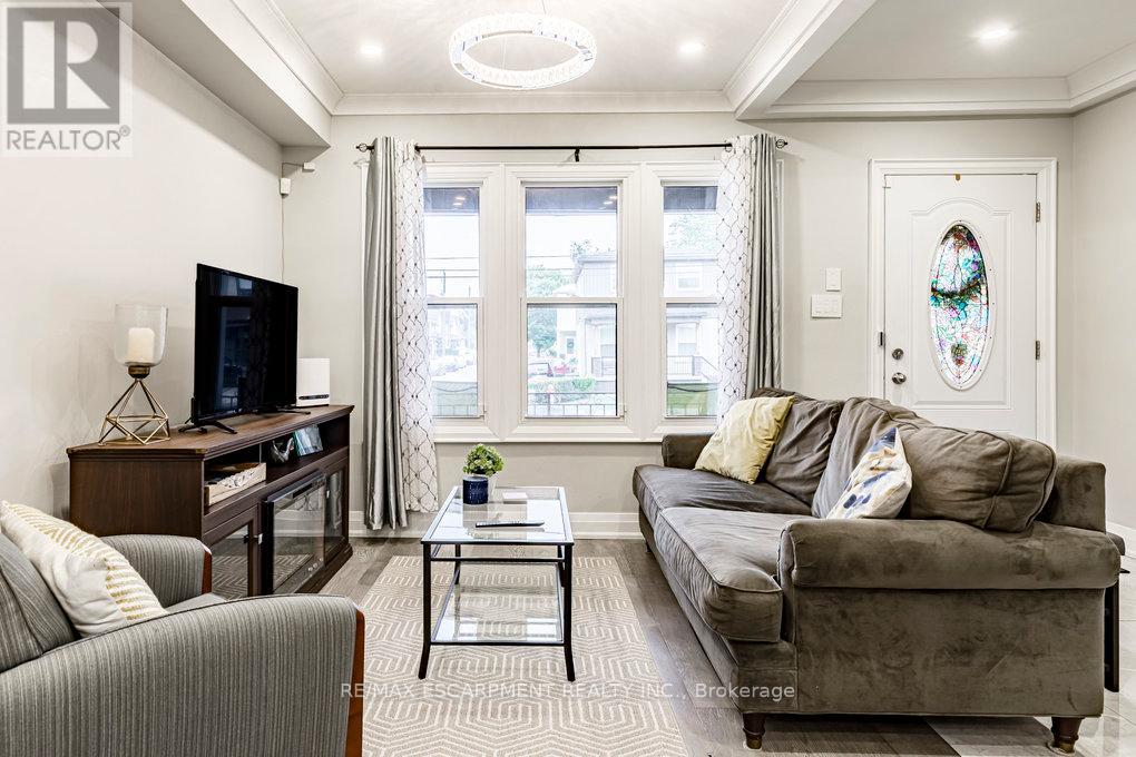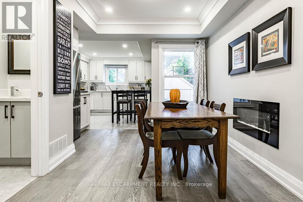 Welcome to 67 Gage Ave North. This beautifully and extensively renovated home combines modern upgrades with timeless charm. Step inside to an open-concept main floor featuring engineered wood flooring, crown moulding, pot lights throughout, a cozy electric fireplace and convenient powder room. The stunning eat-in kitchen is complete with quartz countertops, stylish backsplash, and stainless steel appliances - perfect for both entertaining and everyday living. Upstairs you'll find your spacious primary bedroom that boasts a large walk-in closet and 3 piece ensuite bathroom with high-quality finishes. 2 additional bedrooms and another updated 3 piece bathroom complete your 2nd story. The lower level offers a 4th bedroom, spacious living room, 3 piece bathroom and kitchenette which offers in-law suite potential, ideal for extended family or guests. Outside, enjoy an exclusive, low-maintenance yard with room for relaxing or entertaining. Located in a vibrant, family-friendly neighbourhood just steps from Gage Park, trendy Ottawa St, Hamilton Stadium, Bernie Morelli Recreation Centre and future LRT - this move-in ready home is a true gem in the heart of Hamilton. (id:64974)