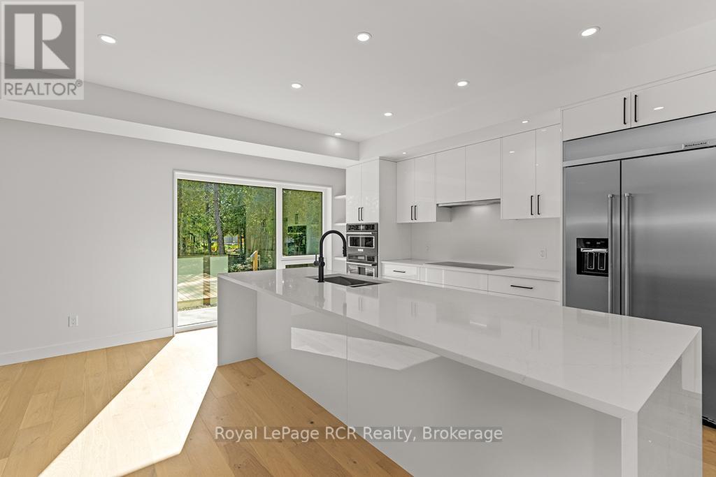 Reduced to $1,597,000. ** NEW BUILD with TARION NEW HOME WARRANTY ** 2024 custom built 'LONGHOUSE DESIGN' VACATION HOME on the SHORES OF LAKE HURON close to TOBERMORY. Over 3,400 sq ft of MODERN LUXURY! 4 bedrooms, 4 full bathrooms. ALL rooms offer FLOOR TO CEILING WINDOWS, and WEST-FACING Lake Huron water views. PRIMARY RETREAT with 6PC ENSUITE includes GLASS SHOWER and SOAKER TUB overlooking Lake Huron, & DESIGNER DRESSING ROOM closet. OPEN CONCEPT MAIN FLOOR with OVERSIZED modern living/dining/kitchen areas FOR ENTERTAINING. Both main floor and 2nd floor GREAT ROOMS feature BUILT-IN ENTERTAINMENT WALLS - w/85+" screen area, LINEAR FIREPLACES & CUSTOM CABINETRY. Two levels connected by OPEN STAIRCASE w/GLASS RAILINGS & MAPLE FEATURE WALL. Main floor laundry and ATTACHED DOUBLE CAR GARAGE w/GLASS OVERHEAD DOORS complete the modern living space. ALL HIGH-END BUILT IN APPLIANCES and Top-notch mechanicals incl. IN-FLOOR RADIANT HEAT & split A/C on BOTH LEVELS & on-demand hot water system. MODERN STEEL SIDING and ROOF SYSTEM. Large 1.4+ ACRE PROPERTY, with 98ft of private shoreline - featuring FAMOUS LAKE HURON SUNSETS in full view from SHORELINE and almost EVERY ROOM of this fabulous vacation home. PRIME LOCATION - 10min from National Park (GROTTO/BRUCE TRAIL), 15min to TOBERMORY/Fathom Five Marine Park & 30min to LIONS HEAD. Truly worth a visit for those seeking a custom Vacation Home ON THE BRUCE PENINSULA ... a UNESCO World Biosphere World Heritage Site. (id:64974)