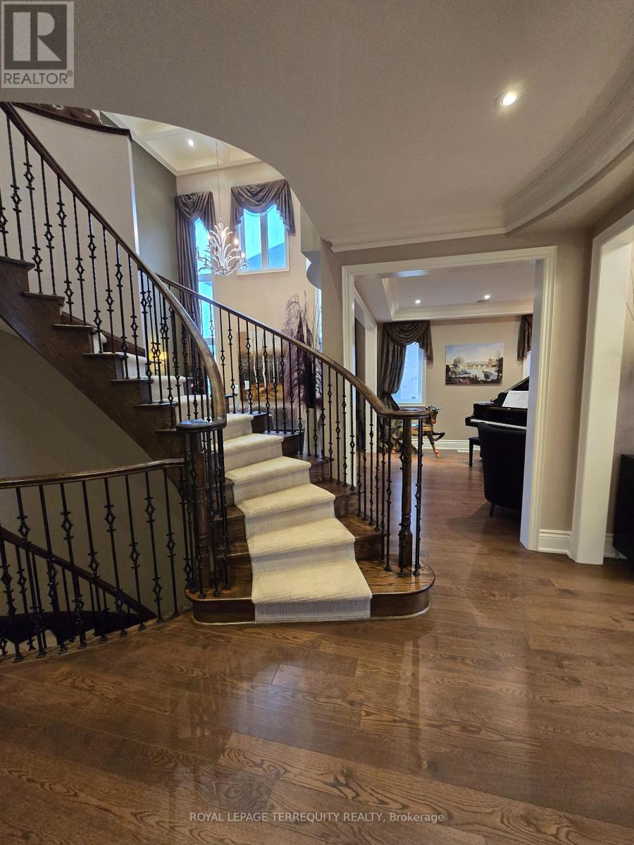 Luxurious and impeccably maintained 4+1 bedrooms, 5 bathrooms home in the prestigious Credit Ridge community, showcasing over 5000 of total elegant living space, with 3849sqft on the main and upper floors. The grand foyer welcomes you with soaring ceiling heights, creating a dramatic introduction to the bright, open-concept layout featuring an inviting main floor office. This home features quality finishes, hardwood flooring, and a stylish upgraded kitchen overlooking the warm and inviting family room. The upper level offers spacious bedrooms, including a beautiful primary suite with a spa-inspired ensuite. In-ground sprinkler system, central vac, dual-sided fireplace, and many more incredible features! The legally finished basement with a separate entrance provides exceptional income potential or comfortable multi-generational living with impressive curb appeal, proximity to top schools, parks, shopping, and transit, this home delivers luxury, functionality, and convenience in one of Brampton's most sought-after neighbourhoods. A true move-in-ready gem. (id:64974)