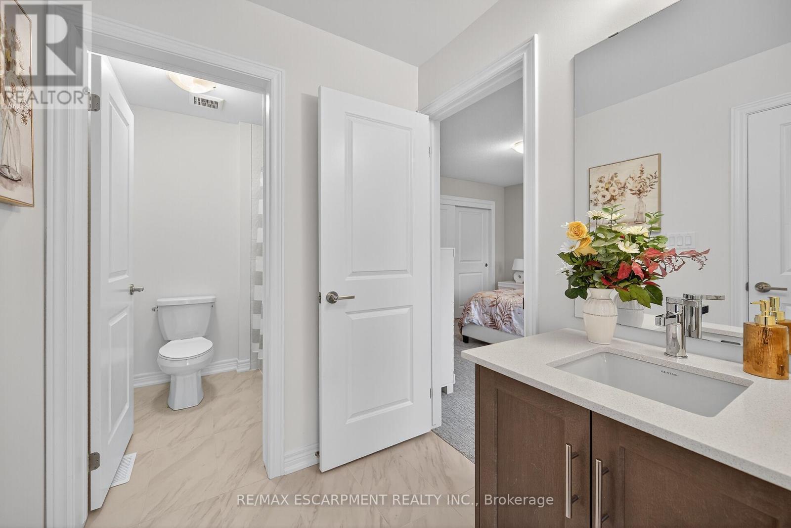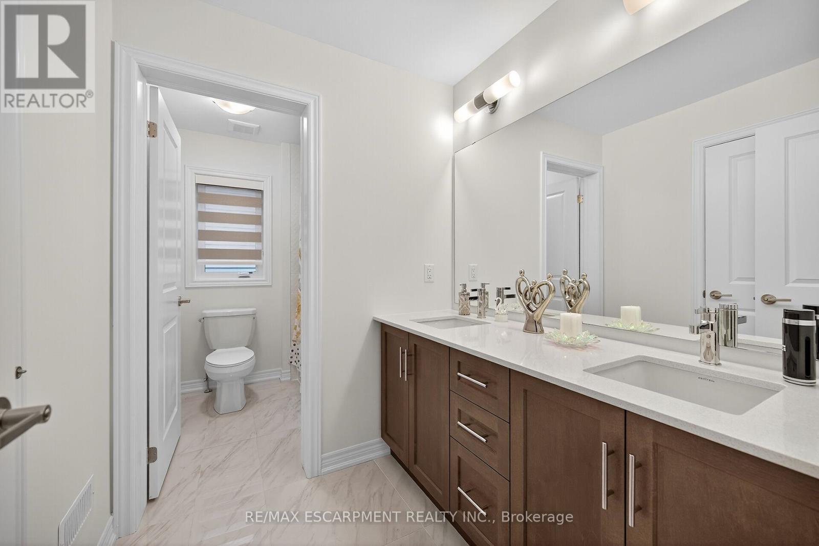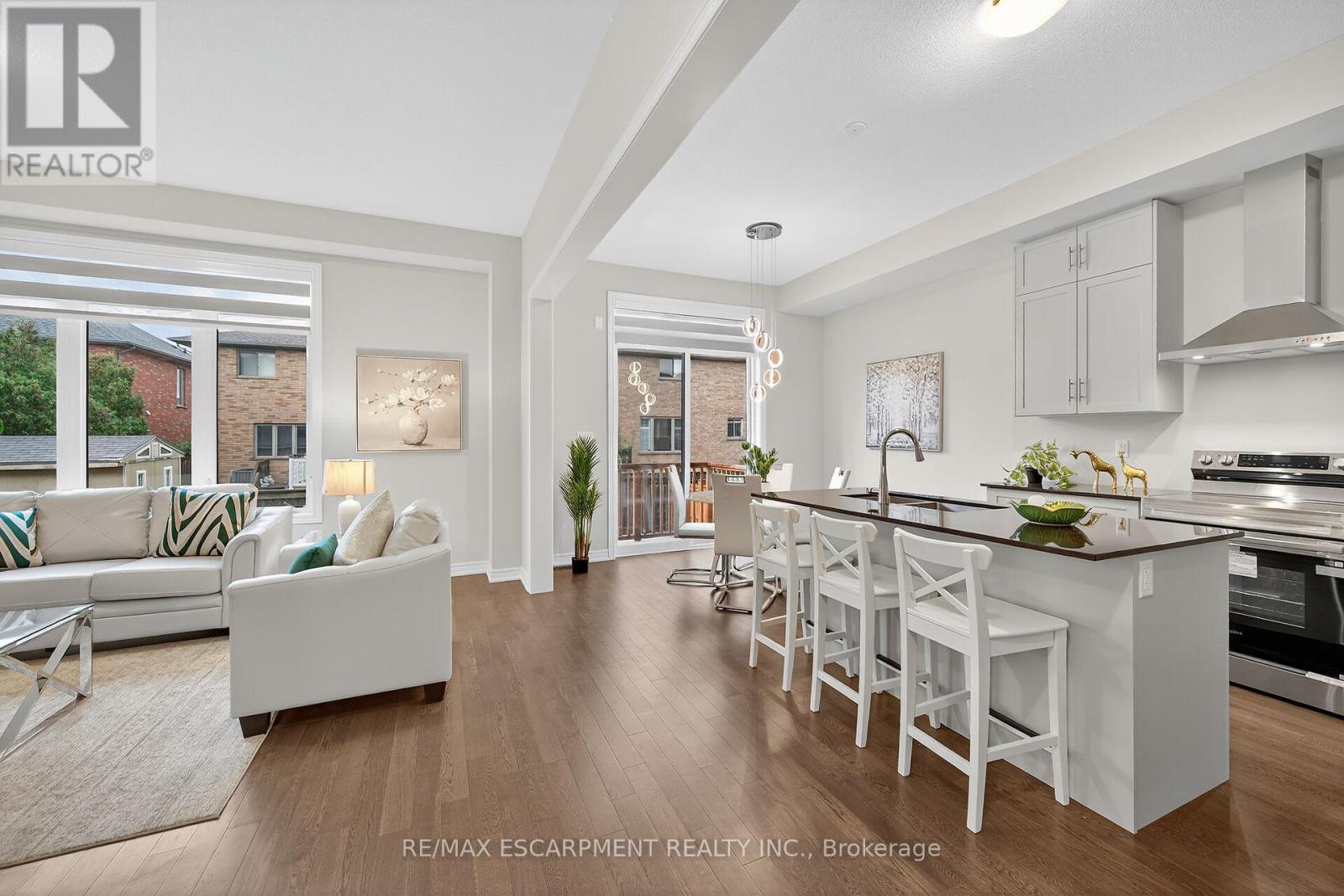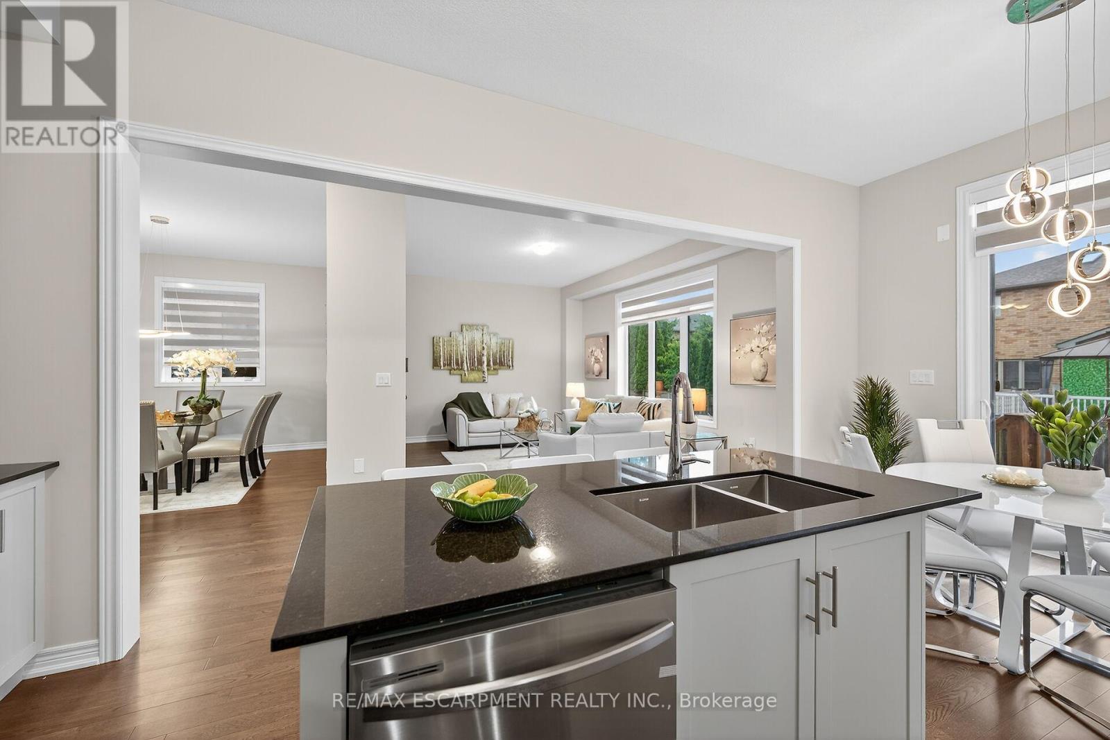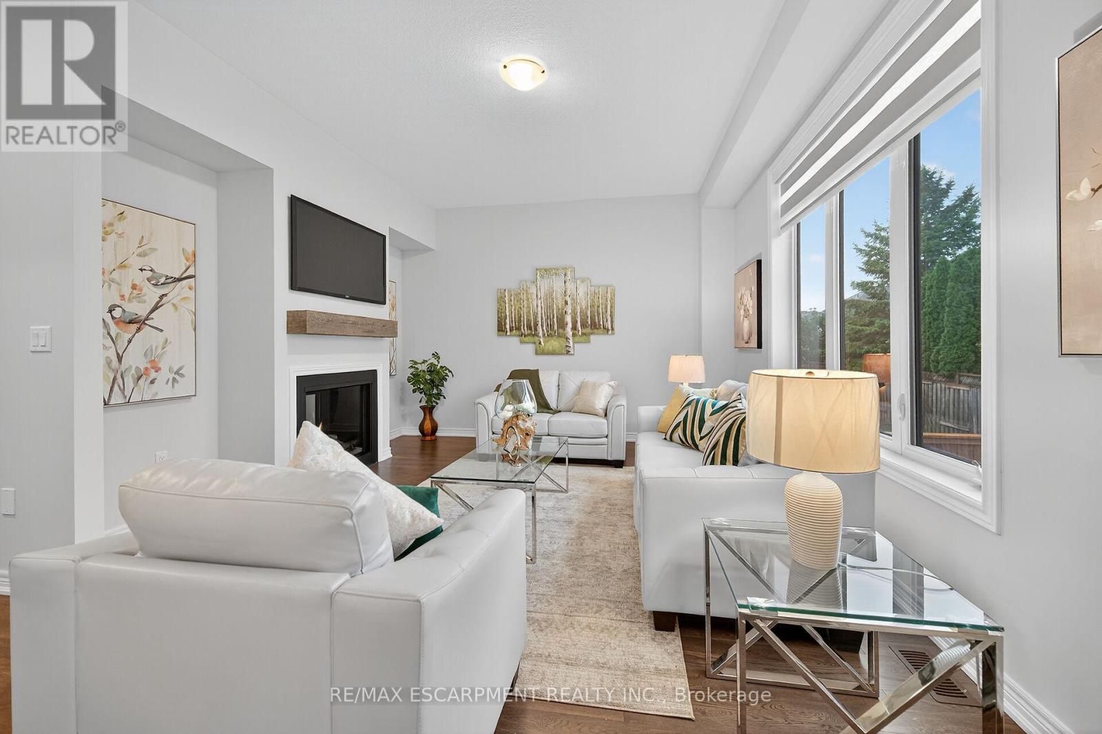 Welcome to 67 Starfire Crescent - a stunning detached home offering approximately 3,017 sq ft of beautifully designed living space in a quiet, family-friendly Stoney Creek neighbourhood with escarpment views. The bright main floor features 10 ft ceilings, hardwood flooring, a private den with French glass doors, and a spacious family room with a two-sided fireplace. The modern kitchen offers extended cabinetry, quality finishes, and a generous breakfast area ideal for everyday living and entertaining. Upstairs, enjoy the convenience of second-floor laundry and well-appointed bedrooms, including semi-ensuite access with a functional Jack & Jill layout. The primary suite features a private ensuite and a large walk-in closet. Hardwood stairs and a double-car garage complete this impressive home. Conveniently located near the QEW, Fifty Point Conservation Area, parks, schools, shopping, and dining. Photos from prior staging for illustrative purposes. (id:64974)