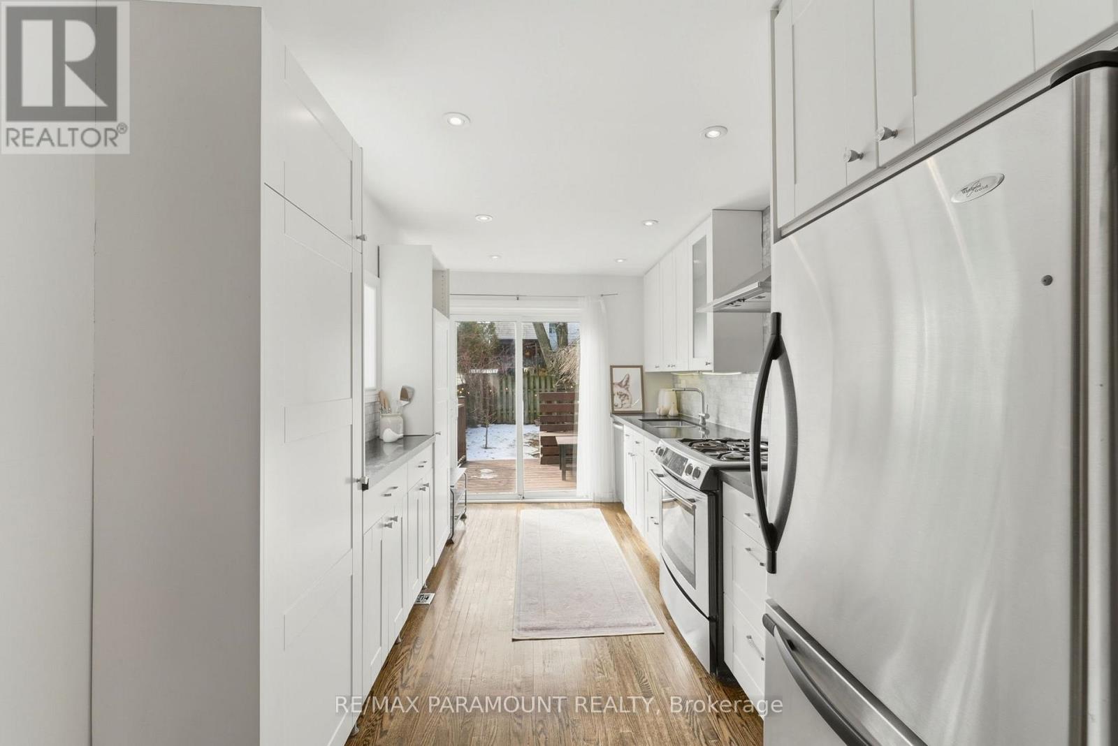 Step into a delightful semi-detached home where comfort meets convenience. Boasting two bedrooms, this property is perfectly positioned just off The Danforth, offering effortless access to local cafés, restaurants, and public transit. Located near top rated schools.Inside, you'll find a modern, updated kitchen, an updated and modern second-floor bathroom, and a primary bedroom with soaring vaulted ceilings that create a bright, airy atmosphere. Primary bedroom vaulted ceiling is a must-see unique feature. The finished basement adds valuable extra living space, complete with its own full bathroom-ideal for a family room, guest suite, or home office.Enjoy the outdoors on your sun filled west-facing deck and in the landscaped backyard, perfect for relaxing or entertaining. Additional features include generous storage throughout and a spacious mudroom at the entrance for added convenience. Mudroom could be used for additional uses due to it's generous size.This home perfectly blends city lifestyle with a peaceful, residential feel, offering easy access to shops, dining, schools, and transit-an exceptional opportunity in a sought-after neighbourhood. Have a look at your maps to see the location and access to transit. Central A/C (2024) (id:64974)
