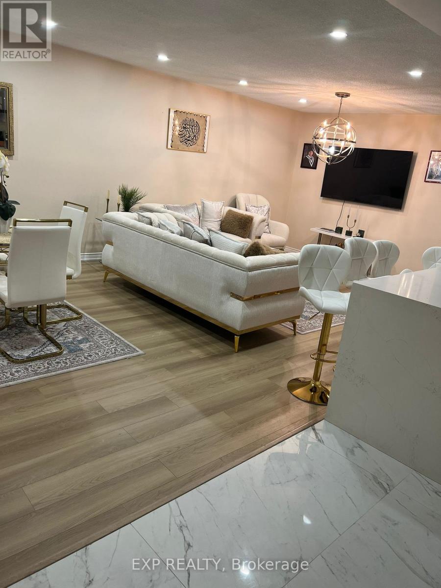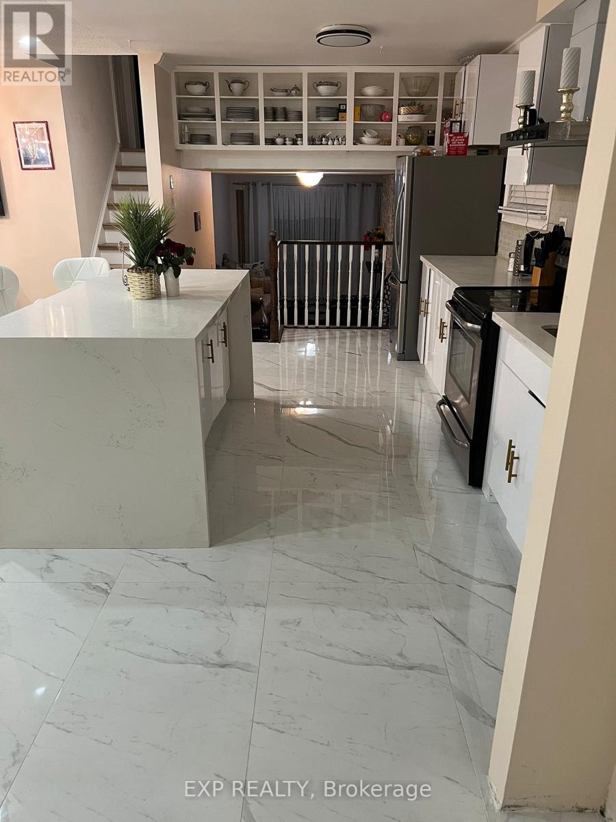 Rare opportunity in sought-after Eastdale. This extremely well maintained 4 level backsplit backs onto green space with no neighbours behind, offering true privacy and a peaceful backyard setting. Enjoy an updated eat-in kitchen with island, built-in oven, backsplash, and crown moulding. Bright living and dining areas feature a beautiful bay window. The family room is a standout with a floor-to-ceiling stone gas fireplace and a walkout to a deck and lounge area surrounded by impressive perennial gardens. A separate side entrance leads to an additional BBQ and patio space, ideal for entertaining or multi-use outdoor living. The basement includes a convenient 2 piece bathroom and a massive finished laundry room with extensive cabinetry and counter space. Homes with this level of care, privacy, and outdoor lifestyle rarely come available. Book your showing before it is gone. No pets. No Smoking. No Garage, Only Driveway for Parking. (id:64974)