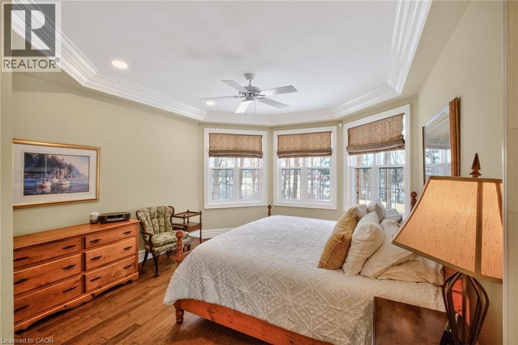 Set on over 70 acres, this well-established equestrian property offers a rare combination of space, functionality, and privacy—while still being ideally located just minutes to Highway 401, with easy access to both Guelph and Cambridge for everyday amenities and commuting. The facility is thoughtfully laid out with 14+ stalls, indoor and outdoor arenas, fenced paddocks, and a half-mile training track with straightaway. The main barn includes an accessory apartment, laundry area, viewing room, and office space, designed to support both day-to-day operations and extended stays. An additional detached building offers multiple offices and three stalls, lending itself to a variety of uses. Whether for equestrian support, a home-based business, or flexible workspace. A coverall provides added storage for equipment and materials. Two separate driveways provide a natural separation between the residence and the working areas of the property, allowing for both privacy and functionality. The custom-built bungalow is bright and well-proportioned, with high ceilings, large windows, and natural light throughout. The kitchen opens to the family room, anchored by a double-sided propane fireplace and finished with thoughtful details including wide trim and crown moulding, creating a space that feels both comfortable and well-appointed. The fully finished lower level extends the living space across the entire footprint of the home, offering in-law potential, walkout access to beautifully landscaped grounds, a theatre room, games area, and a second double-sided fireplace - this one wood-burning. The property itself is beautifully maintained, with mature landscaping, lush gardens, and a stream running through the centre, adding to the sense of privacy and calm. A property of this scale, versatility, and location is rarely offered. (id:64974)