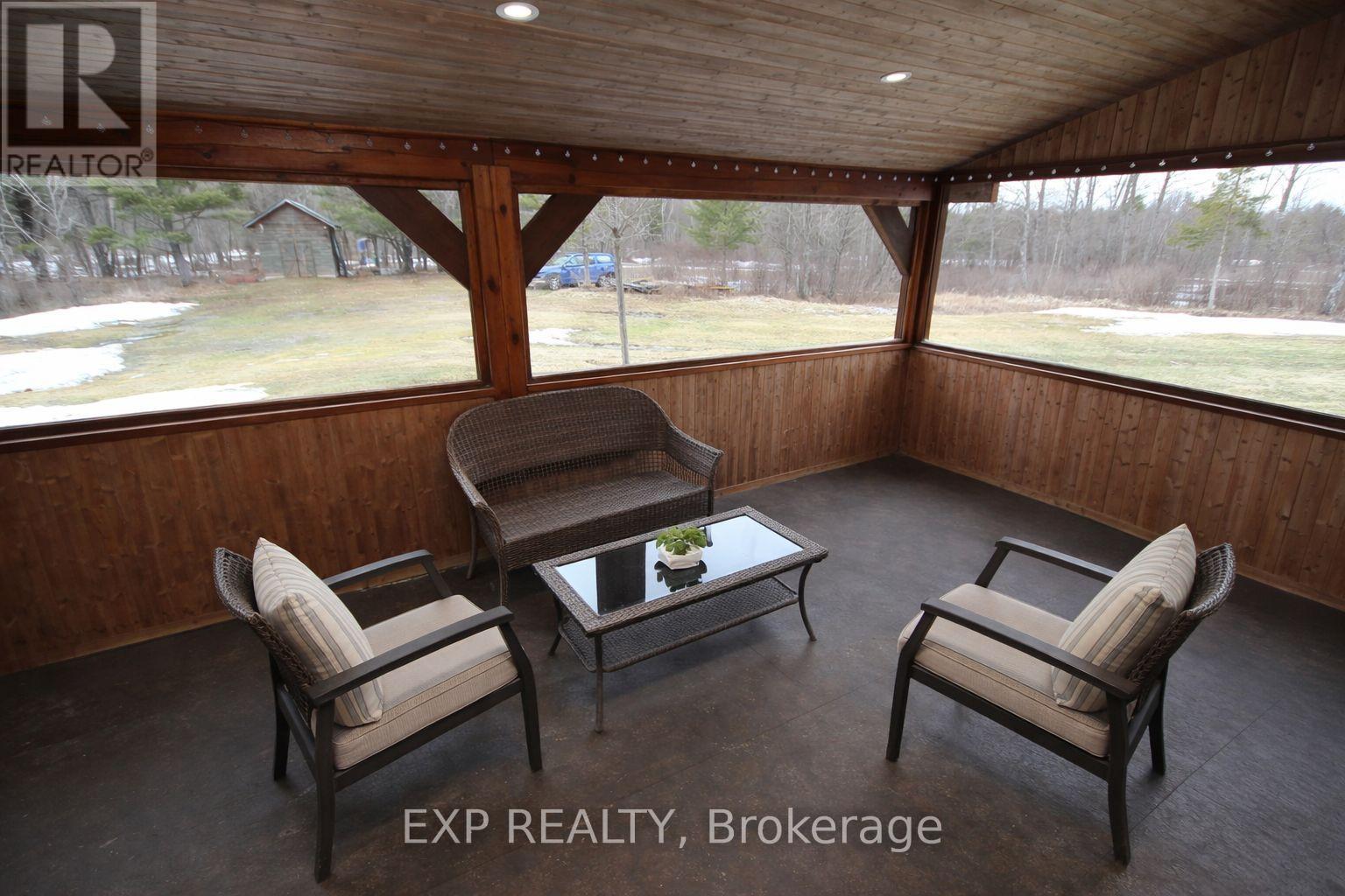 If you've been looking for space to raise your family-with room to roam, explore, and actually slow things down-you'll feel it the moment you turn onto Leveque Road. Set on just under 8 acres, this property offers the kind of freedom kids don't get in town anymore. Open space, trails, and nature all around-perfect for outdoor play, adventures, and making the most of every season. Inside, the layout is practical and family-friendly. The main floor is built for everyday living, with a spacious living area that flows into a screened-in porch-an easy spot to keep an eye on the kids, host family dinners, or unwind at the end of the day. Upstairs, you'll find three comfortable bedrooms, including a primary with a walk-through closet to a 4-piece bathroom with laundry-making busy mornings just a little easier. The finished basement adds even more flexibility, with a rec room and additional bedroom-ideal for a growing family, teens, or guest space.Outside is where this property really stands out. Nearly 8 acres to explore, space for future plans like a pool, and a natural setting where wildlife is part of everyday life. For pet owners, a 1-acre underground dog fence is already in place, with collars included. Located within reach of schools in Harrowsmith and Verona, and just a reasonable drive to Kingston and Highway 401, this is a rare opportunity to give your family space without sacrificing convenience.If you've been searching for a place where your kids can truly grow up, this might be it. **Some photos have been digitally decluttered and staged using AI to help you see the home's full potential.** (id:64974)