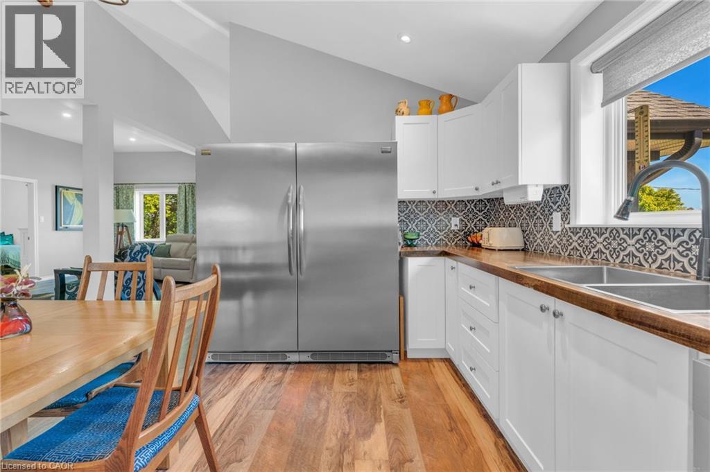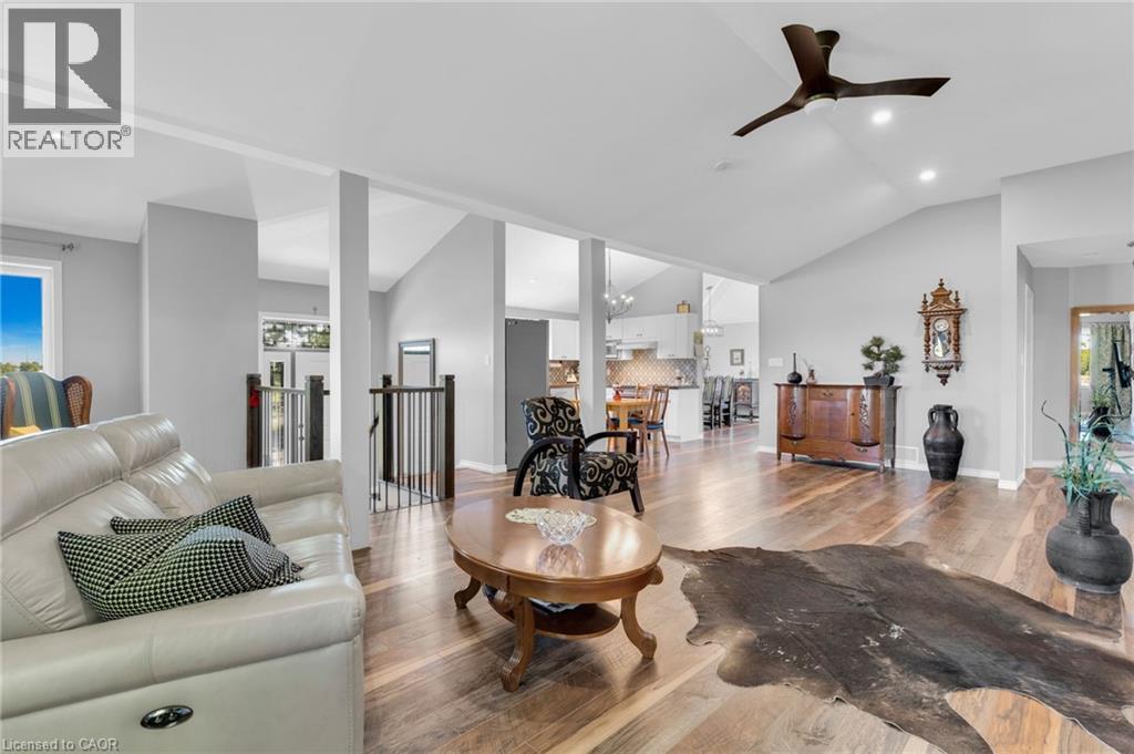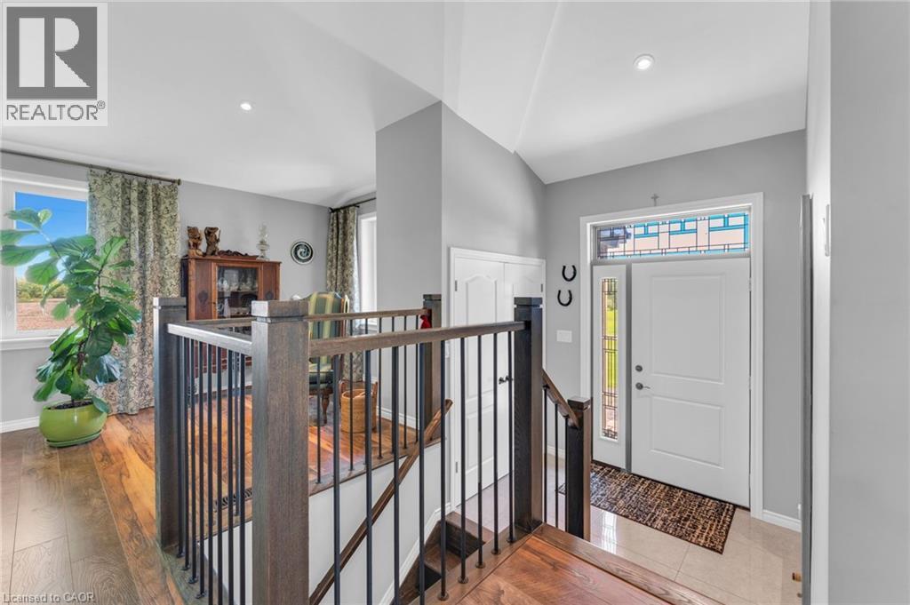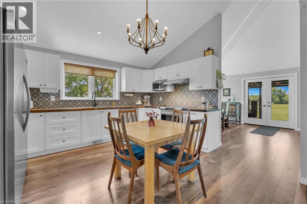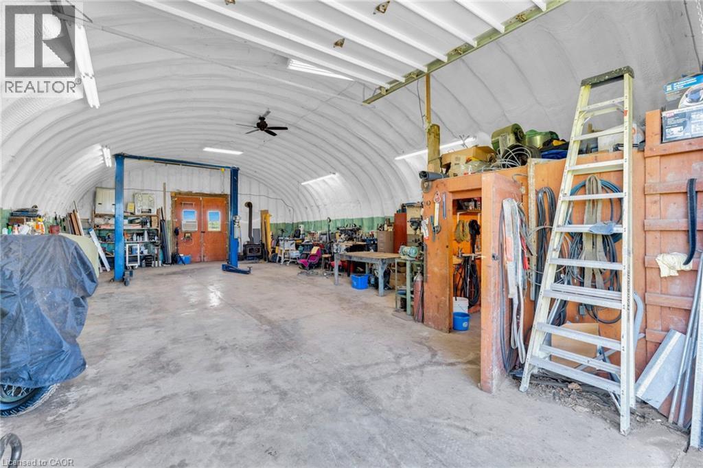 4.02 acres of rural paradise! This stunning hobby farm property features a practically new home and exceptional outbuildings, offering the opportunity to own a turnkey acreage in West Lincoln. An impressive 50' x 29' insulated Quonset workshop comes equipped with a water, concrete floor, wood stove and 70 amp electrical service. The home underwent a complete transformation in 2018 with majority of foundation, framing, electrical, plumbing, HVAC, interior and exterior finishing, and roofing updated. Main floor features include a spacious living space with soaring vaulted ceilings and a modern kitchen with white cabinetry and rich wood countertops. The dining room has garden door access to a covered 10' x 8' rear deck. 4 main floor bedrooms and a 5-piece bathroom complete the main level. A walk-up basement with a separate entrance offers potential for an in-law suite. The basement offers an additional bedroom, an expansive rec room and cold storage room. A modern 3-piece bathroom features a walk-in shower, oak vanity, penny tile flooring, and a decorative mirror. Additional outbuildings include: 29' x 16' garage/storage building with single car parking and wood storage area, an 11' x 23' storage building and an 18' x 30' carport with covered parking for three vehicles — complete with hydro service for added convenience. The chicken coop and dog shed both benefit from hydro service, ensuring your hobby farm operations run smoothly year-round. This property offers the ideal setting to enjoy the peace and privacy of rural living. With over 4 acres of land, premium outbuildings, a garden, and a fenced-in chicken coop, this hobby farm is truly a rare find where the possibilities are endless. (id:64974)