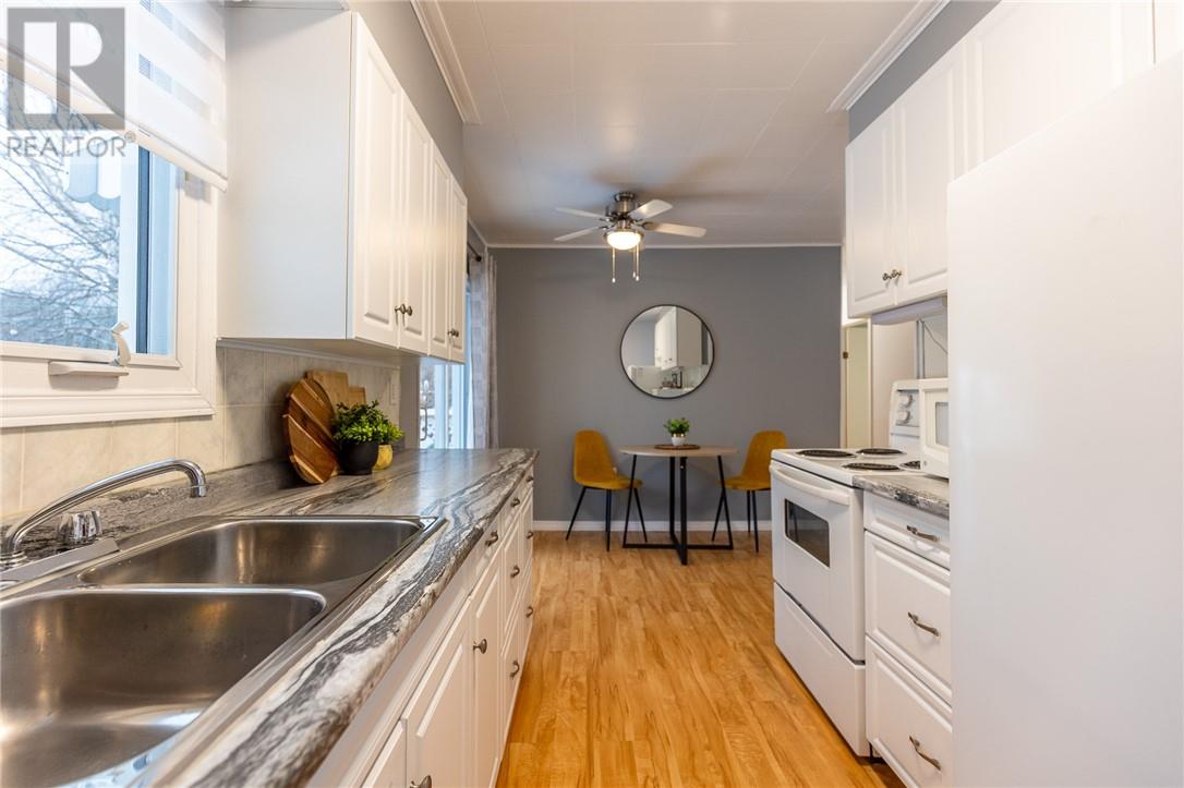 Bright, cheery, and well-laid-out, this 3+1 bedroom home offers an excellent opportunity for comfortable and affordable living. The main floor offers a kitchen that is efficiently designed for easy organization and everyday functionality, a dining area with patio doors leading to the back deck, a sun filled living room overlooking flowering trees and a cedar lined front yard. One of the main-floor bedrooms is currently being utilized as a convenient laundry room. The partially finished basement includes a rec room, bedroom, and plenty of storage space. Additional highlights include: a large detached garage for all the toys and hobbies, forced air propane heat, and appliances are included. This home is located in a family-friendly neighbourhood close to public swimming and boat launch. With its practical footprint and attractive price point, this property represents an affordable option for families, first-time buyers, or those looking to downsize without compromise. (id:64974)