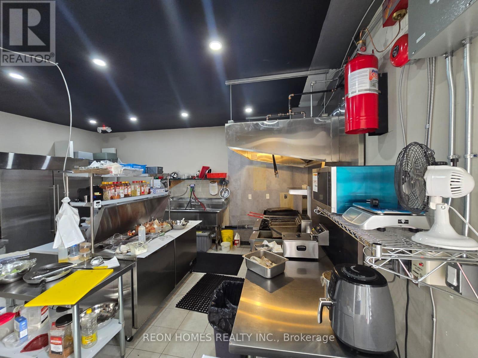 Prime opportunity to take over a quick service restaurant space at The Queensway and Royal York. This location benefits from steady local traffic and a strong surrounding community with many condos, homes, schools, and shops nearby. The area offers good visibility and easy access, making it convenient for both takeout and dine-in customers. Approx. 1,150 sq. ft. 6ft hood, basement, and newer essential equipment in place to start. Functional layout suitable for a quick-service concept or many types of cuisine with minimal investment. Rent $4,500 (TMI & HST included). 4.5 years remaining on the current lease plus a 5-year renewal option. (id:64974)